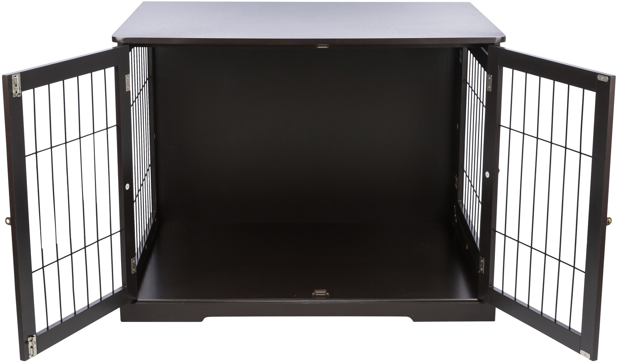 Create a cozy space for your dog—without compromising your home’s style. This indoor furniture-style dog crate is designed to look like a purposeful part of your décor while giving your dog a secure, comfortable place to relax. Crafted with a sturdy MDF frame and ventilated wire panels, it blends durability with modern design. The wide double front doors make it easy for your dog to enter and exit comfortably, while the additional side door gives you flexible placement options in your living room, bedroom, or office. The reinforced top supports up to 120 lbs, so you can confidently use it as an end table, nightstand, or accent piece. It’s a smart solution for pet parents who want their dog’s crate to feel like furniture—not an eyesore. Available in three colors - white, gray, and brown - to blend with any theme. We offer three sizes to find the right fit to suit your dog and your space. Best for crate-trained dogs that are comfortable in enclosed spaces. Not recommended for anxious dogs or heavy chewers.