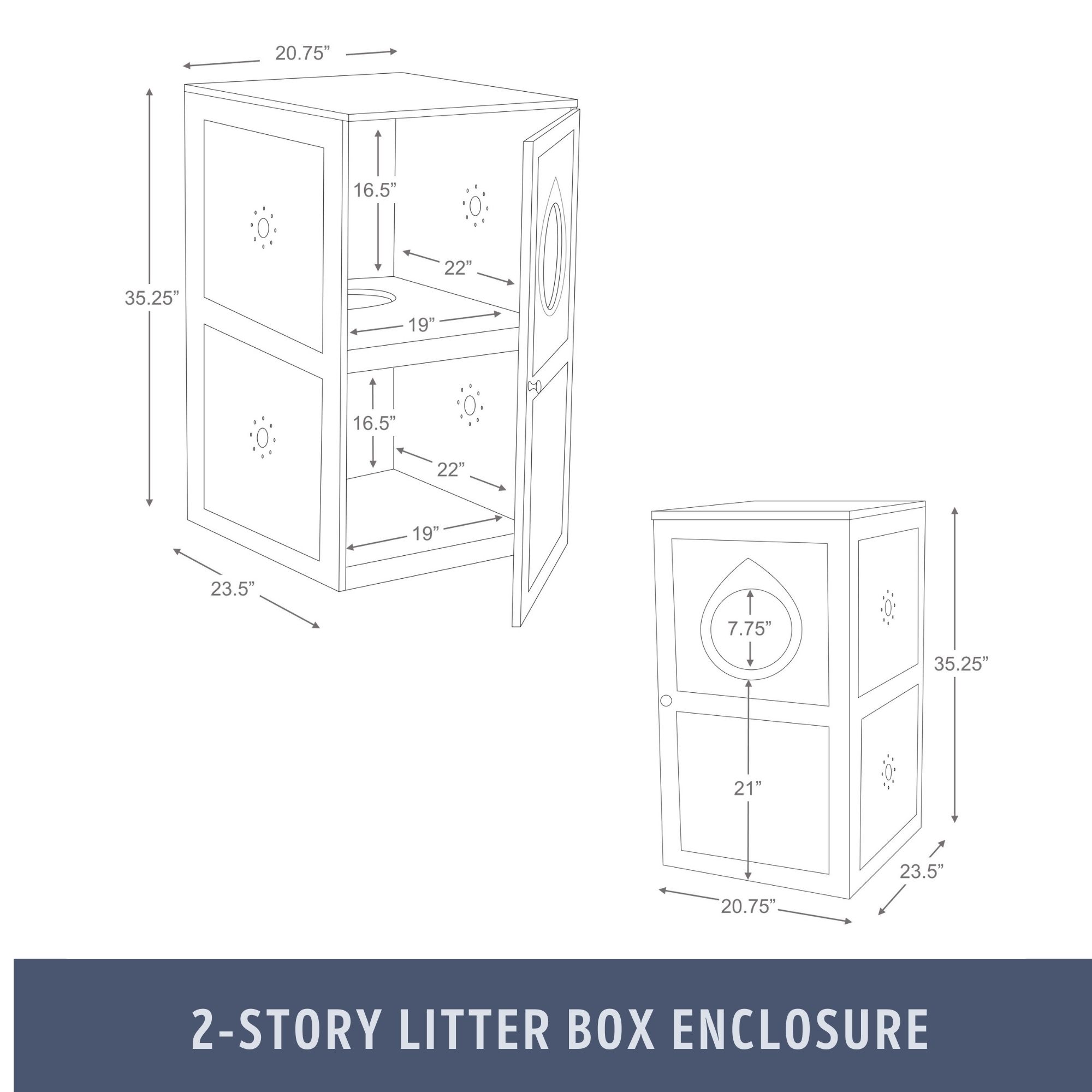 - Suitable for small litter boxes; lower level interior dimensions are 22” L x 19” W x 16” H; Litter box not included