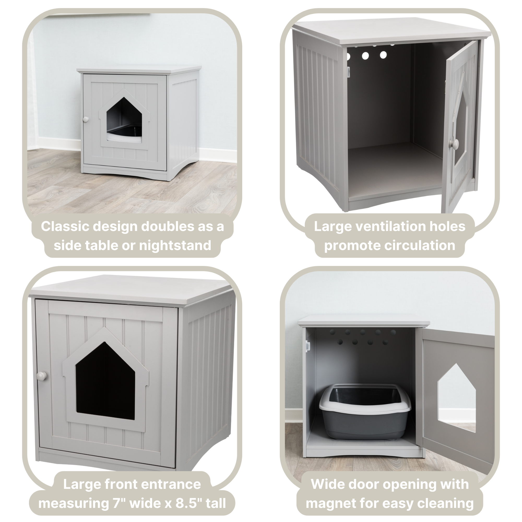 - An attractive enclosure to hide away your cat's litter box and confine any unsightly messes