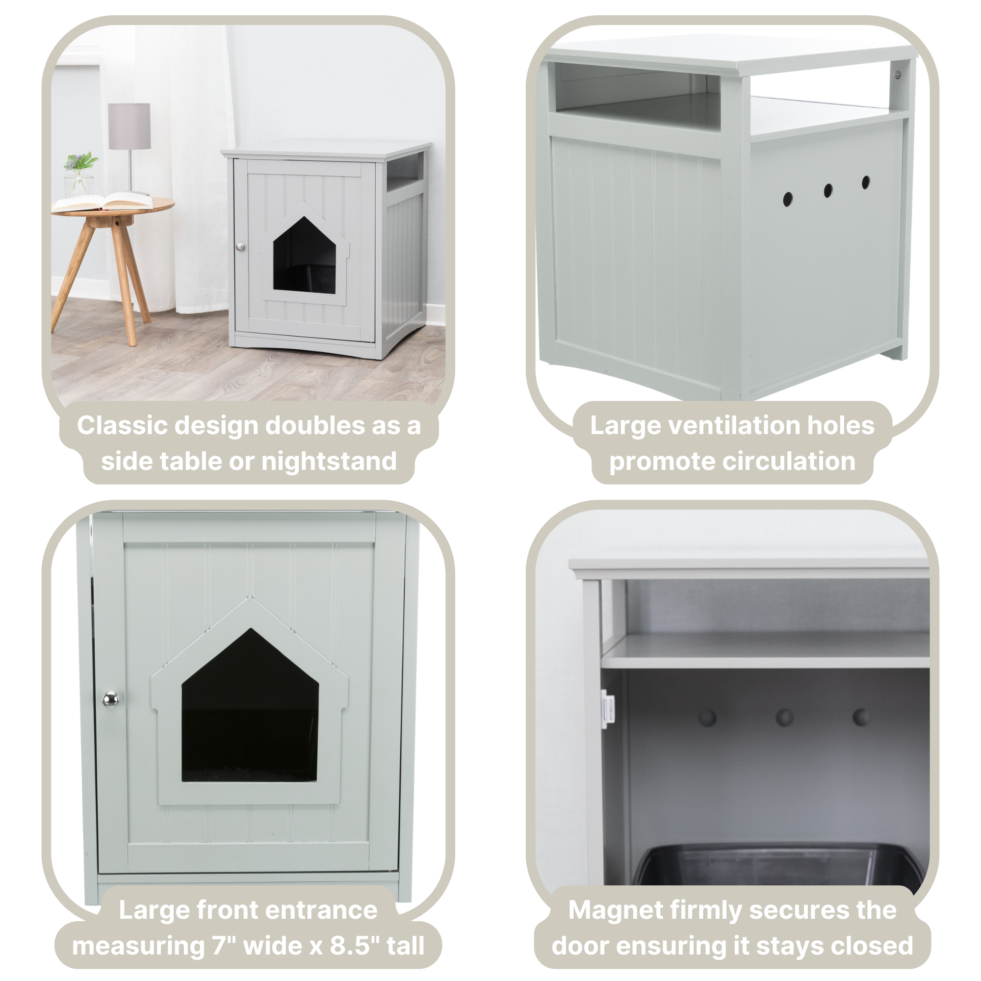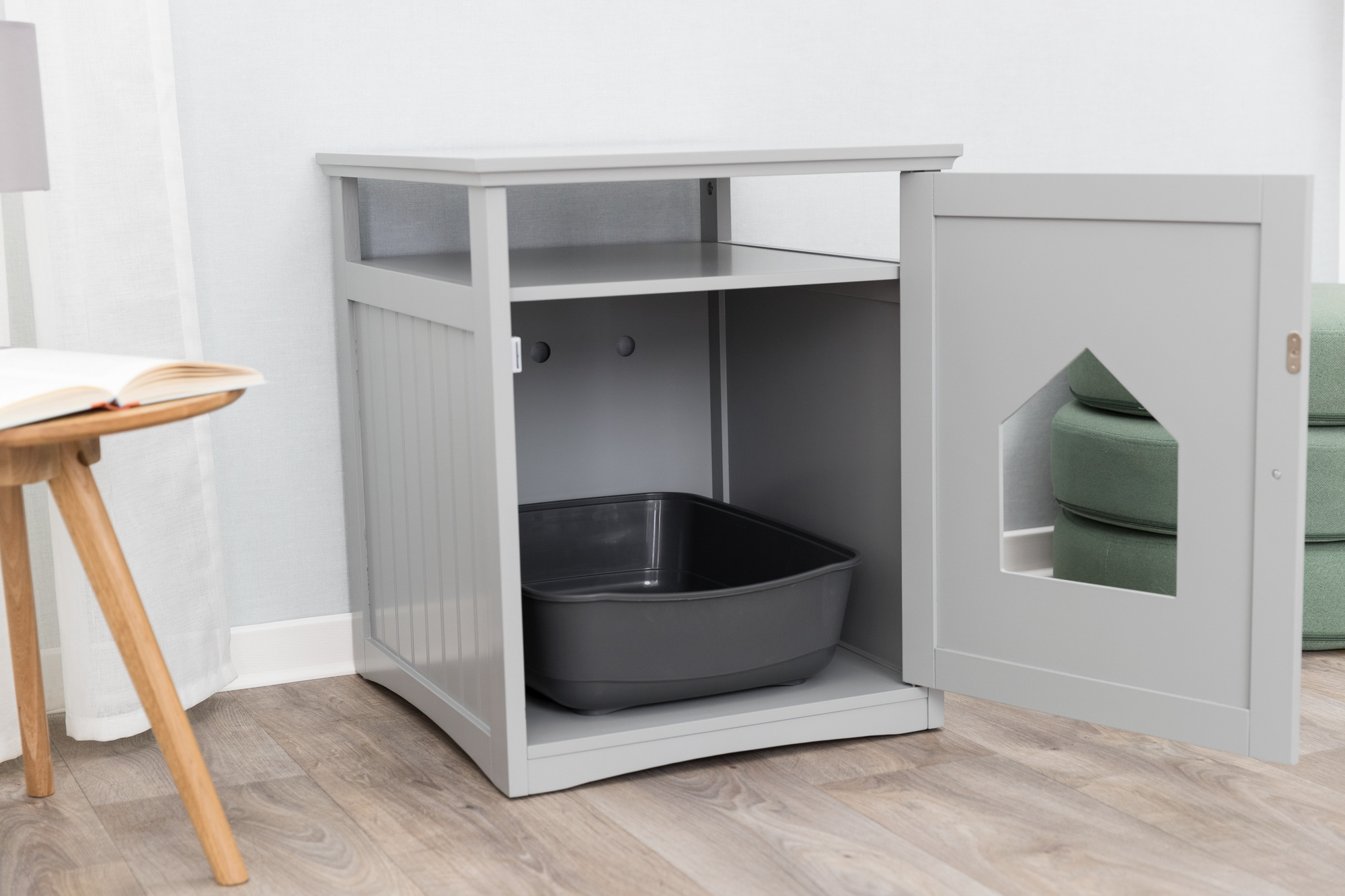 The TRIXIE Litter Box Enclosure and Pet Home is the perfect solution to help keep your litter box stylishly concealed but easily accessible to your cats. The modern, sleek design will match any home’s décor. This multi-functional pet home can disguise your litter box or provide a cozy retreat. This enclosure features a large front door with a cat-sized opening, giving you and your pet easy access. Place the cabinet anywhere and use it as a nightstand or side table because it has a wide tabletop perfect for magazines, potted plants, lamps, coasters, and more. There is a built-in shelf for additional storage. This cabinet top can hold up to 50 lbs.