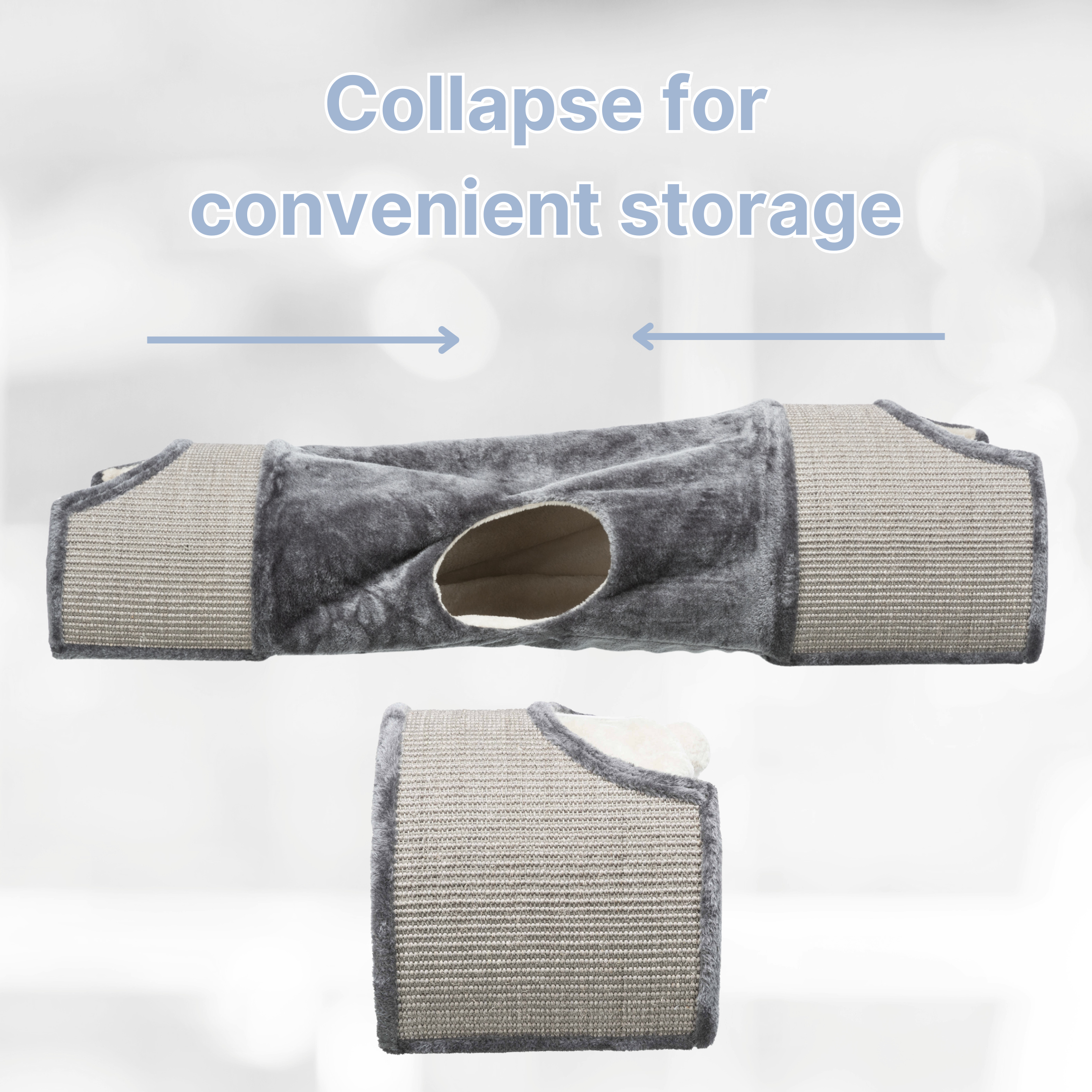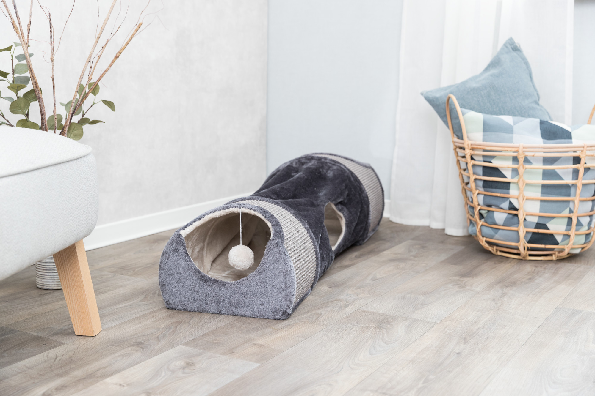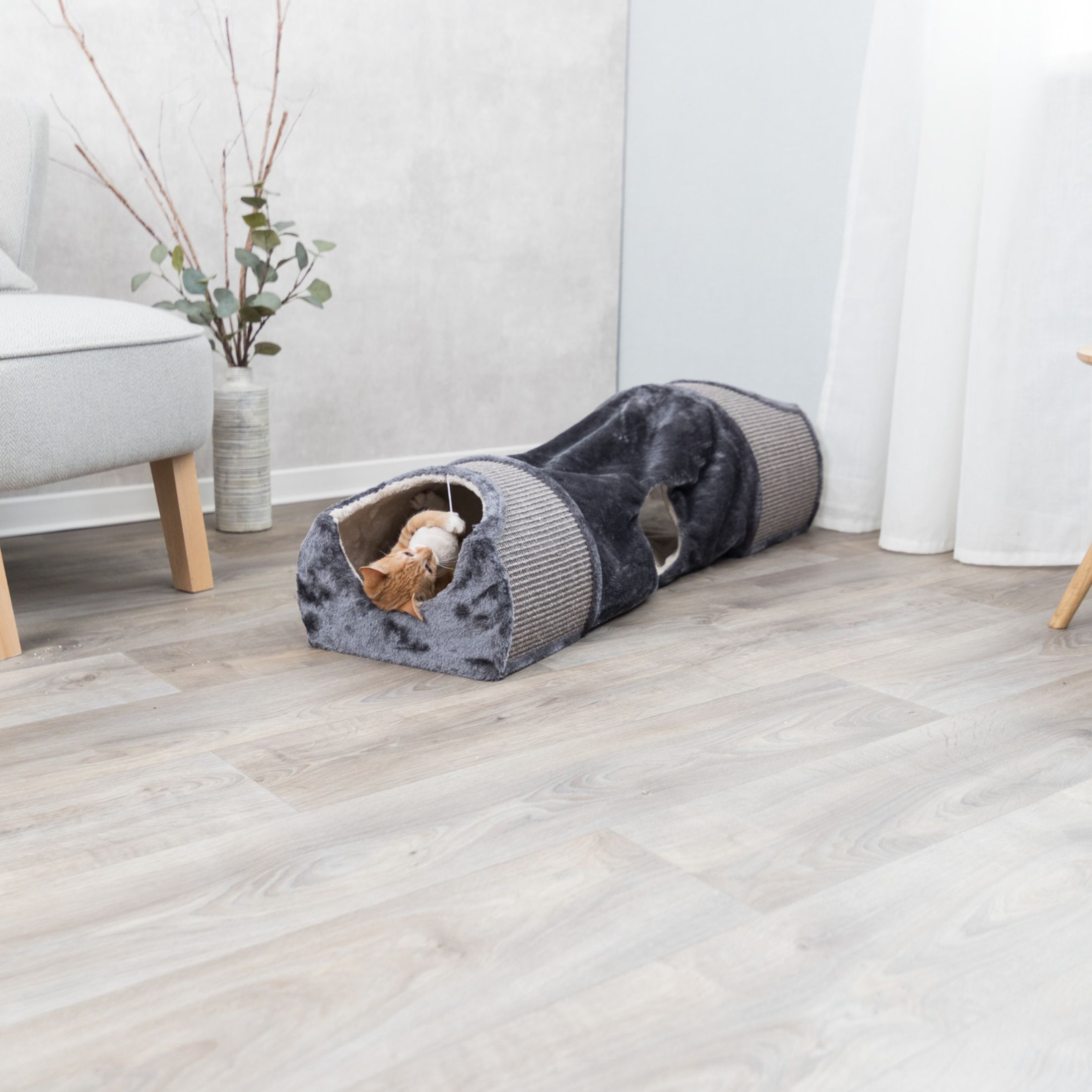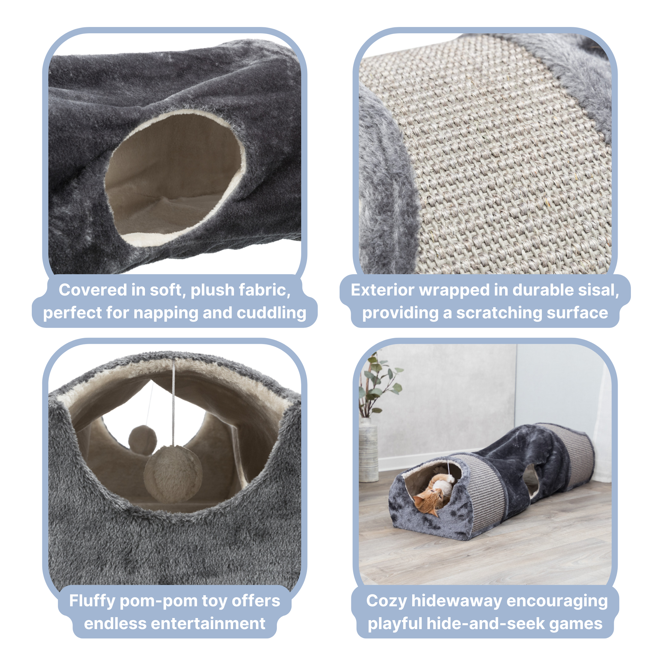 The perfect cozy cat cave for your furry friend. Your TRIXIE Cuddly Condo and Tunnel is the ultimate retreat for your feline companion. This complete cat condo system offers a variety of fun to keep your kitty entertained and relaxed. The soft, plush interior and exterior provide comfort your cat has never experienced, an inviting space for naps and cuddles. A sisal-covered scratching surface satisfies your cat's instincts, while the attached tunnel provides a fun and exciting hiding spot. Your cat will have ample room to zoom from end to end to explore, hunt, and play. Watch your cat's face light up as they discover their new favorite hangout spot!