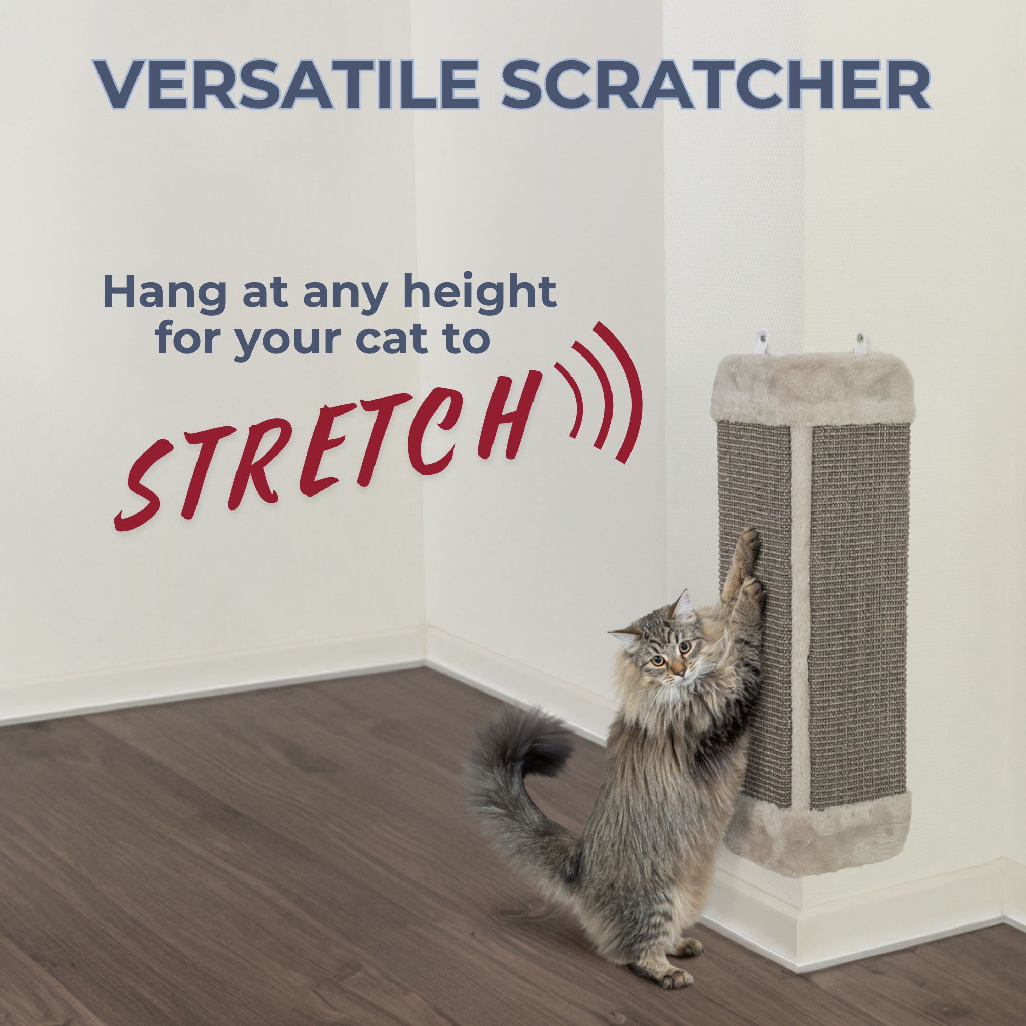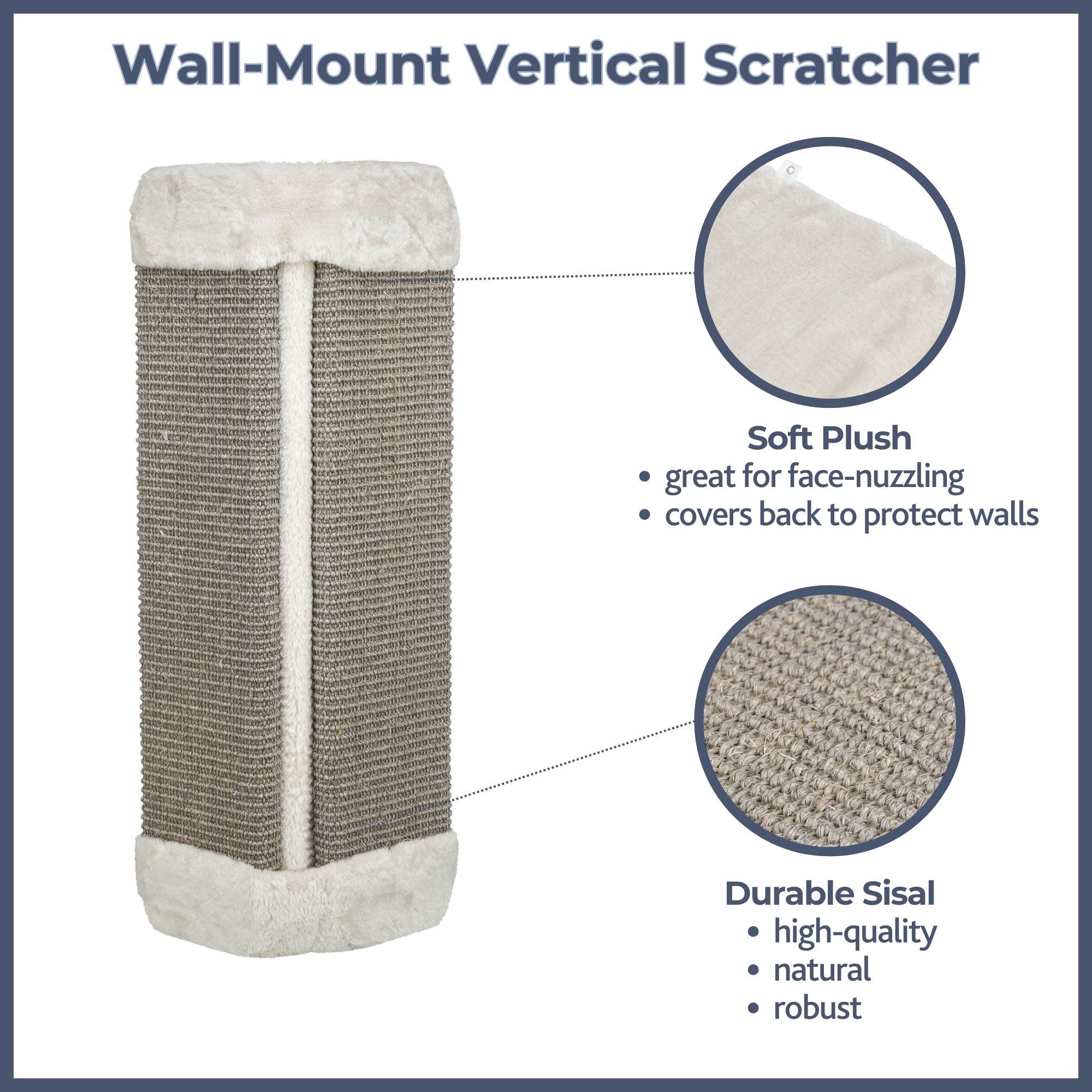 The TRIXIE Scratching Board for Corners will provide endless opportunities for cats to play, explore, and scratch. Instead of scratching your furniture or carpet, felines can use this sisal-covered board to sharpen their claws and satisfy their scratching instincts in a healthy way. The corner board is covered in extra-thick sisal, which makes it highly durable and able to withstand your kitty's sharp claws. The scratching board comes with wall mounting hardware, allowing you to attach it to any preferred corner of your home. Additionally, this board comes with catnip, which can help pique your pet's interest if they aren't sure about it at first!