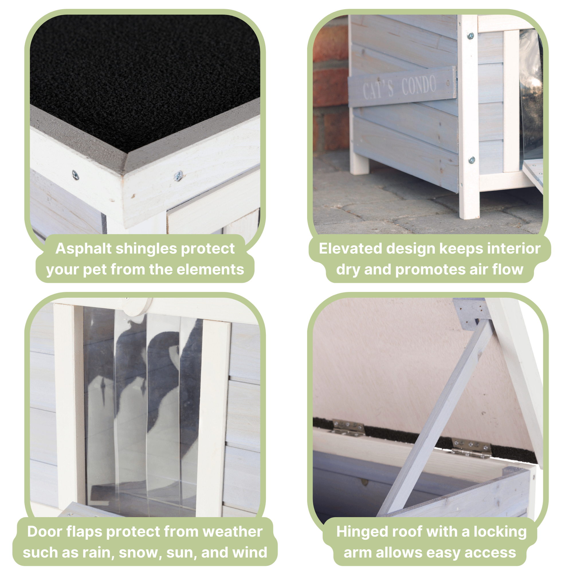 - ALL-SEASON PROTECTION: Designed with weatherproofed solid wood and asphalt shingles to protect your pet from the elements - it is the ideal combination of warmth in winter and shade in summer