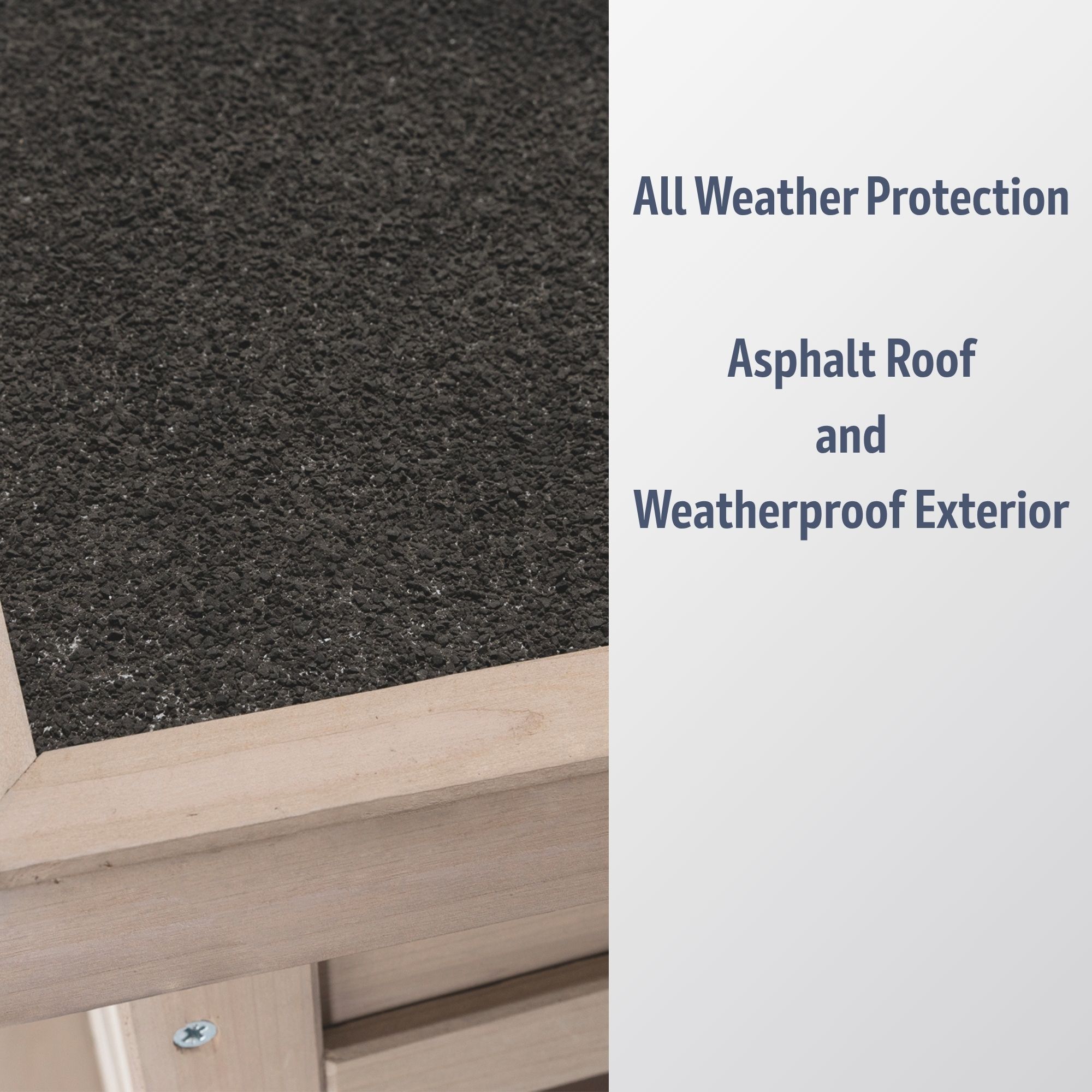 TRIXIE's 3-story Wooden Outdoor Cat Retreat provides a safe and comfortable space for your outdoor cat. Made with durable fir, composite shingles, and a weatherproof finish, this retreat is designed to withstand the elements with minimal maintenance. It's perfect for outdoor cats to rest, stay dry on rainy nights, and enjoy the outdoors. You can expand this retreat with our Wooden Outdoor Catio (item 44113).