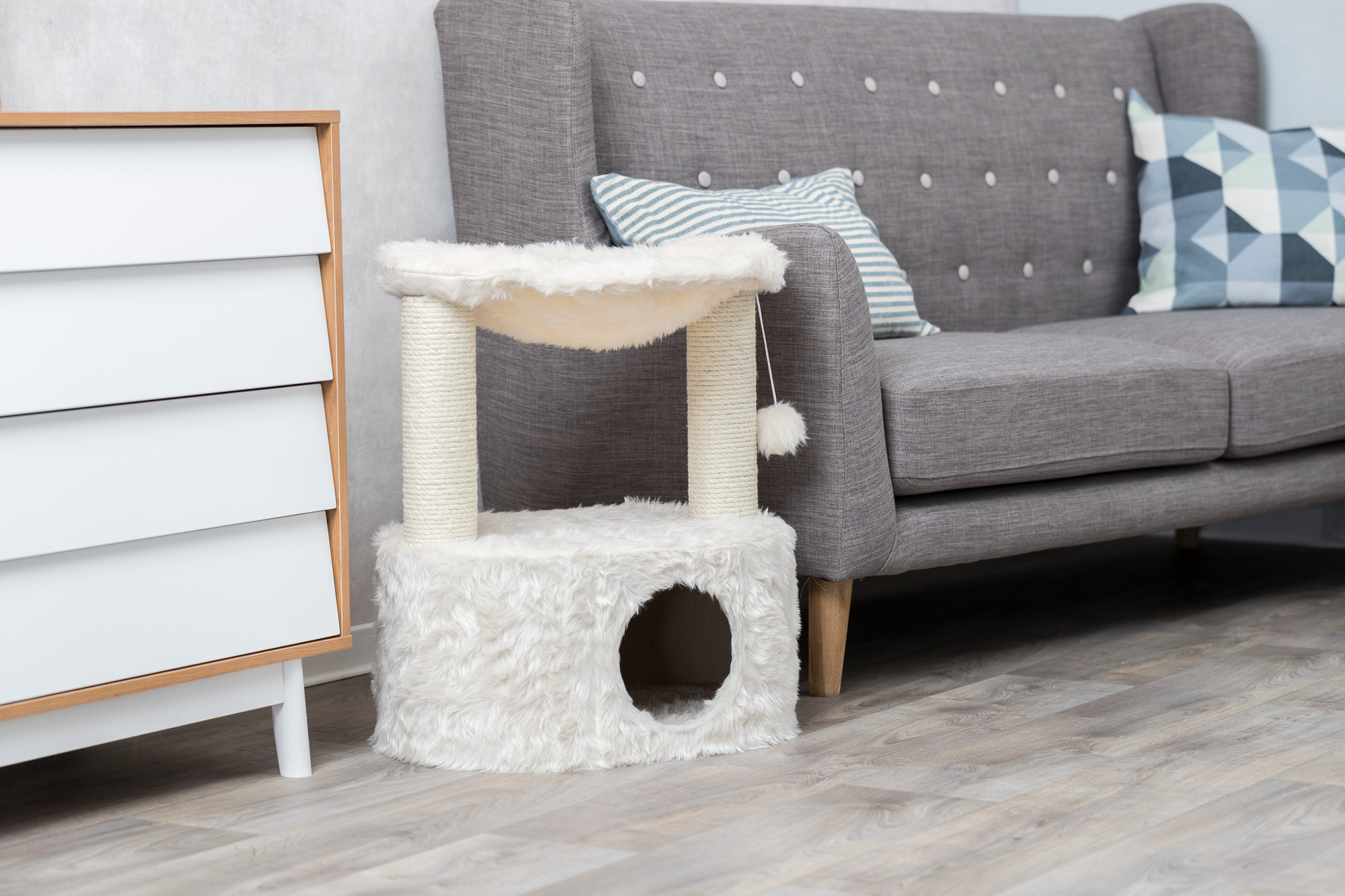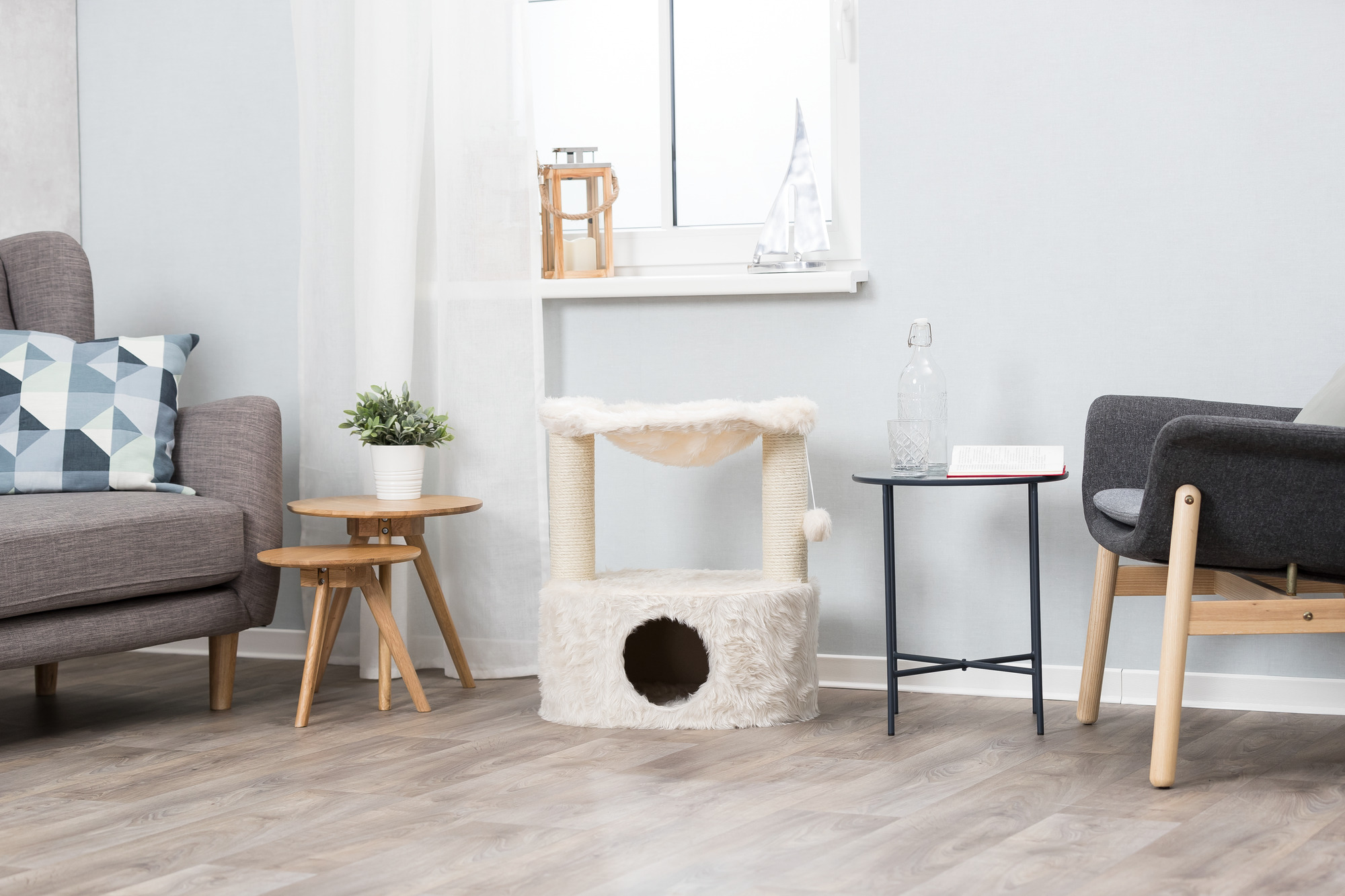 - 2 scratching posts covered in sisal, perfect to satisfy a cat's natural instinct to scratch while protecting your furniture