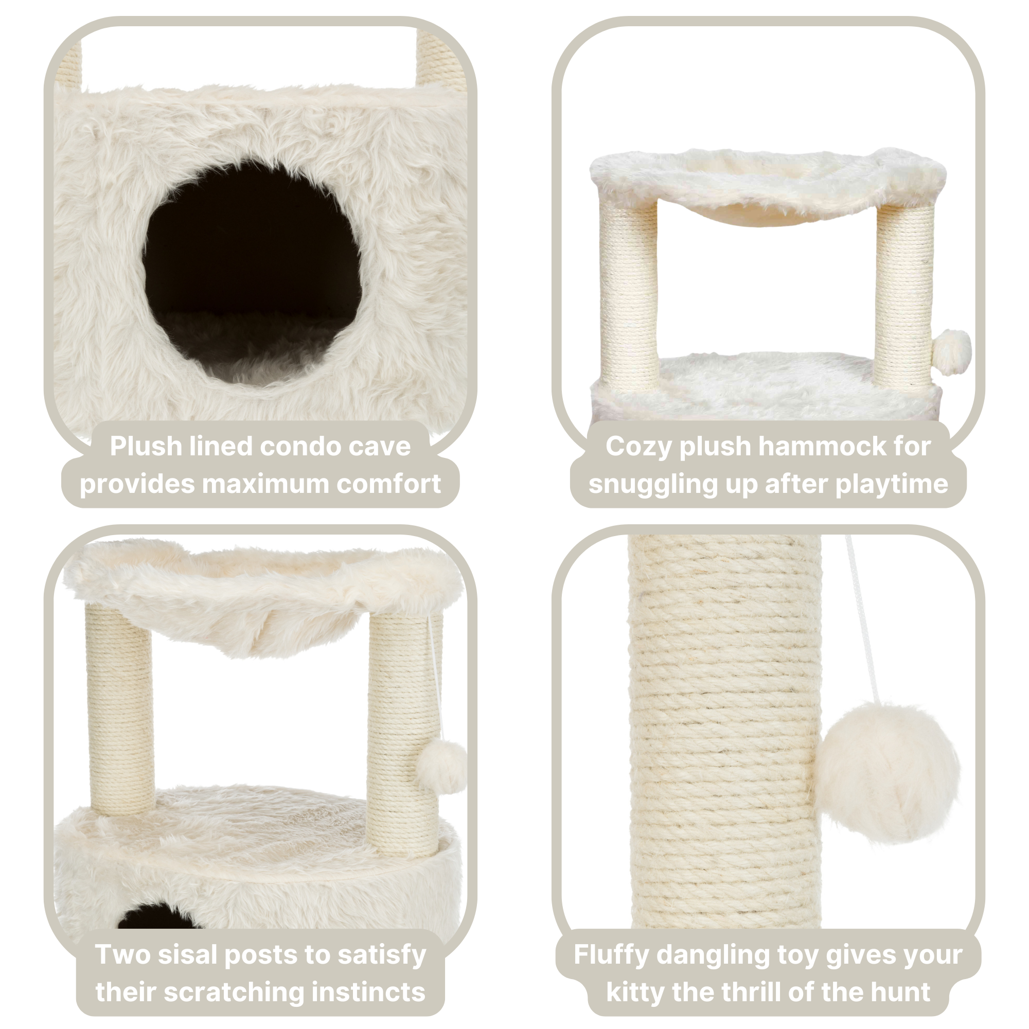 - Cats love nothing more than to snuggle up after playtime; the plush hammock and condo provides maximum comfort for your furry friend to peacefully relax, lounge, or nap