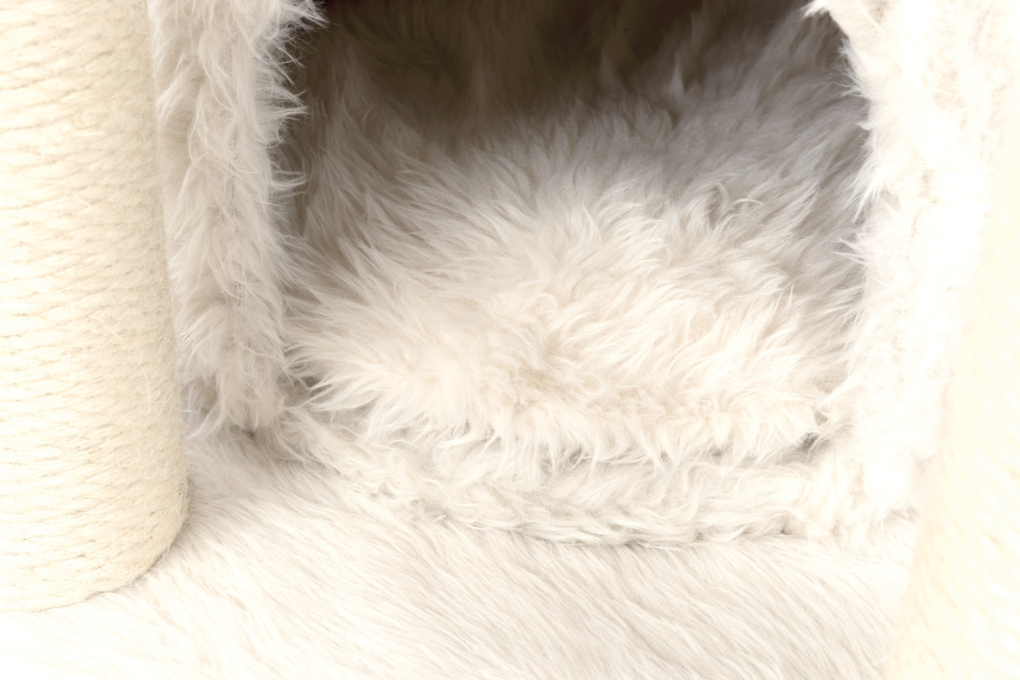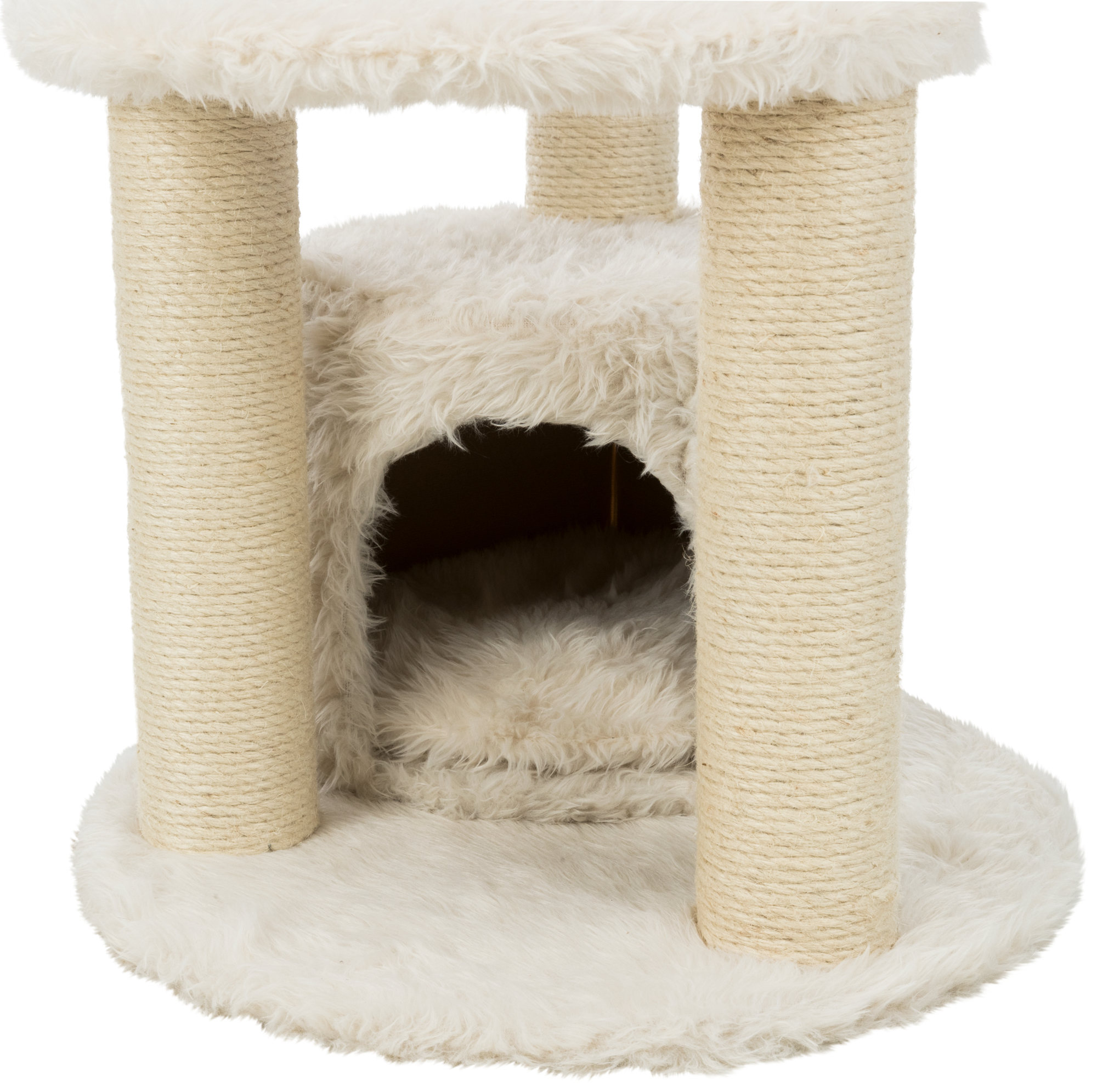 TRIXIE's Baza Junior Cat Tower offers cats plenty of opportunities to explore, scratch, or simply relax. Felines can sharpen their claws on the durable extra-thick jute scratching posts, giving them a healthy outlet for their scratching instincts. For a welcome retreat, your feline can curl up inside the cozy condo with removable cushion insert, or lounge inside the hammock with a supportive metal rim. Both are covered with long-haired plush. Spunky cats can perch atop the top lying platform with removable bed. The bed and cushion insert are machine washable. Suitable for cats of all ages and activity levels.