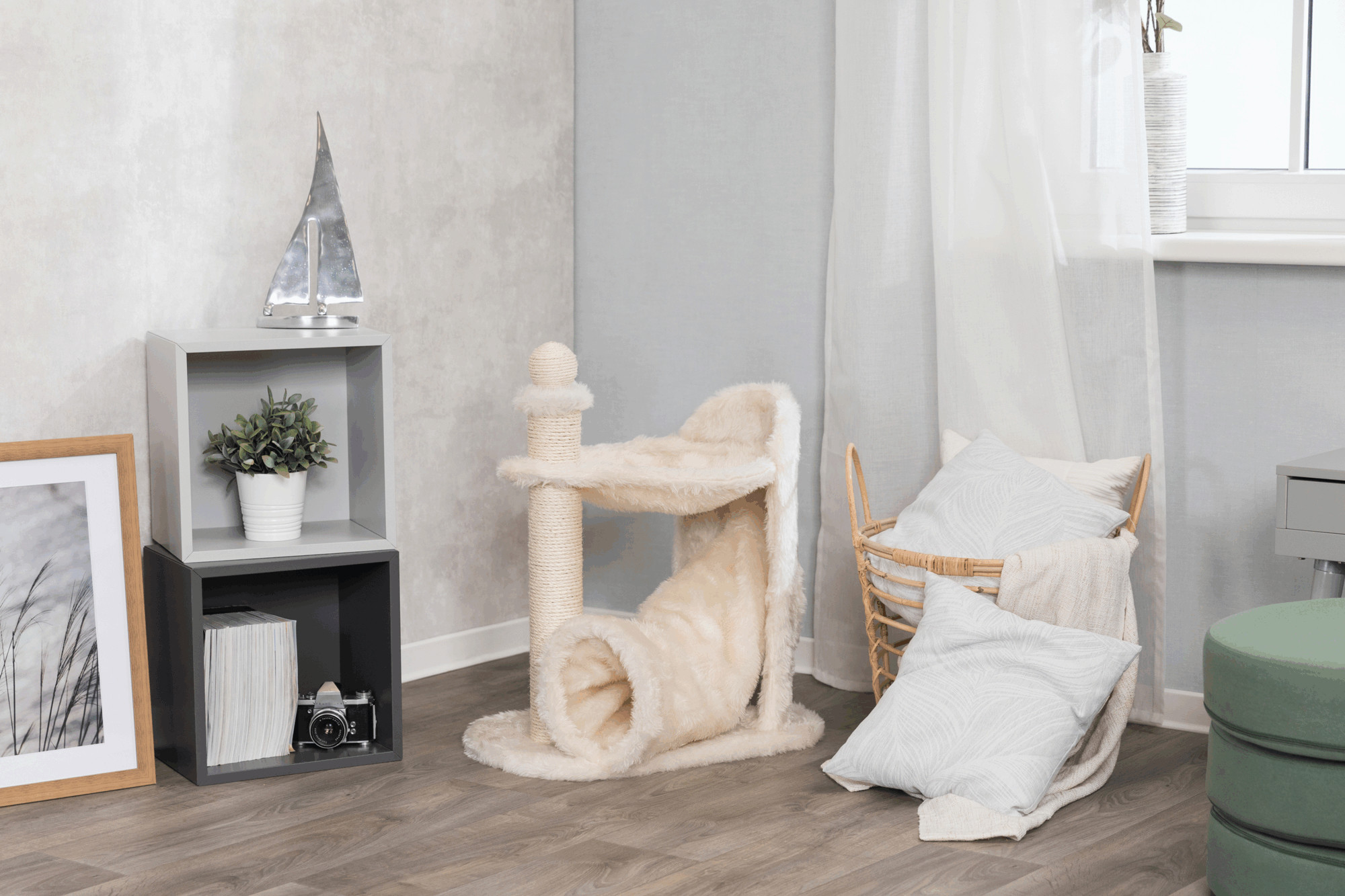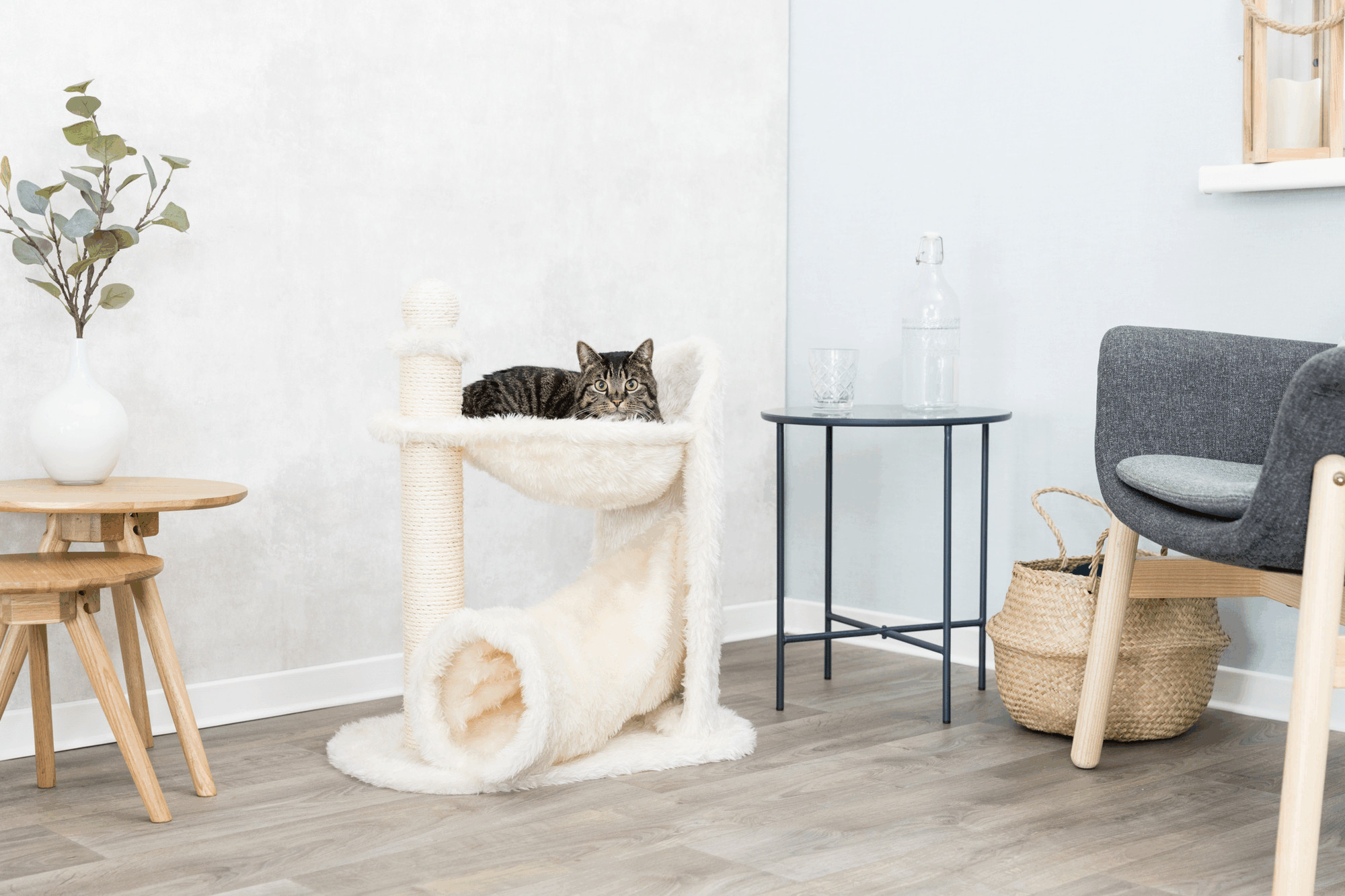 - 2 scratching posts covered in sisal, perfect to satisfy a cat's natural instinct to scratch while protecting your furniture