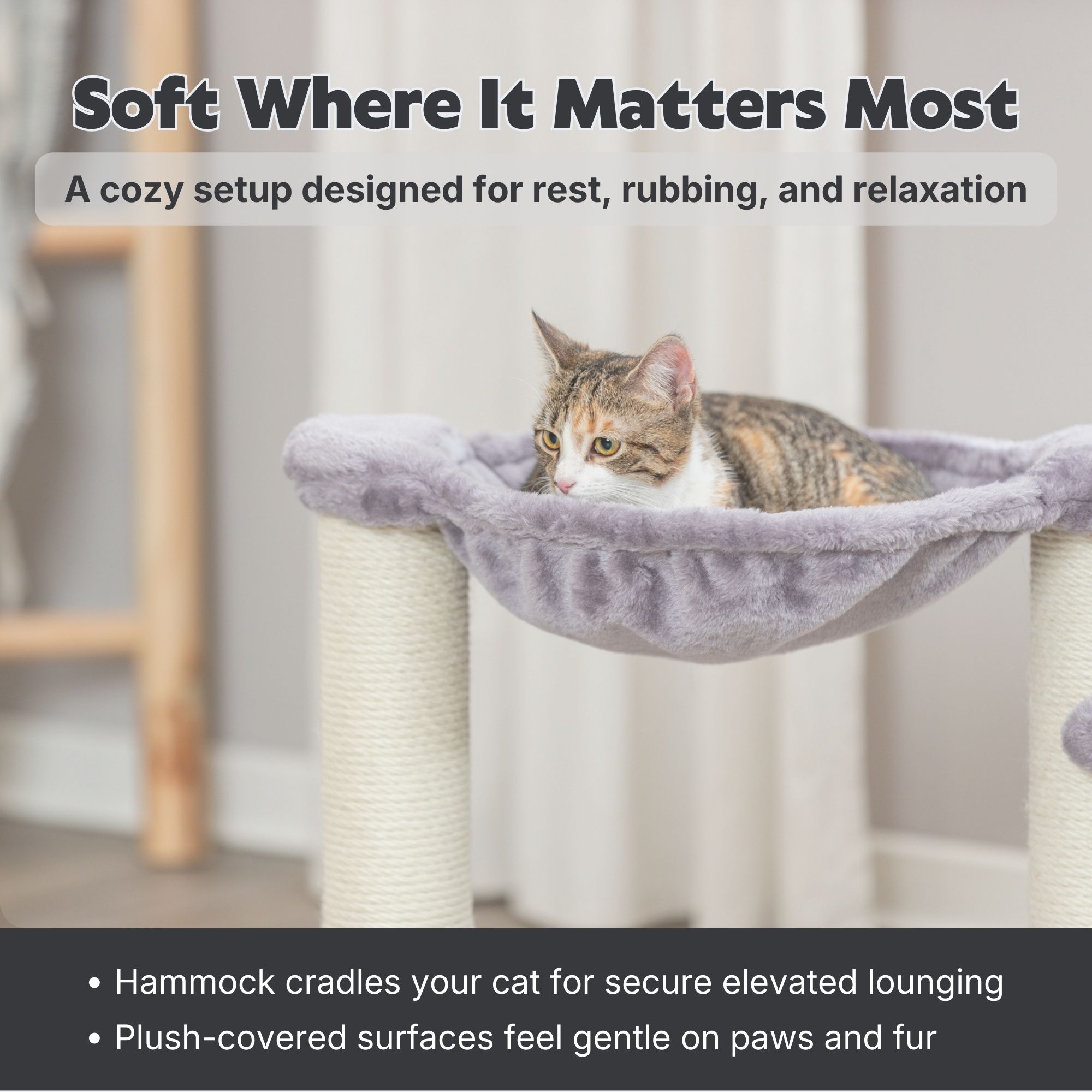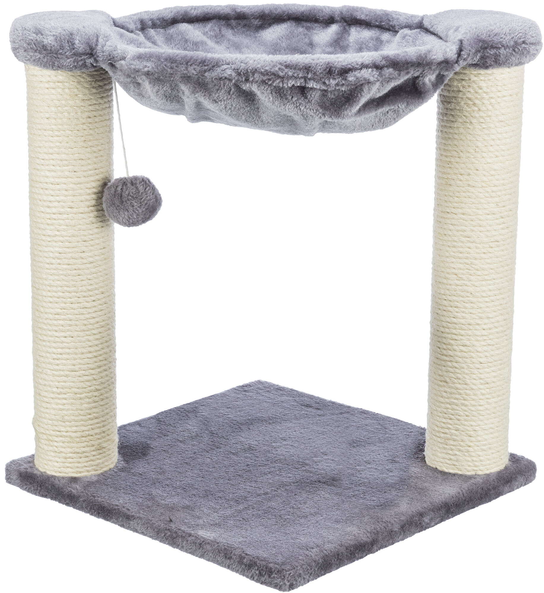 Give Your Cat the TRIXIE Baza Cat Tree – the ultimate playground! We know cats rule the home, so here is your attempt to reclaim it. Give your feline overlord their own kingdom with this dual post scratcher. Felines can sharpen their claws on jute-covered scratching posts instead of on your furniture or carpet, giving them a healthy outlet for their scratching instincts. This all-in-one climber, scratcher, and napping station will entertain your kitty for hours. When they feel a little spunky, we've included a dangling pom-pom toy to pique their playful interests. They can curl up in the cozy hammock if a nap is in order. Perfect for kittens and small to medium adult cats, this simple yet functional cat tree delivers everyday comfort and enrichment in a design that blends easily into your home.