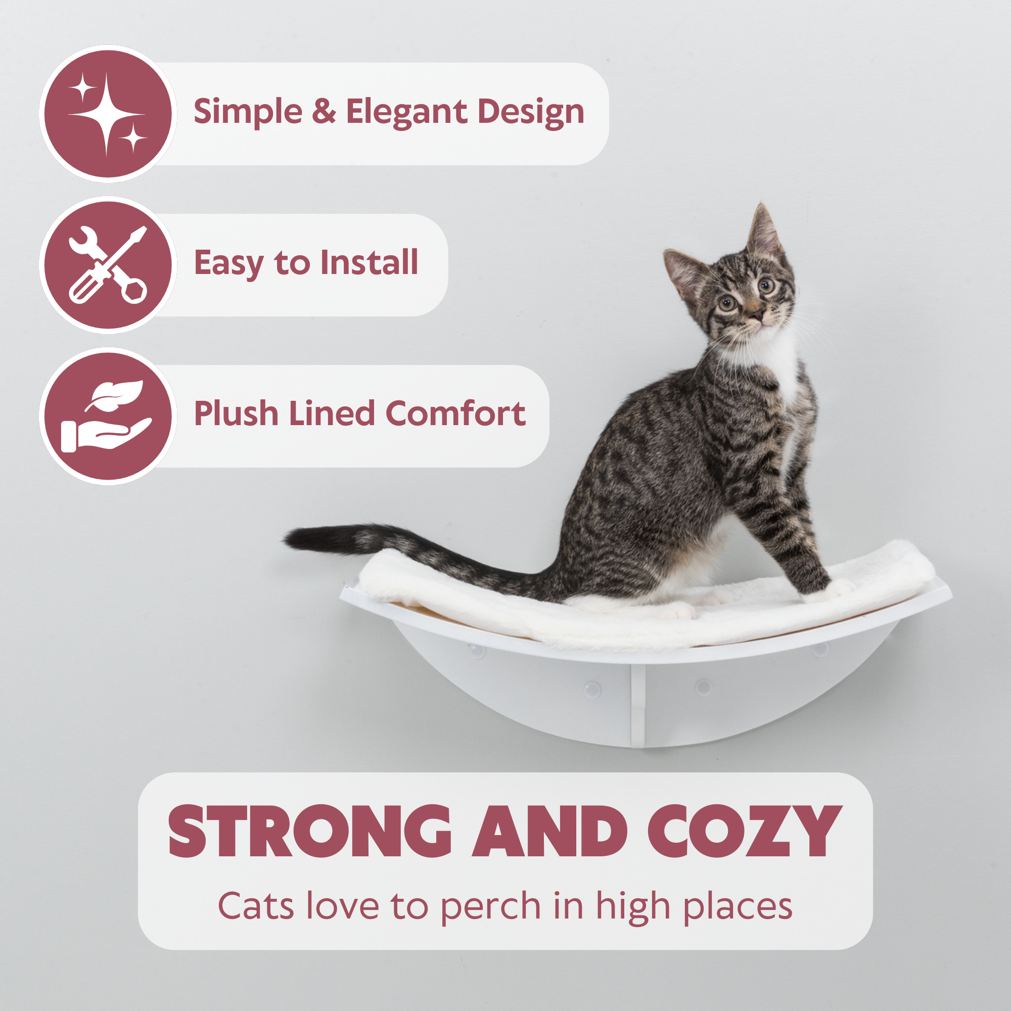 - Plush Perch - cats love nothing more than to snuggle up after playtime; the plush lined perch provides maximum comfort for your furry friend to peacefully relax, lounge, or nap