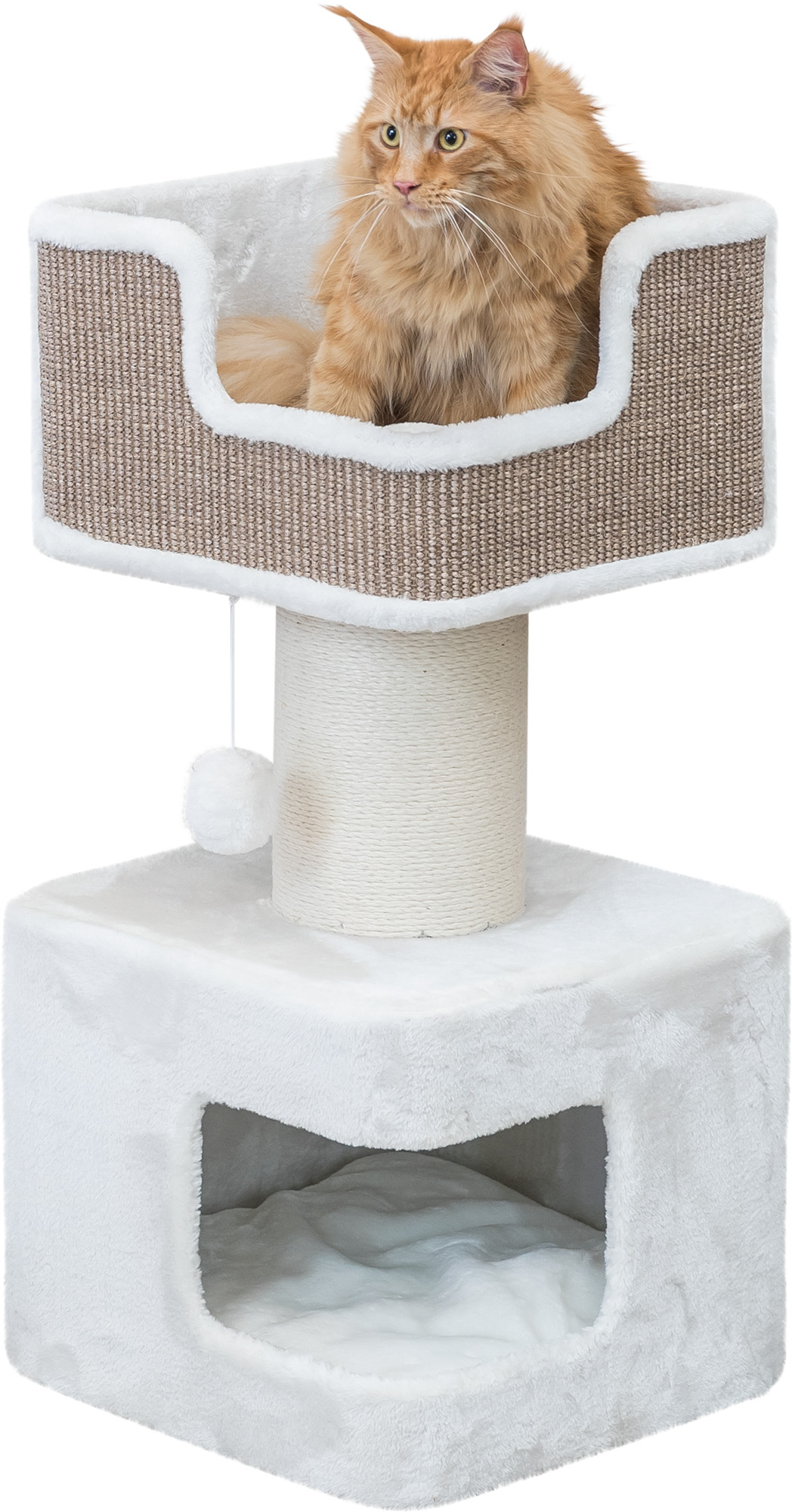 TRIXIE Ava Scratching Post XXL is the perfect get-away for your feline with a plush base Condo with removable cushion insert, machine washable. The extra-large jute scratching post gives your cats an outlet for their scratching instincts while providing a stable foundation for the large top lying platform. Suitable for cats of all ages and activity levels. Easy care cushions; gentle wash