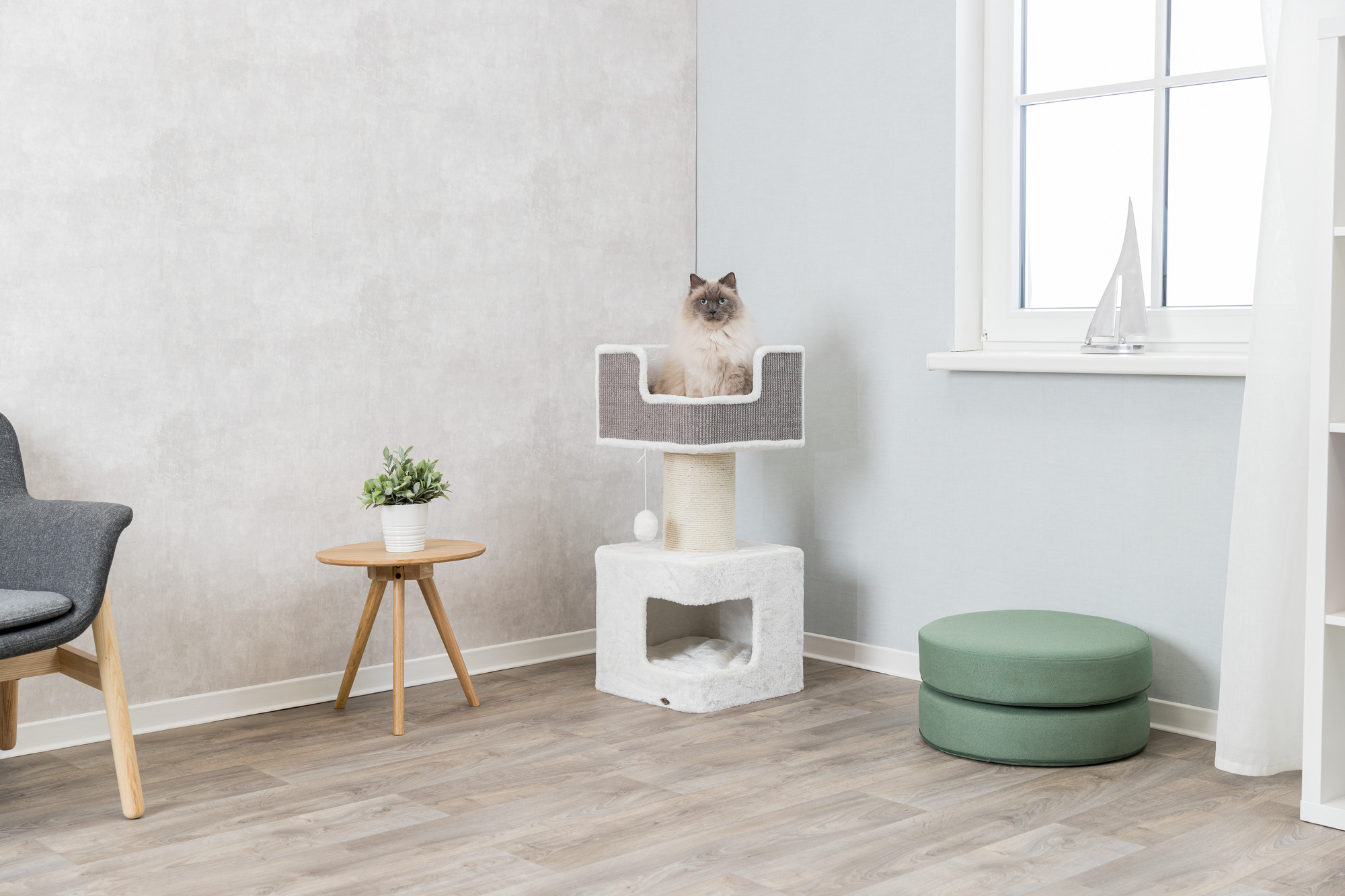 TRIXIE Ava Scratching Post XXL is the perfect get-away for your feline with a plush base Condo with removable cushion insert, machine washable. The extra-large jute scratching post gives your cats an outlet for their scratching instincts while providing a stable foundation for the large top lying platform. Suitable for cats of all ages and activity levels. Easy care cushions; gentle wash