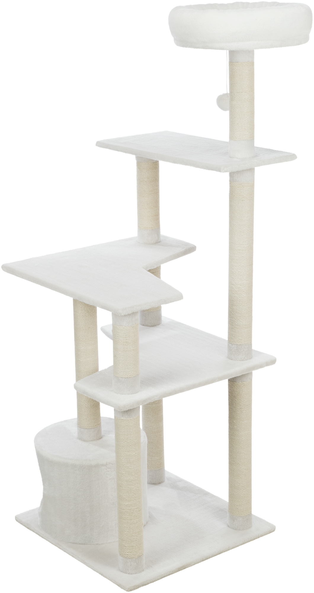Imagine the joy in your cat's eyes as they climb and play on their cat tree. Watch as they curl up in the cozy condo for naps or chase after a dangling toy with playful abandon. The TRIXIE Seli Cat Tree is more than just a piece of furniture – it's a gift of love and happiness for your feline friend. This five-level cat tower offers endless hours of entertainment and relaxation, all within the comfort of your home. Your cat will adore the plush-covered platforms, cozy condo, and padded top perch, perfect for napping or surveying their kingdom. The sisal-covered posts provide the ideal scratching surface, keeping your claws healthy and your furniture safe. And let's not forget the dangling cat toy on a string – a playful treat that will keep your kitty entertained for hours. Give your cat the gift of a happy, healthy life with the TRIXIE Seli Cat Tree.
