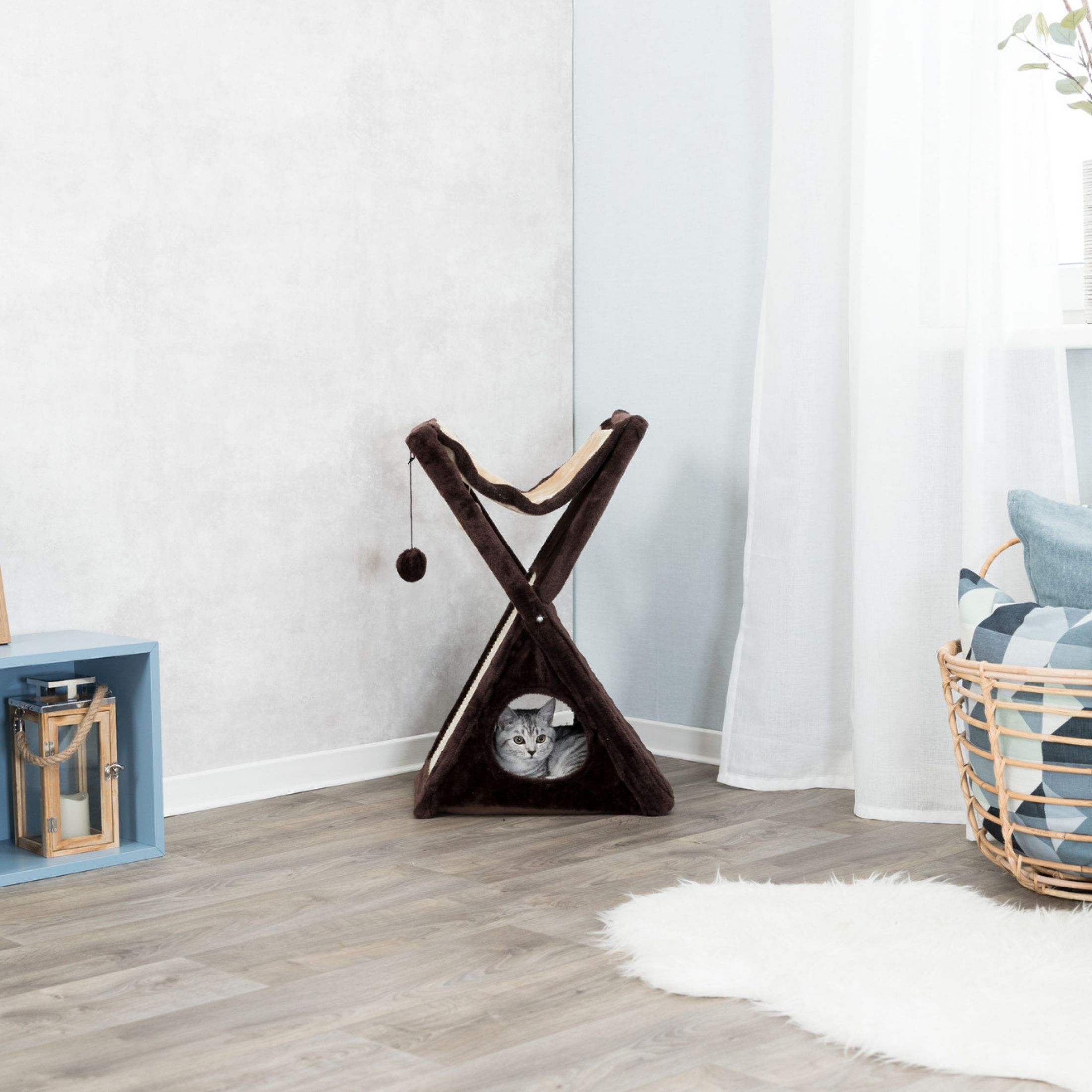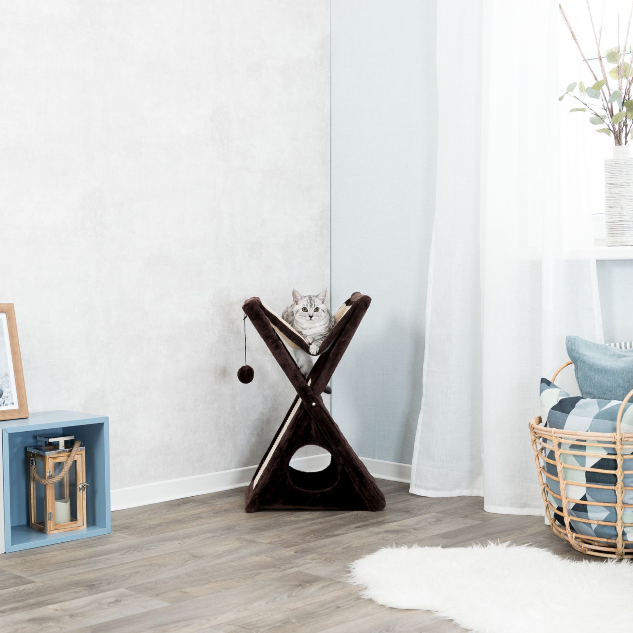 The unique design of the TRIXIE Miguel Fold and Store Cat Hammock makes it ideal for small spaces. It will provide endless opportunities for cats to play, explore, scratch, or relax. Felines can sharpen their claws on the durable sisal scratching surface, instead of on your furniture or carpet, providing them with a healthy outlet for their scratching instincts. Spunky cats can jump, climb, or perch in the plush hammock and lie in wait for unsuspecting prey, or relax and enjoy the view. For a cozy retreat, they can curl up inside the soft-sided condo with a plush insert. When play is over, fold it down for quick and easy storage.