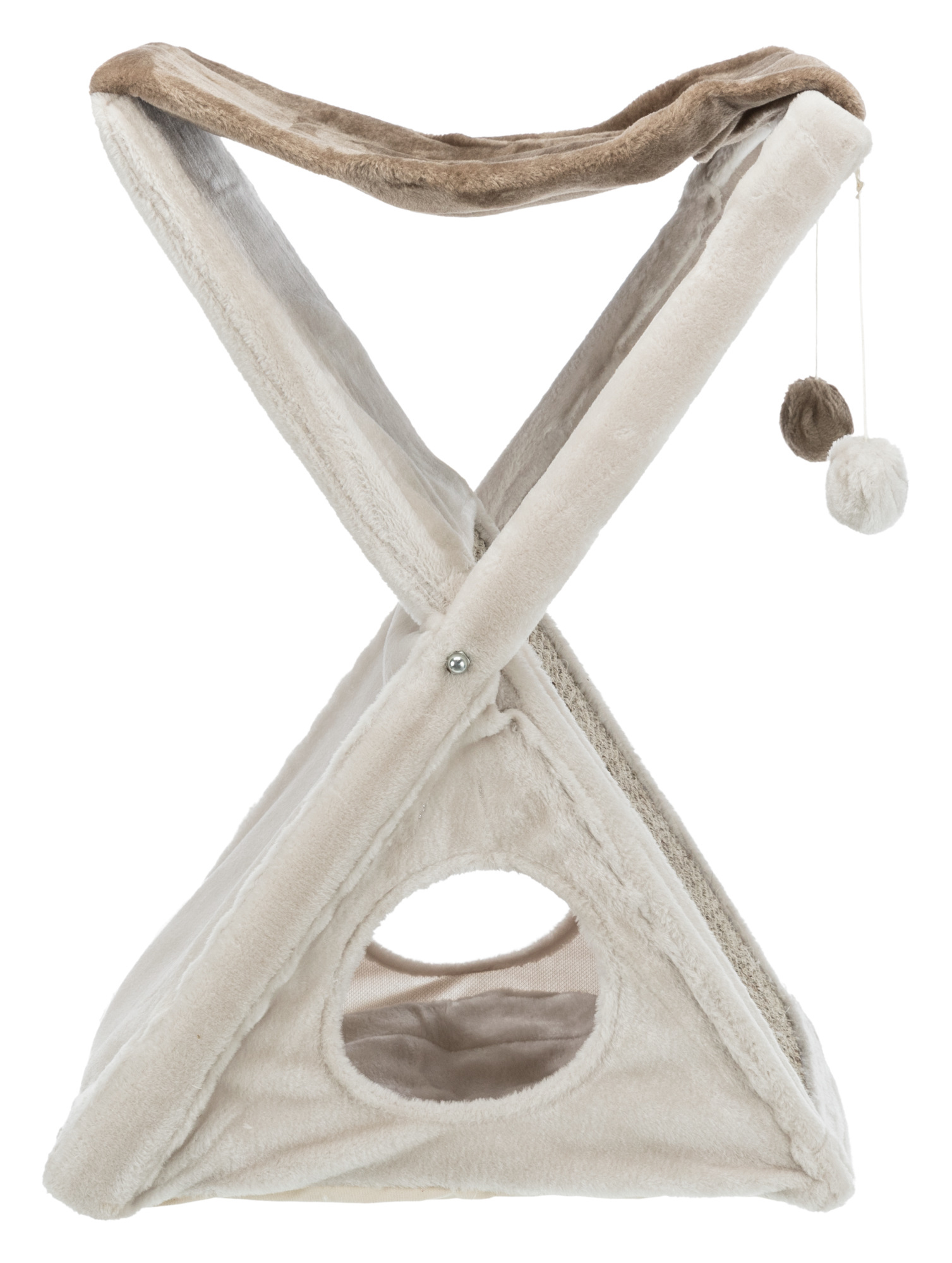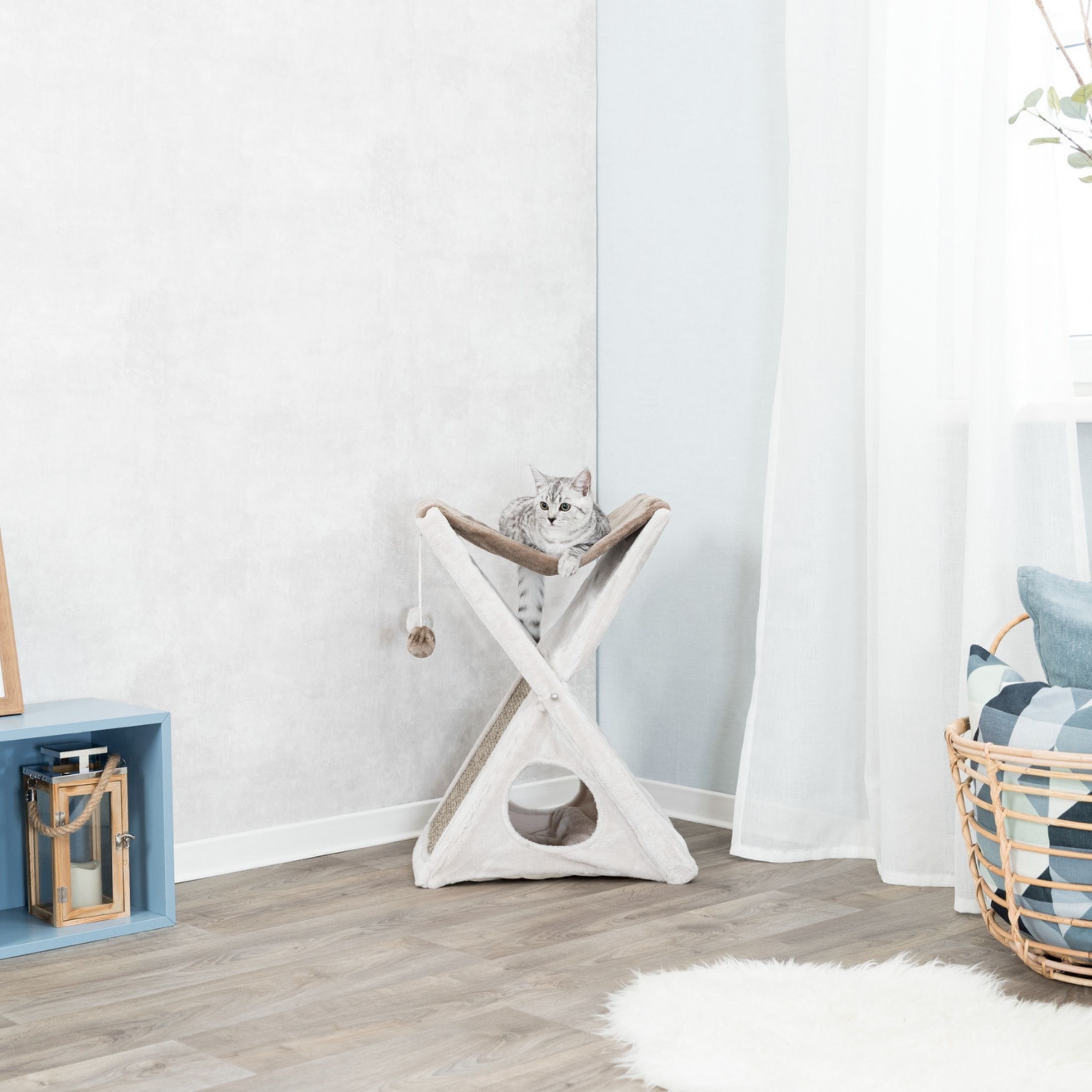 The unique design of the TRIXIE Miguel Fold and Store Cat Hammock makes it ideal for small spaces. It will provide endless opportunities for cats to play, explore, scratch, or relax. Felines can sharpen their claws on the durable sisal scratching surface, instead of on your furniture or carpet, providing them with a healthy outlet for their scratching instincts. Spunky cats can jump, climb, or perch in the plush hammock and lie in wait for unsuspecting prey, or relax and enjoy the view. For a cozy retreat, they can curl up inside the soft-sided condo with a plush insert. When play is over, fold it down for quick and easy storage.