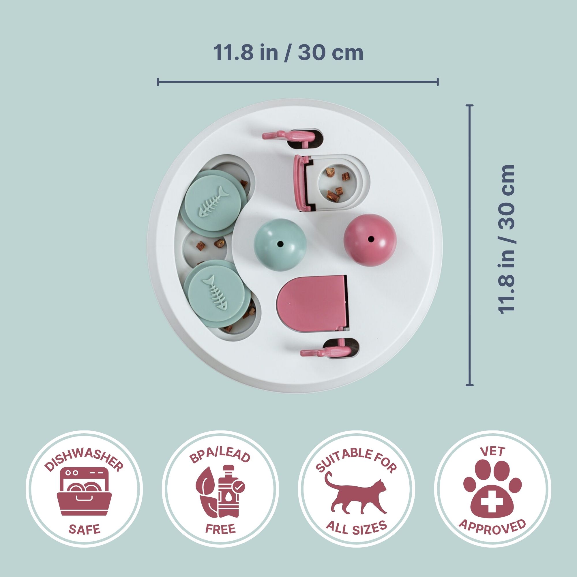 - Challenge your cat’s mind with 4 unique puzzle modules that encourage problem solving and reduce boredom