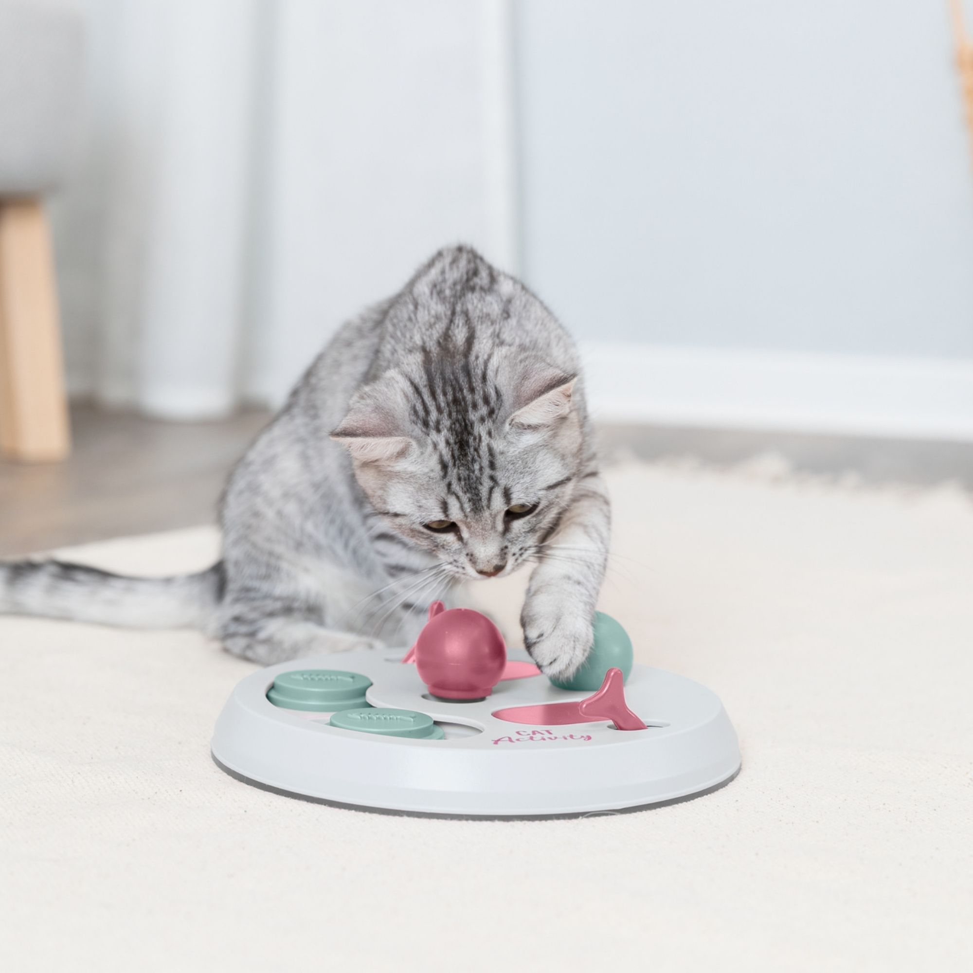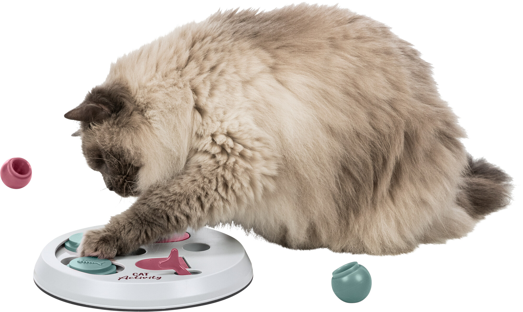 Stimulate your cat's mind and body with TRIXIE Interactive Toys. Your feline friend will be entertained and engaged with TRIXIE’s selection of interactive cat toys and food puzzle toys. Our enriching toys are designed to challenge your cat's instincts, promote mental and physical stimulation, and provide hours of fun. From puzzle feeders to interactive toys, our collection offers a variety of options to suit every cat's personality and play style. Discover the perfect toy to spark your cat's curiosity and keep them active and happy. Unleash your cat's inner hunter with the TRIXIE Cat Activity Flip Board; this interactive puzzle toy stimulates your cat's senses, encourages problem-solving skills, and provides a healthy outlet for their instincts. Filling the compartments with treats or food will create a rewarding experience that will keep your cat engaged and happy. Whether you have a playful kitten or a senior cat, the TRIXIE Poker Box offers a fun and enriching way to enhance your cat's quality of life.