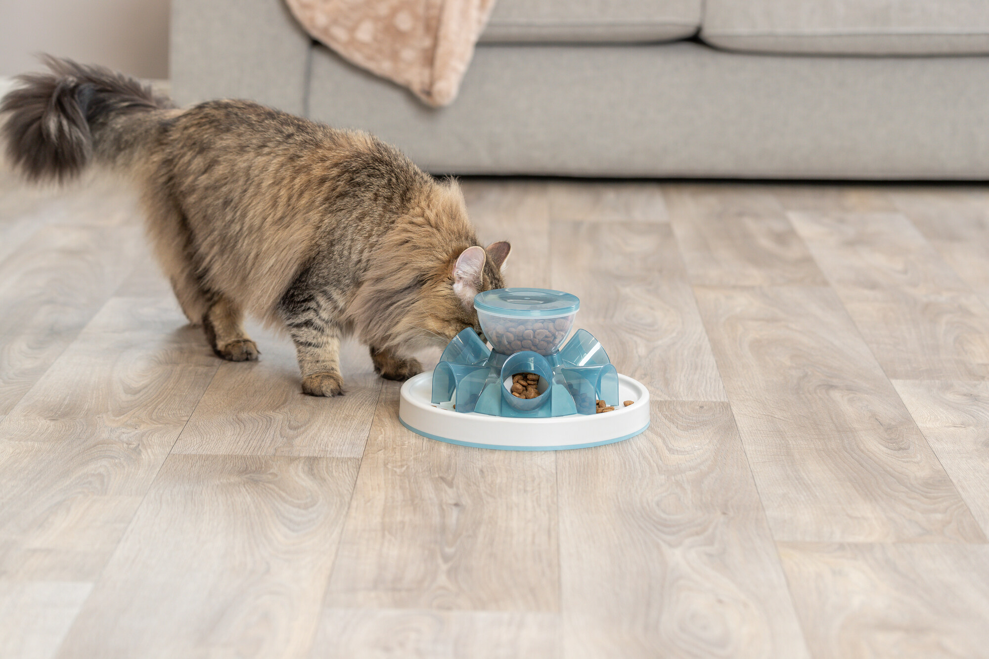 - Non-slip rubber pads keep the feeder from sliding around as your cat explores