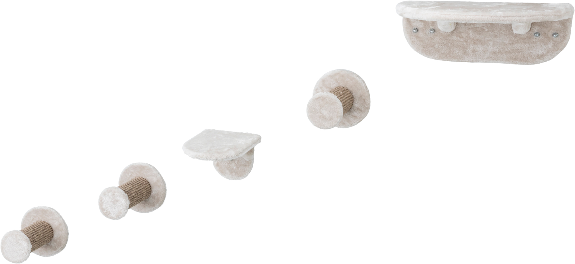 TRIXIE's Wall Mount Systems are the latest in cat tree design. This great space-saving lounging set is ideal for small or modern spaces. More importantly, cats will love the ability to explore new heights with two plush covered perches and 3 durable sisal wrapped steps. Mix and match to create the perfect solution with other TRIXIE Wall Mount Sets. Assembly and installation required.