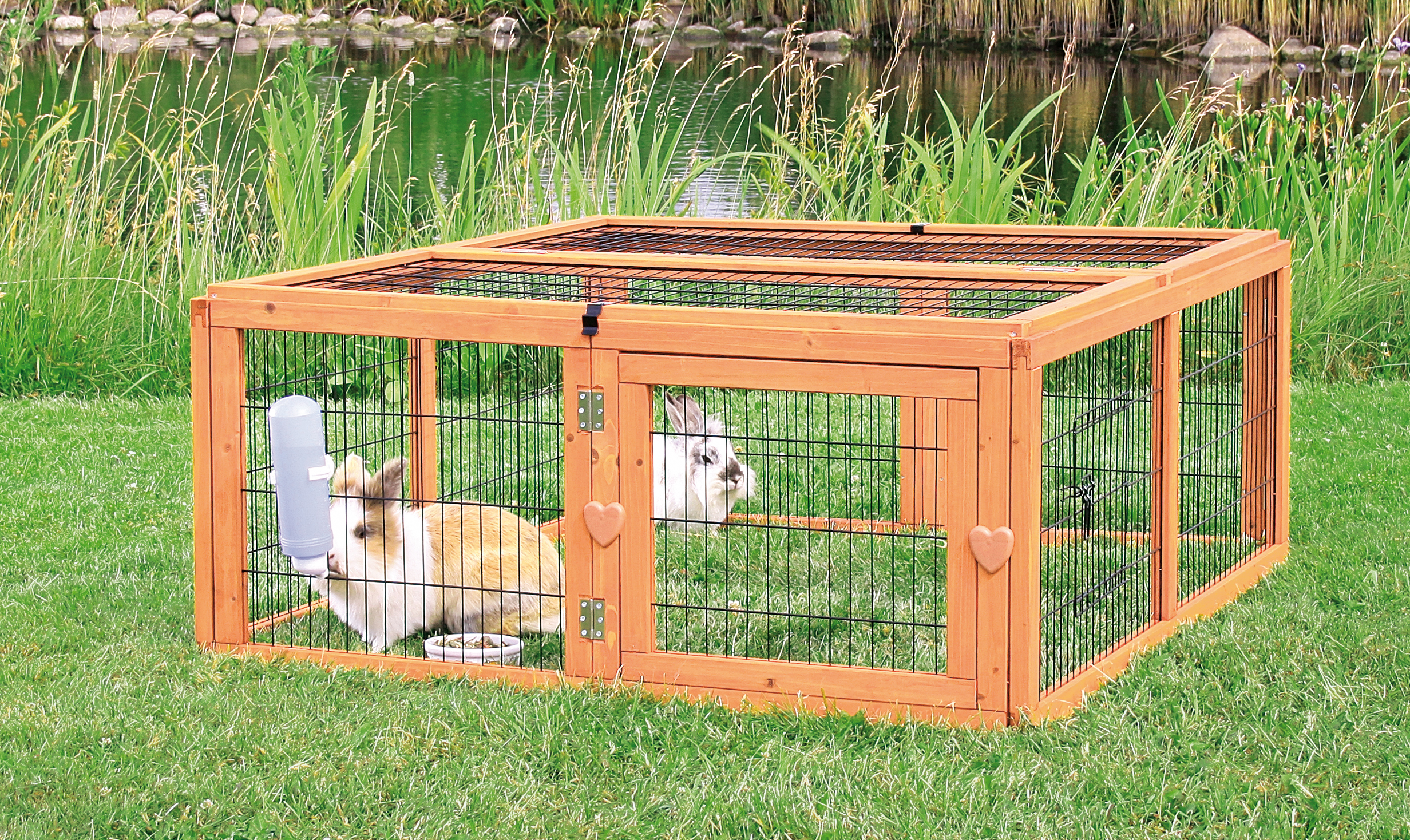 Give your small pets the best of both worlds—freedom and security—with the TRIXIE natura Enclosed Outdoor Run. Designed for rabbits, guinea pigs, and other small animals, this spacious wooden enclosure lets them safely explore the outdoors while you enjoy peace of mind. The sturdy glazed wood frame and metal mesh provide lasting weather protection, while the hinged top opens on both sides for easy access and cleaning. Use it as a standalone play yard or connect it to your TRIXIE natura hutch for even more room to roam. Fresh air, sunshine, and safe playtime—every bunny’s outdoor dream come true. The water bottle, bowl, or accessories in the pictures are not included.