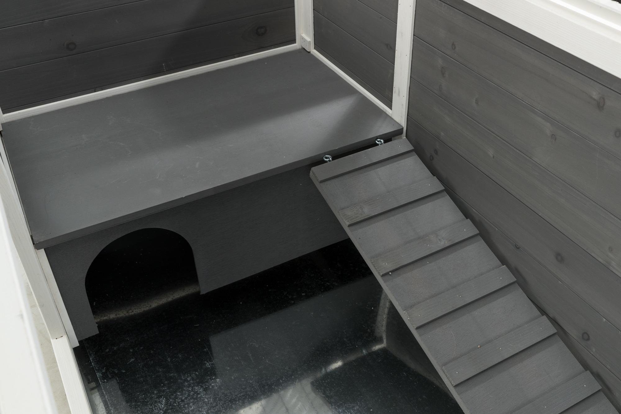 - Small side door can be used for free ranging rabbits