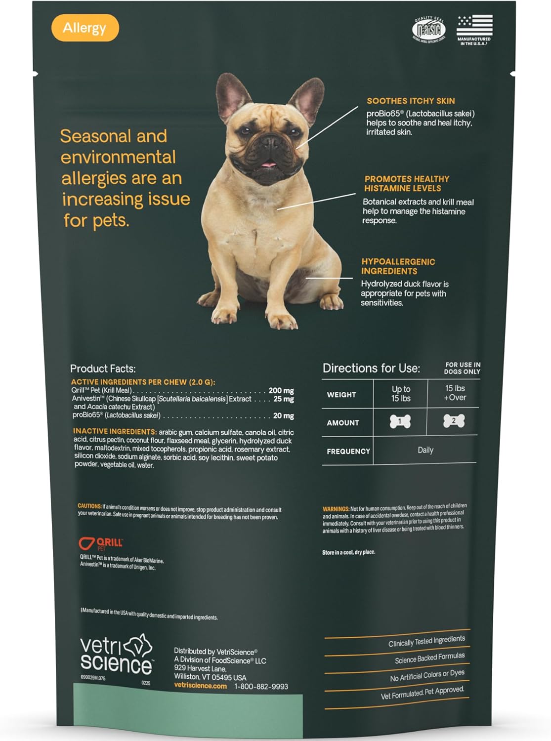 | Retail Title | VetriScience Allergy & Itch Support Duck Flavored Chews, Allergy Plus Skin & Immune Supplement for Dogs, 75 Count |
