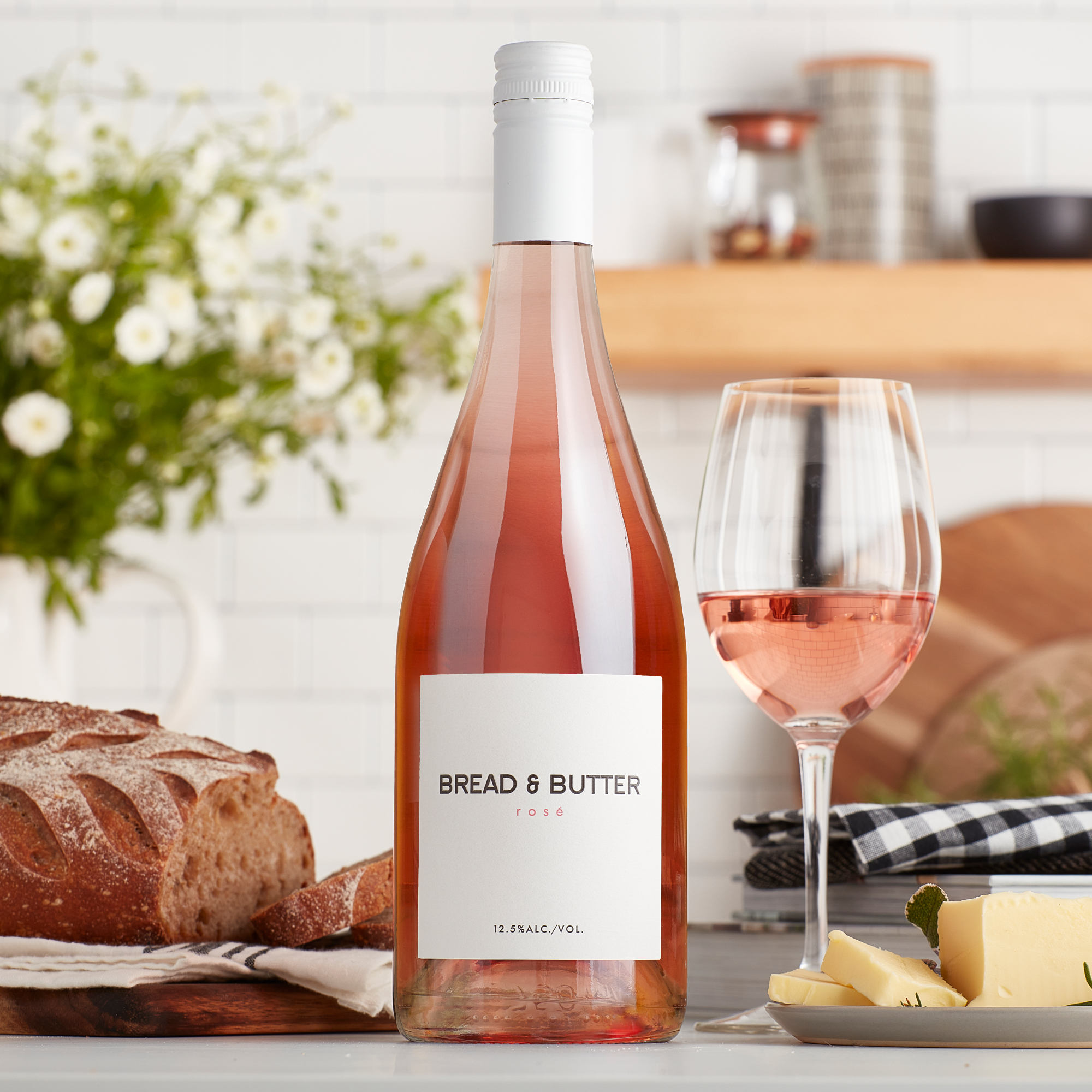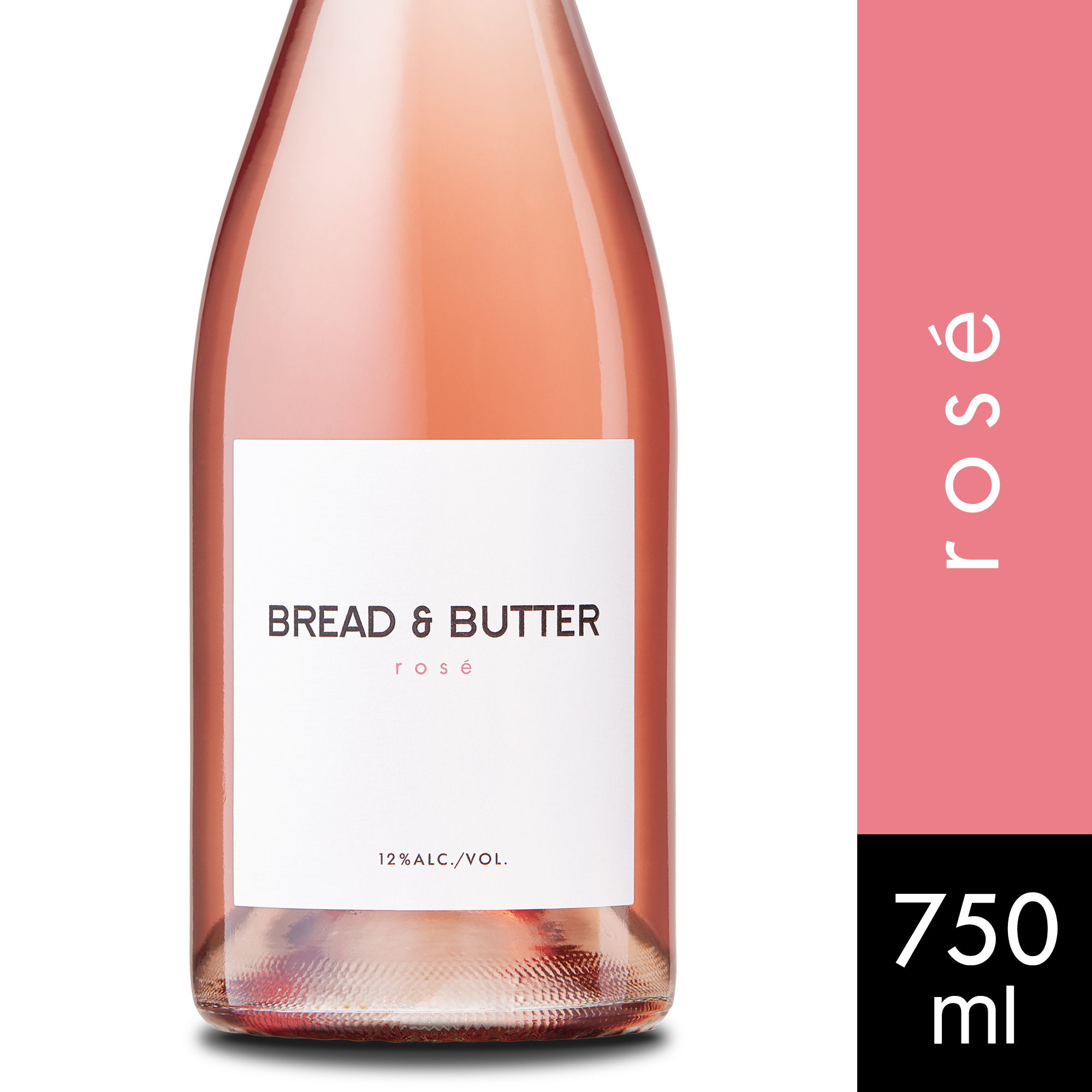 Product Short Description This California Rosé is bright, fresh, and juicy with notes of fresh red fruit and melon. Product Long Description At Bread & Butter, we believe good things shouldn’t be complicated. That’s why our wines are expertly made to be simply enjoyed. All you need to do is pour a glass, sit down, and don’t overthink it. This California Rosé is bright, fresh, and juicy. Refreshing with generous notes of fresh strawberry, melon and rose petals, juicy red fruit flavors are complemented by bright acidity and a rich, lively finish. Food Pairings (short) This wine goes well with prosciutto and brie grilled cheese, pasta salad and impromptu picnics in the park. Food Pairings (long) This wine goes well with prosciutto and brie grilled cheese, pasta salad and impromptu picnics in the park. Product Slogan Don’t forget, this wine is expressive, it says “pick me.” Don’t overthink it. Tasting Notes Refreshing with generous notes of fresh strawberry, melon and rose petals, juicy red fruit flavors are complemented by bright acidity and a rich, lively finish. Keywords WX BRANDS,Bottled in the US Varietal ROSE Appellation CALIFORNIA Alcohol % 12.5 Size 750 UOM ml Net Content 750 ml Unit Type Bottle Vintage 2021 Vintage Specific Yes Bottle Finish CORK Bottle Height (in) 11.612992 Bottle Diameter (in) 3.464566 Case Length (in) 14.5 Case Width (in) 11 Case Height (in) 12 Case Weight (lbs) 39 Units per Case 12 Cases Per Layer 11 Layers Per Pallet 5 RNDC Supplier Product Number 308436 DoorDash ID 00818051021611 DoorDash PDP Link https://www.doordash.com/products/bread-butter-rose-wine-bottle-california-750-ml/urpc_b68a2315-8032-4d49-869e-1e42f77d85b7 Instacart ID 19815586 Instacart PDP Link https://www.instacart.com/products/19815586 Kroger UPC 0081805102161 Kroger PDP Link https://www.kroger.com/p/bread-butter-rose/0081805102161 Target PDP Link https://www.target.com/p/-/A-82018235 TCIN 82018235 Total Wine & More SKU 232546750 Total Wine & More PDP Link https://www.totalwine.com/p/232546750 Uber Eats ID 818051021611 Uber Eats PDP Link https://www.ubereats.com/ca/product/b/b2432d09-cdc2-583a-8c45-186bc74c3e94