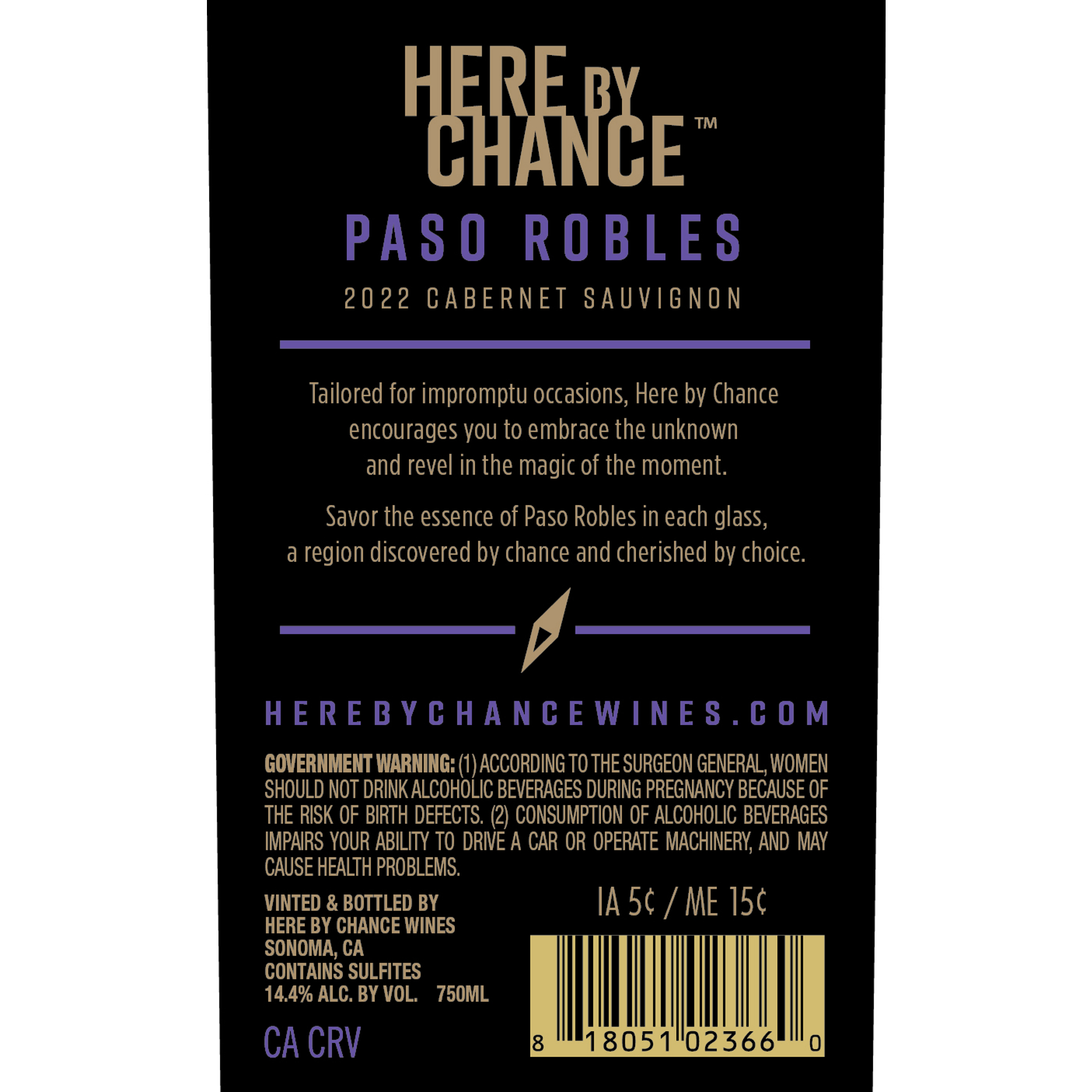 - Here by Chance is inspired by the accidental discovery of Paso Robles, and the cherished wine region it has become. Tailored for impromptu occasions, let our Cabernet Sauvignon ignite your spirit of adventure, and be your companion in spontaneity. The bold flavors of Paso Robles are crafted for conversation, connection, and realizing in this moment that you are right where you belong. We invite you to take the chance, say ‘yes’, and embrace the whims of fate. So, find your story...Here by Chance.