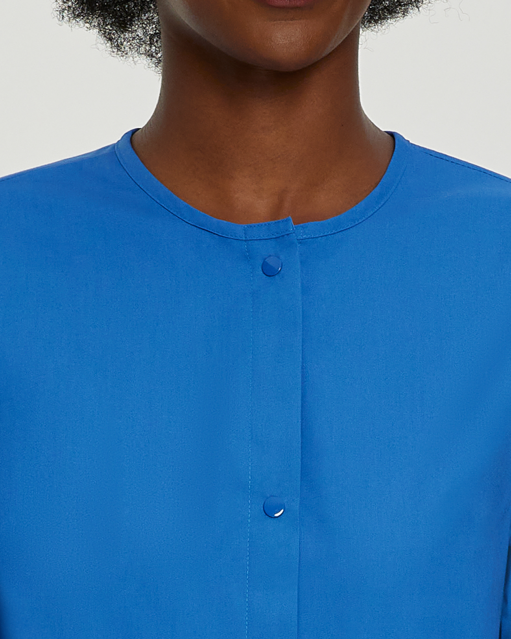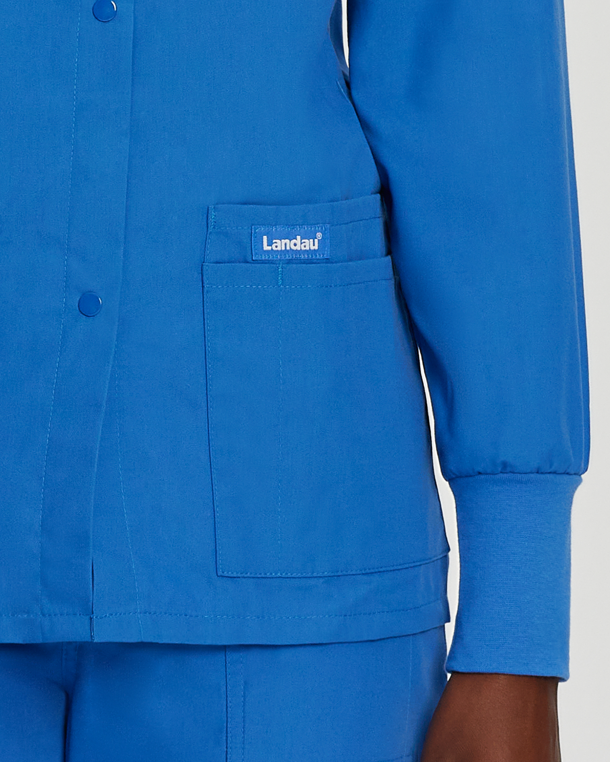 Available Sizes XS-5XL Fit Feature Classic Fit - Generously cut to provide optimal comfort and ease of movement Pocket Description 4 Pockets: 1 patch pocket with 1 accessory pocket, 1 double patch pocket with pen divider Top/Pant Detail Snap-front closure Product Features Knit cuffs stay in place and provide extra fluid protection Special Features Clean back for a roomier fit Tech Features Durable enough for commercial laundry Long Description We design quality medical scrubs and medical uniforms with universal appeal. Comfortable and functional, this fabric scrub jacket for women features a movement-friendly fit and snap-front silhouette made for effortless ensemble changes. Four spacious pockets including one cell phone pocket and built-in pencil/instrument divisions, ensure your medical essentials are always within easy reach. Whether it's Landau scrubs for men or scrubs for women, we're known for producing scrubs that work as hard as you do! Average Length 28 Average Sleeve Length 27.5 Material Feature A collection of classic scrubs that will never go out of style. Practical, durable, and with a timeless design that will work in any context, these garments are designed to deliver endless versatility, with sturdy construction and fade-resistant fabrics that help wearers look sharp and professional through even the longest of shifts. Fabric Content 65% Polyester/35% Cotton Fade Resistant Fade Resistant Care Instructions Machine wash cold with similar colors. Do not bleach. Tumble dry low. Cool iron if needed. Highly durable, industrial laundry approved.