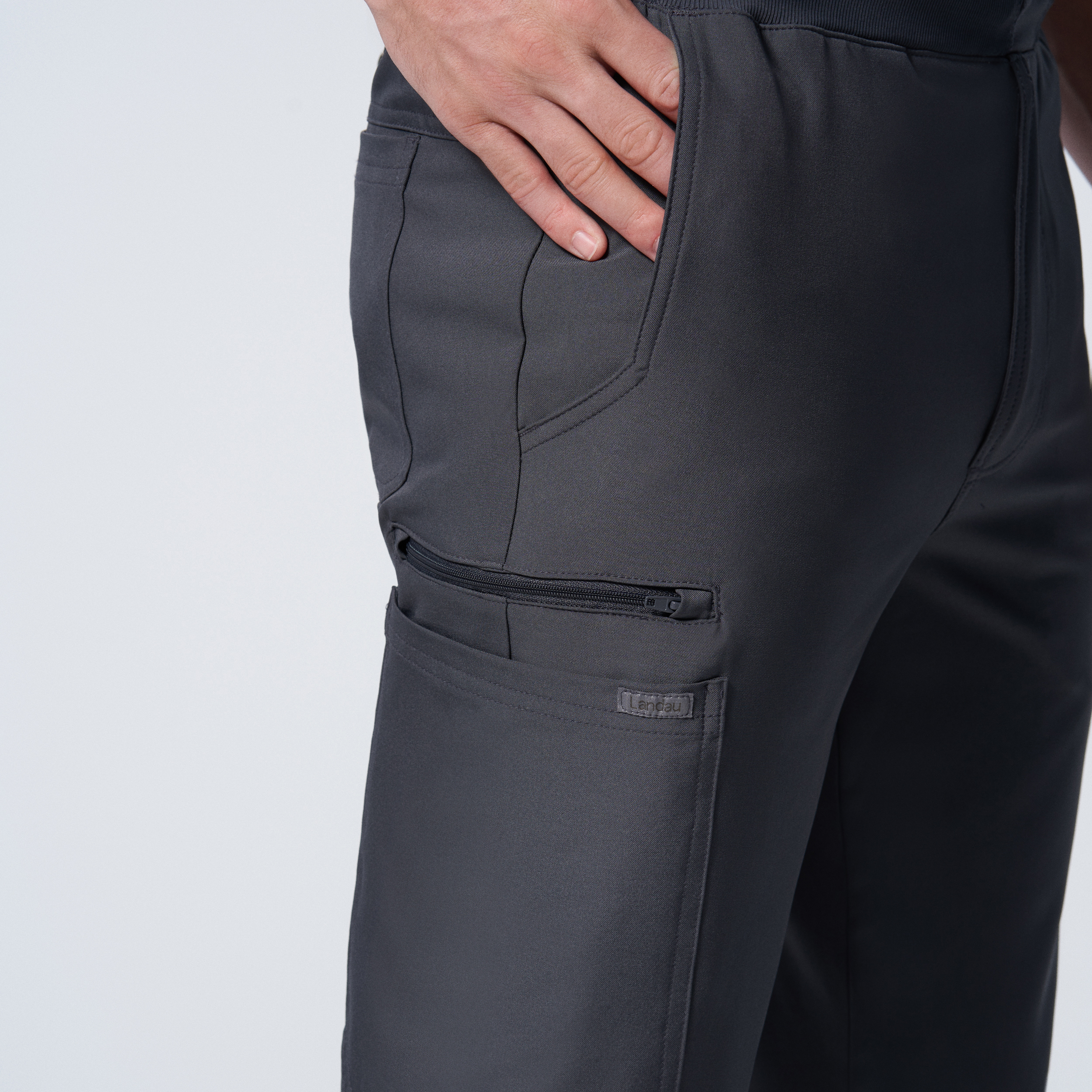 Available Sizes SS-S3X; Fashion Colors: SS-S2X Fit Feature Modern Fit - Tapered to flatter your shape without limiting movement Pocket Description 7 Pockets: 2 hip pockets, 2 cargo pockets, 1 zipper cargo pocket, 2 back pockets Top/Pant Detail Mid-rise triple-elastic waist with a drawstring for a secure fit Product Features Convenient zipper fly Special Features Rib-knit leg cuffs Long Description Men's fit jogger has a stretchy rib knit waistband with convertible drawstring and rib knit bottom cuffs. Has ample amount of pocket space with 2 Cargo pockets, 1 Zipper pocket,2 front pockets and 2 Back pockets for your everyday needs. Regular Inseam 27" Inseam Average Leg Opening 9.5 Material Feature Landau Forward is a range of performance-driven scrubs. Premium fabrics and activewear-inspired design deliver style, comfort, and adaptability. Garments made with CiCLO sustainable textile technology are kinder to our planet, helping to reduce the accumulation of plastic waste in landfills and plastic pollution in our oceans. Fabric Content 92% CiCLO Polyester/8% Spandex Twill STRETCH TYPE 4-Way Stretch WICKING Moisture Wicking Wrinkle Resistant Wrinkle Resistant Fade Resistant Fade Resistant Shape Retention Shape Retention Care Instructions Wash before wearing. Machine wash in cold water on gentle cycle. Do not bleach. Tumble dry low heat. Iron low heat.