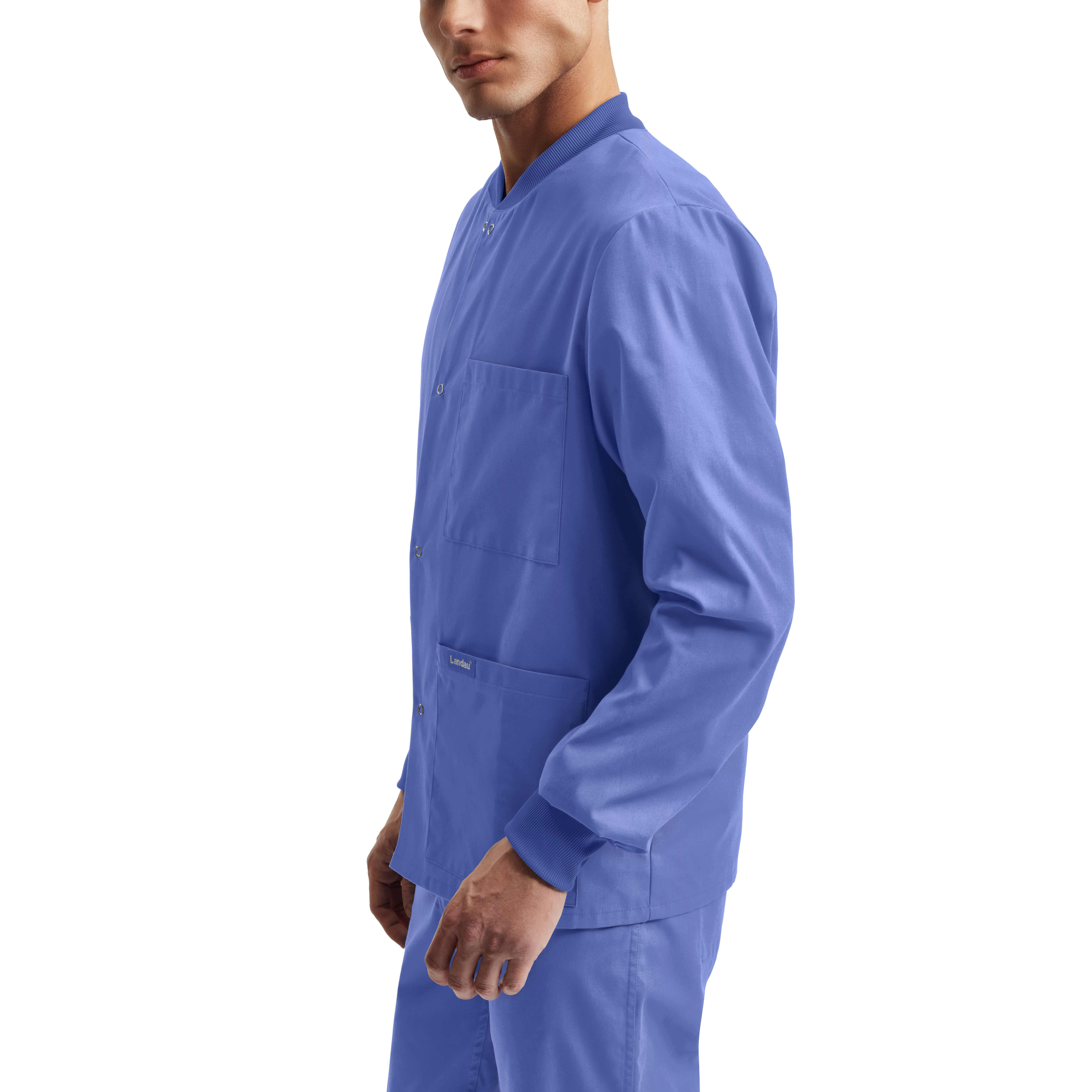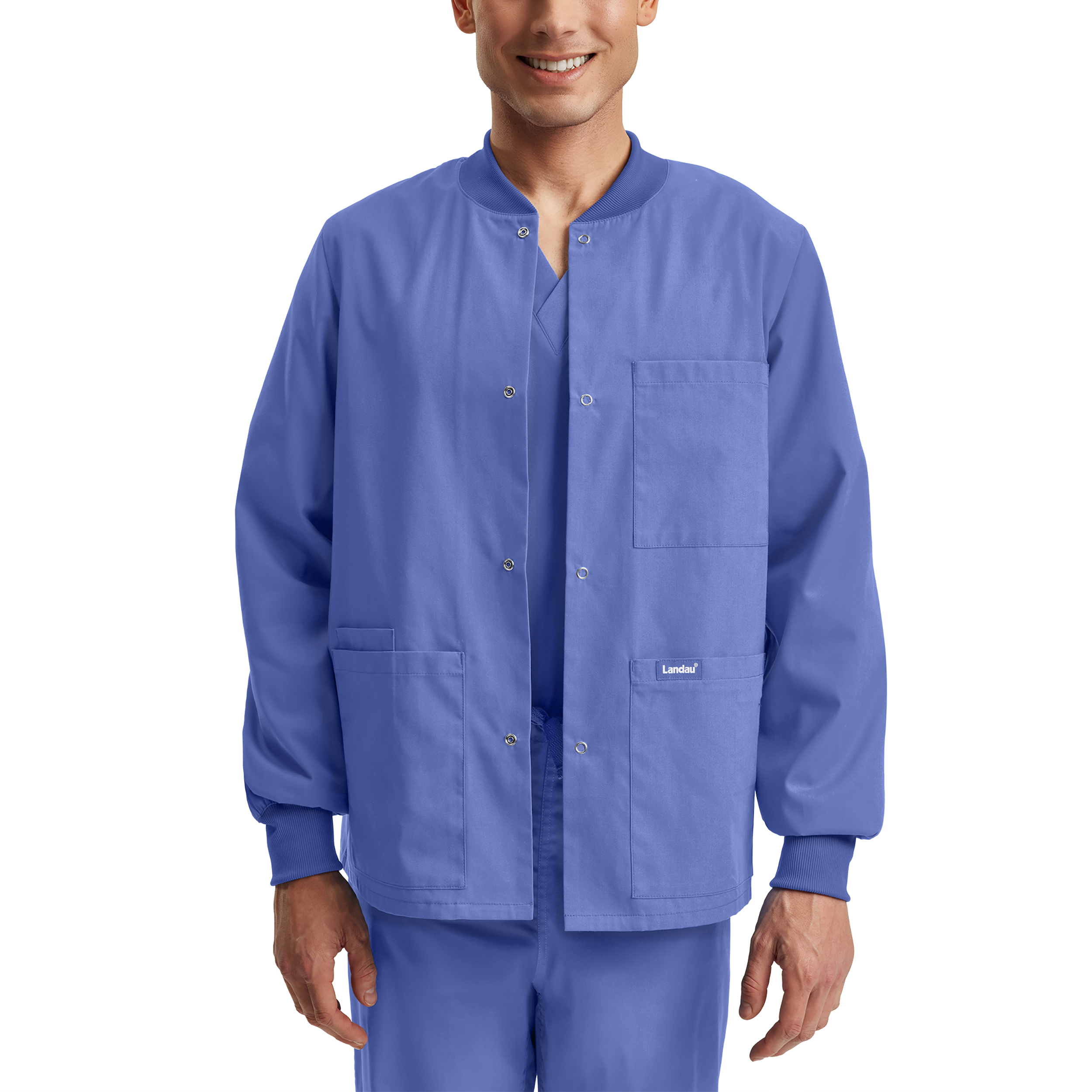 Available Sizes XS-5XL Fit Feature Classic Fit - Generously cut to provide optimal comfort and ease of movement; women may want to order one size smaller in this unisex piece Pocket Description 5 Pockets: 1 chest pocket, 2 patch pockets, 1 accessory pocket, 1 ear bud pocket, 1 hidden utility loop in wearer's left pocket Top/Pant Detail Knit collar Product Features Snap-front closure Special Features Knit cuffs stay in place and provide extra fluid protection Tech Features Women may want to order one size smaller Long Description This unisex snap front warm-up jacket, offers comfort and warmth in the workplace. It includes rib knit cuffs and collar for added coziness and provides ample space for accessories, featuring one chest pocket, two large pockets, and a bonus cell pocket to securely hold your items. Additionally, it comes with an internal utility loop and an earbud pocket for easy accessibility. Average Length 28 Average Sleeve Length 27.5 Material Feature A collection of classic scrubs that will never go out of style. Practical, durable, and with a timeless design that will work in any context, these garments are designed to deliver endless versatility, with sturdy construction and fade-resistant fabrics that help wearers look sharp and professional through even the longest of shifts. Fabric Content 65% Polyester/35% Cotton Fade Resistant Fade Resistant Care Instructions Machine wash cold with similar colors. Do not bleach. Tumble dry low. Cool iron if needed. Highly durable, industrial laundry approved.