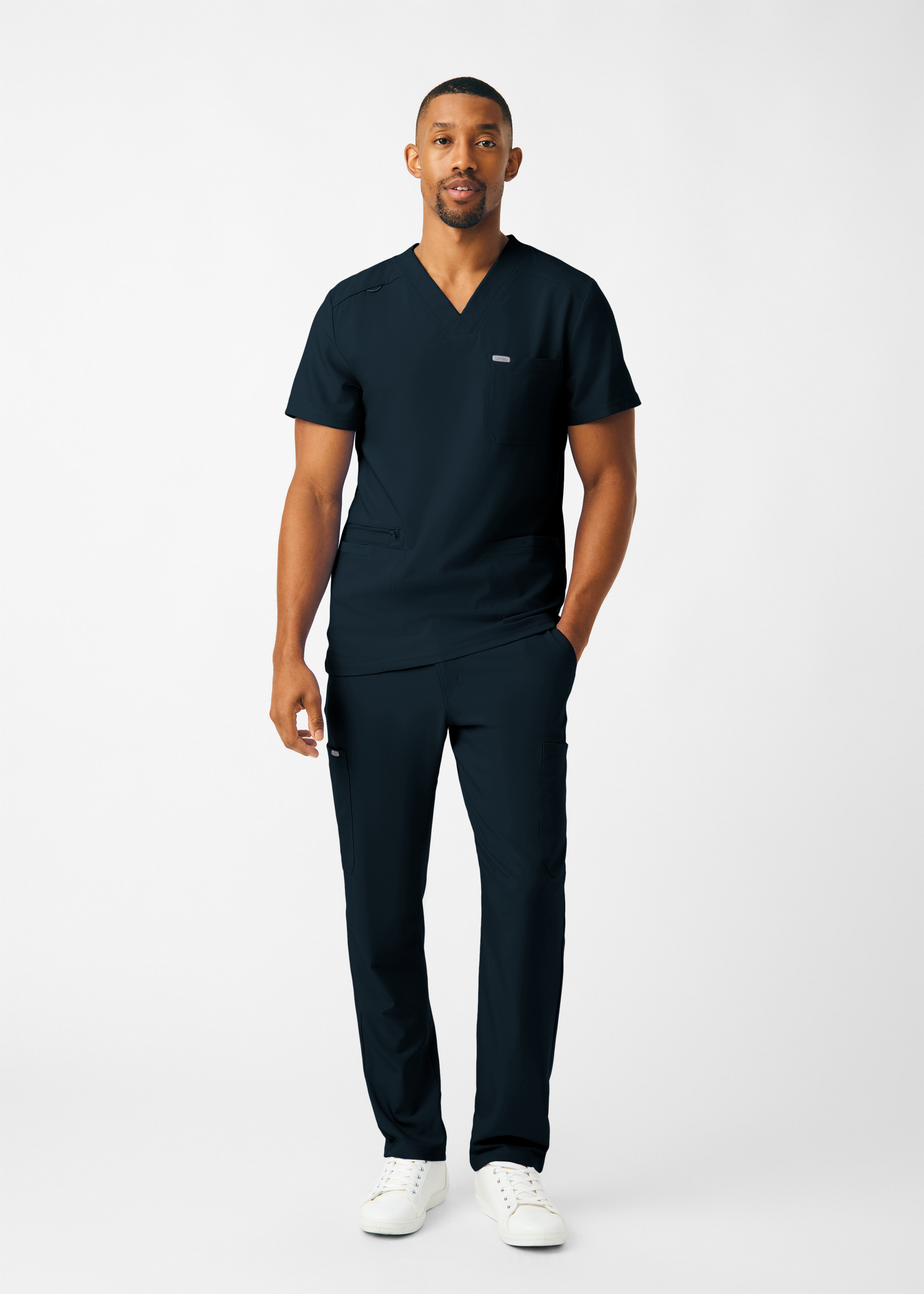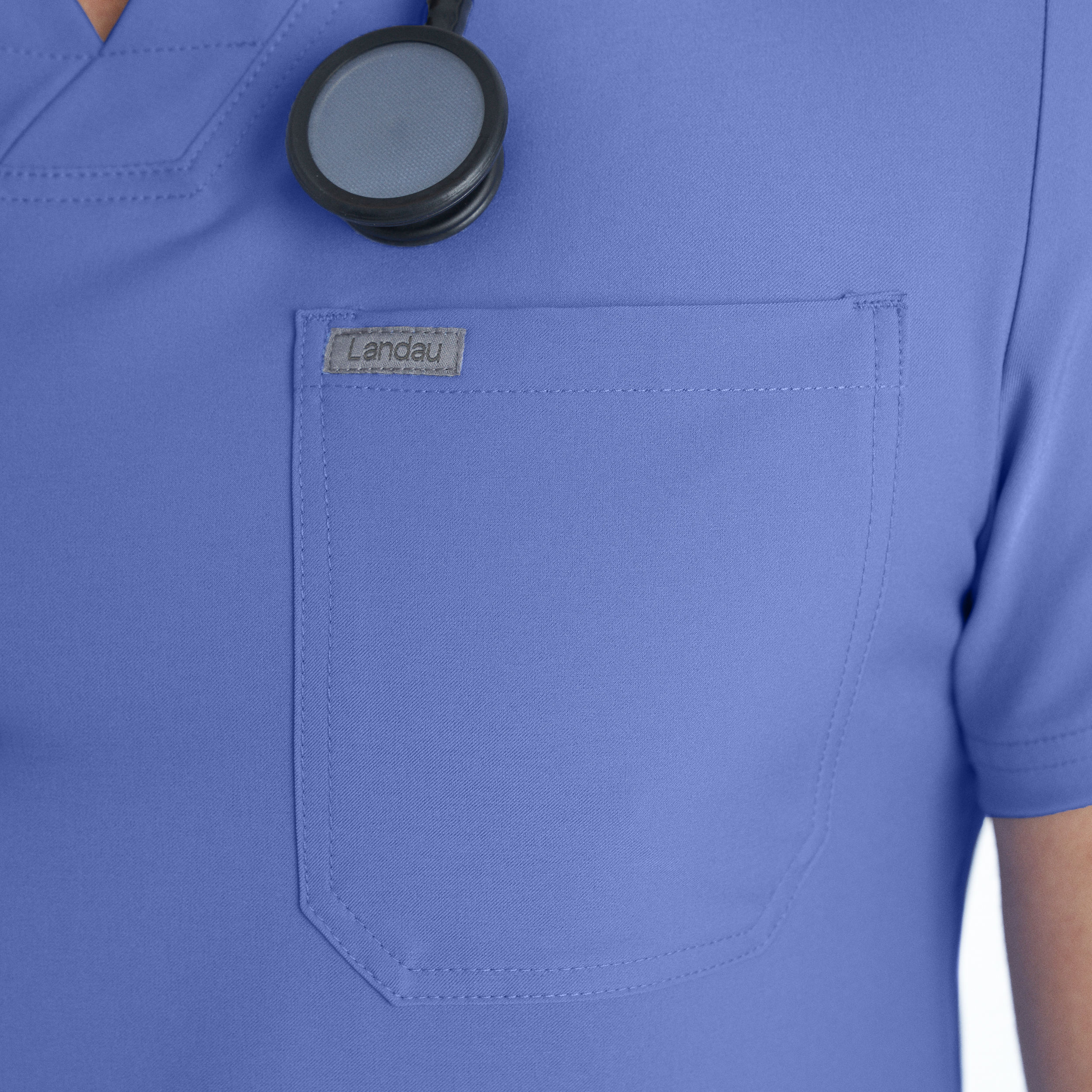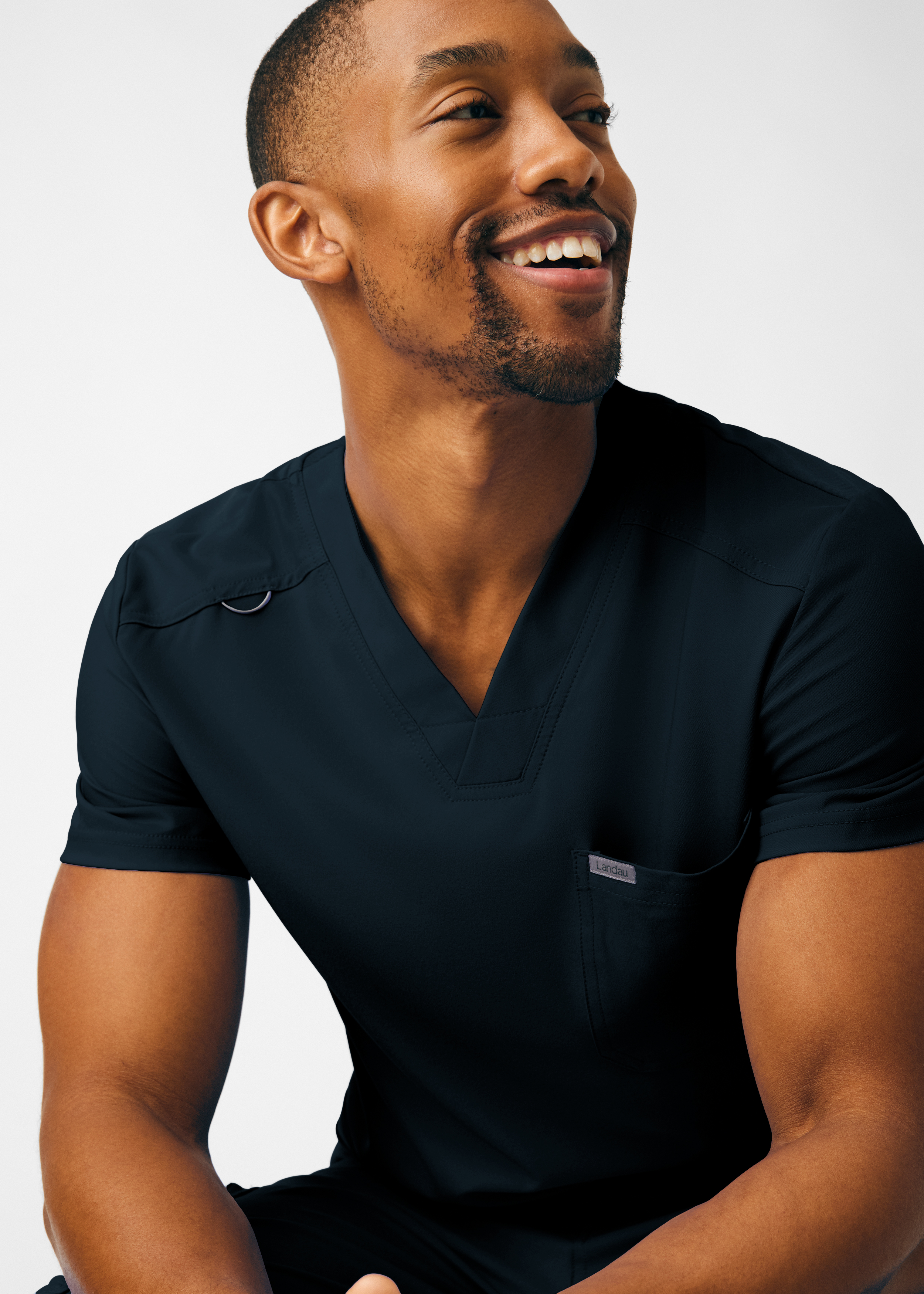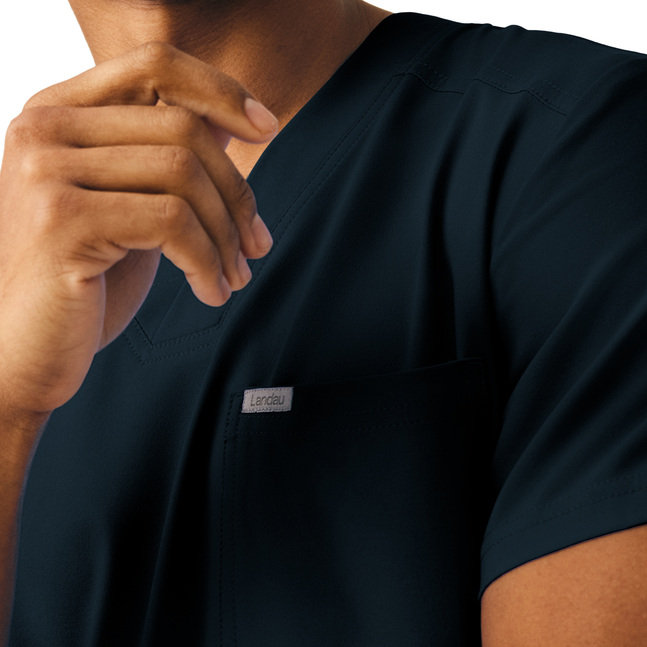 Available Sizes XS-5XL; Fashion Colors: XS-3XL Fit Feature Modern Fit - Tapered to flatter your shape without limiting movement Pocket Description 4 Pockets: 1 chest pocket, 2 patch pockets, 1 zipper accessory pocket Top/Pant Detail Rib-knit neckline and side panels for extra mobility Product Features Shoulder bungee loop Special Features Back yoke for a flattering shape Long Description Men's Fit, V-Neck top with awesome details such as back rib panels and back neck band to provide a sporty edge, comfort and sleek fit. With 2 pockets, 1 Chest pocket, an ID badge loop and a bonus zip pocket for extra storage. Average Length 28 Average Sleeve Length 8.5 Material Feature Landau Forward is a range of performance-driven scrubs. Premium fabrics and activewear-inspired design deliver style, comfort, and adaptability. Garments made with CiCLO sustainable textile technology are kinder to our planet, helping to reduce the accumulation of plastic waste in landfills and plastic pollution in our oceans. Fabric Content 92% CiCLO Polyester/8% Spandex Twill STRETCH TYPE 4-Way Stretch WICKING Moisture Wicking Wrinkle Resistant Wrinkle Resistant Fade Resistant Fade Resistant Shape Retention Shape Retention Care Instructions Wash before wearing. Machine wash in cold water on gentle cycle. Do not bleach. Tumble dry low heat. Iron low heat.