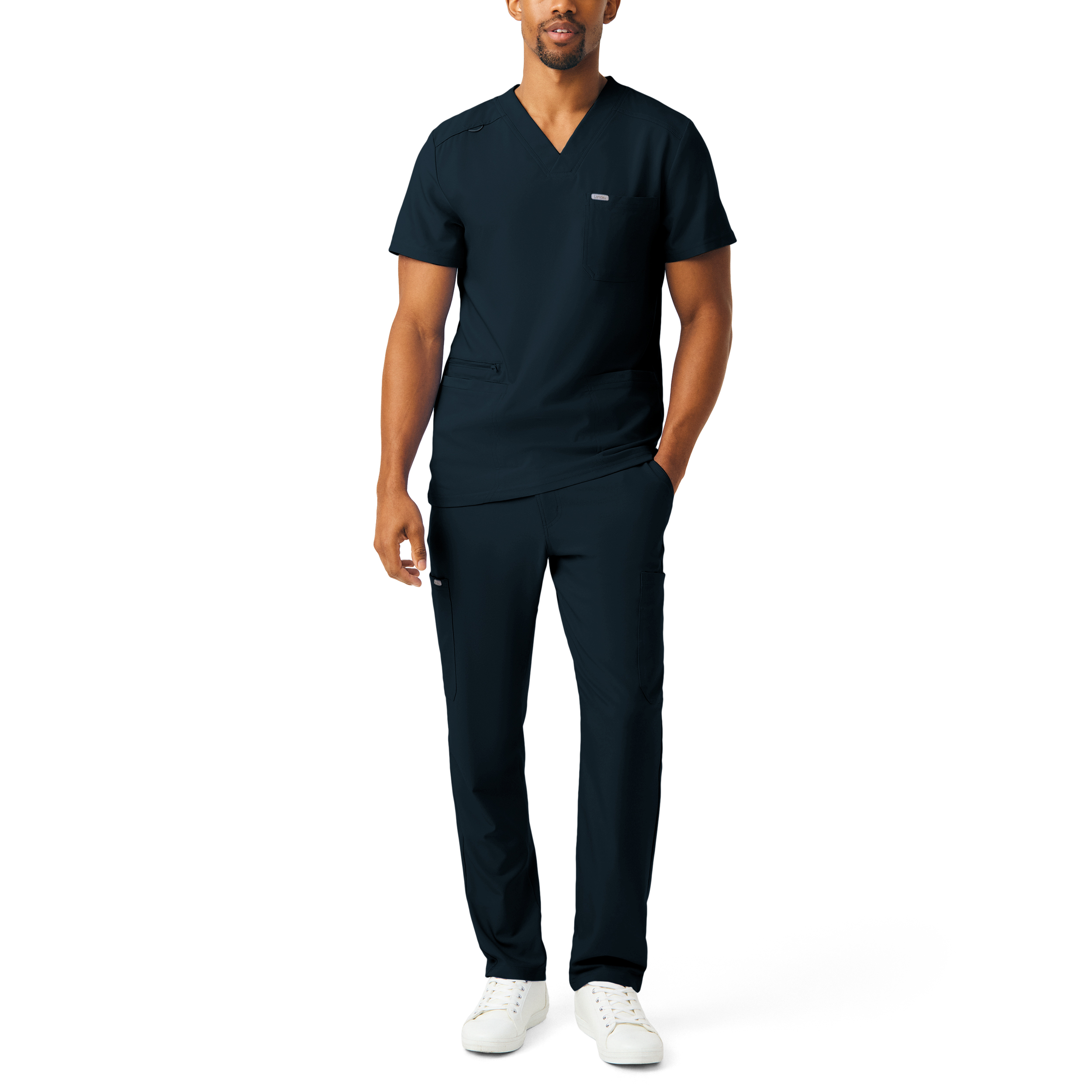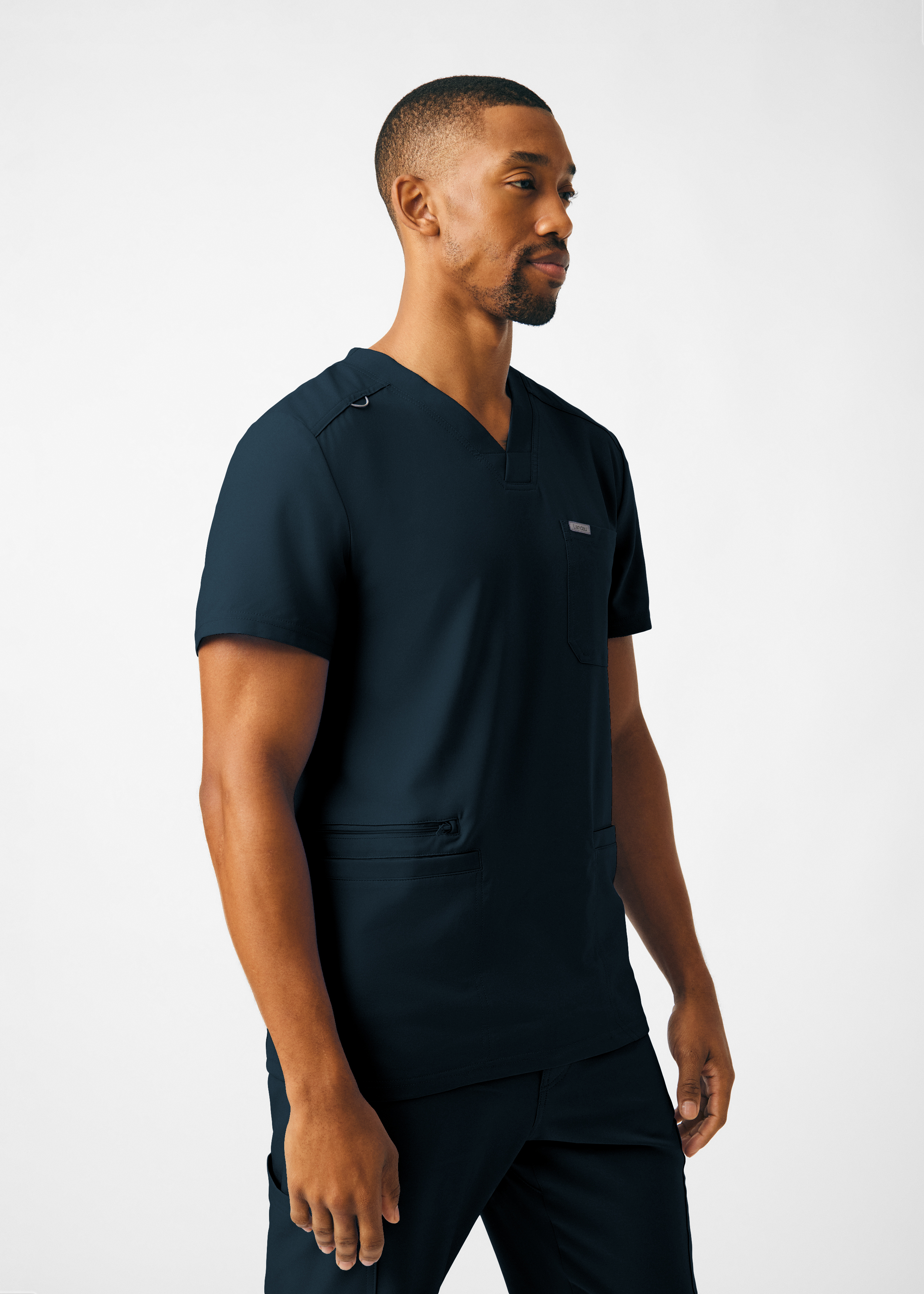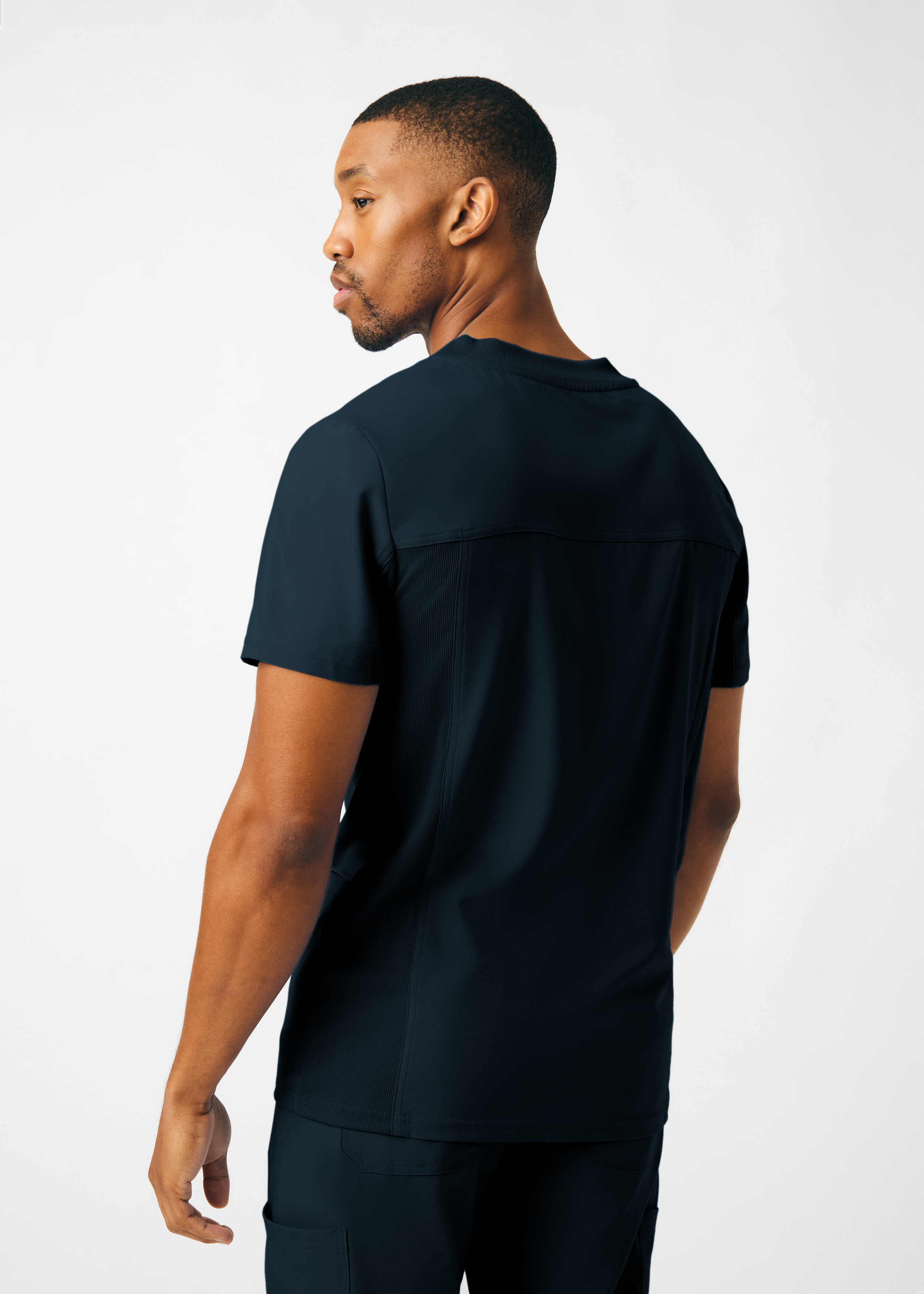 Available Sizes XS-5XL; Fashion Colors: XS-3XL Fit Feature Modern Fit - Tapered to flatter your shape without limiting movement Pocket Description 4 Pockets: 1 chest pocket, 2 patch pockets, 1 zipper accessory pocket Top/Pant Detail Rib-knit neckline and side panels for extra mobility Product Features Shoulder bungee loop Special Features Back yoke for a flattering shape Long Description Men's Fit, V-Neck top with awesome details such as back rib panels and back neck band to provide a sporty edge, comfort and sleek fit. With 2 pockets, 1 Chest pocket, an ID badge loop and a bonus zip pocket for extra storage. Average Length 28 Average Sleeve Length 8.5 Material Feature Landau Forward is a range of performance-driven scrubs. Premium fabrics and activewear-inspired design deliver style, comfort, and adaptability. Garments made with CiCLO sustainable textile technology are kinder to our planet, helping to reduce the accumulation of plastic waste in landfills and plastic pollution in our oceans. Fabric Content 92% CiCLO Polyester/8% Spandex Twill STRETCH TYPE 4-Way Stretch WICKING Moisture Wicking Wrinkle Resistant Wrinkle Resistant Fade Resistant Fade Resistant Shape Retention Shape Retention Care Instructions Wash before wearing. Machine wash in cold water on gentle cycle. Do not bleach. Tumble dry low heat. Iron low heat.