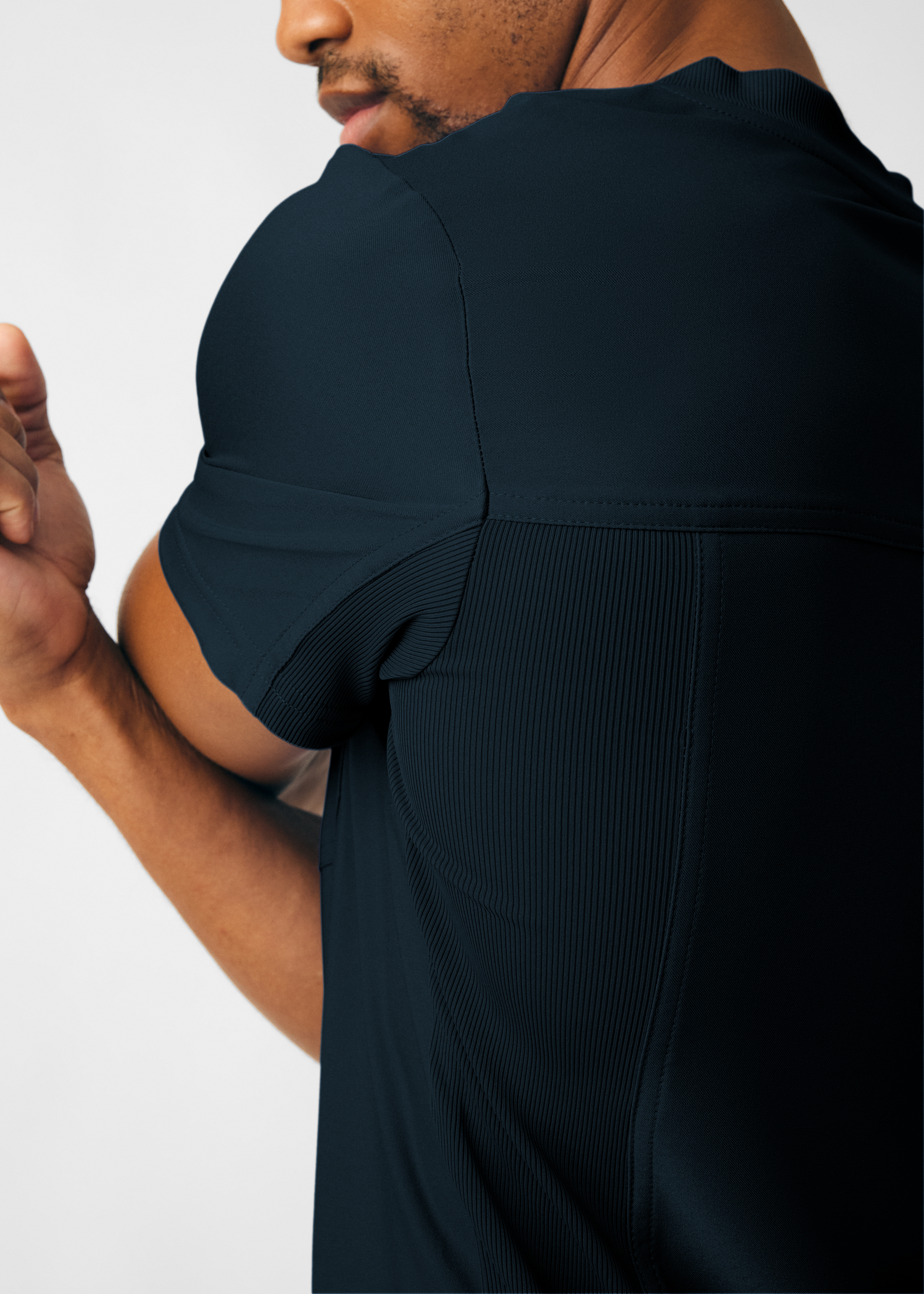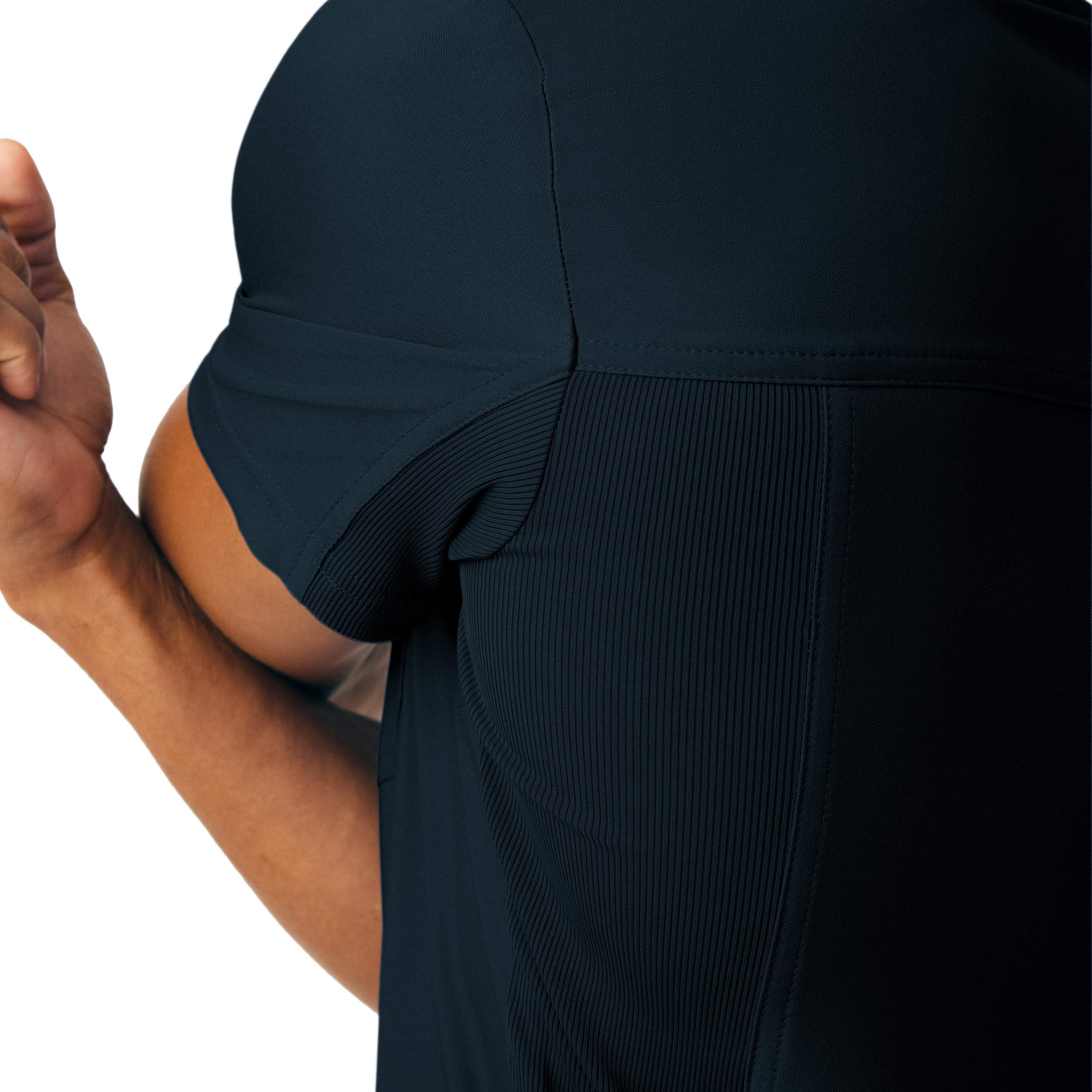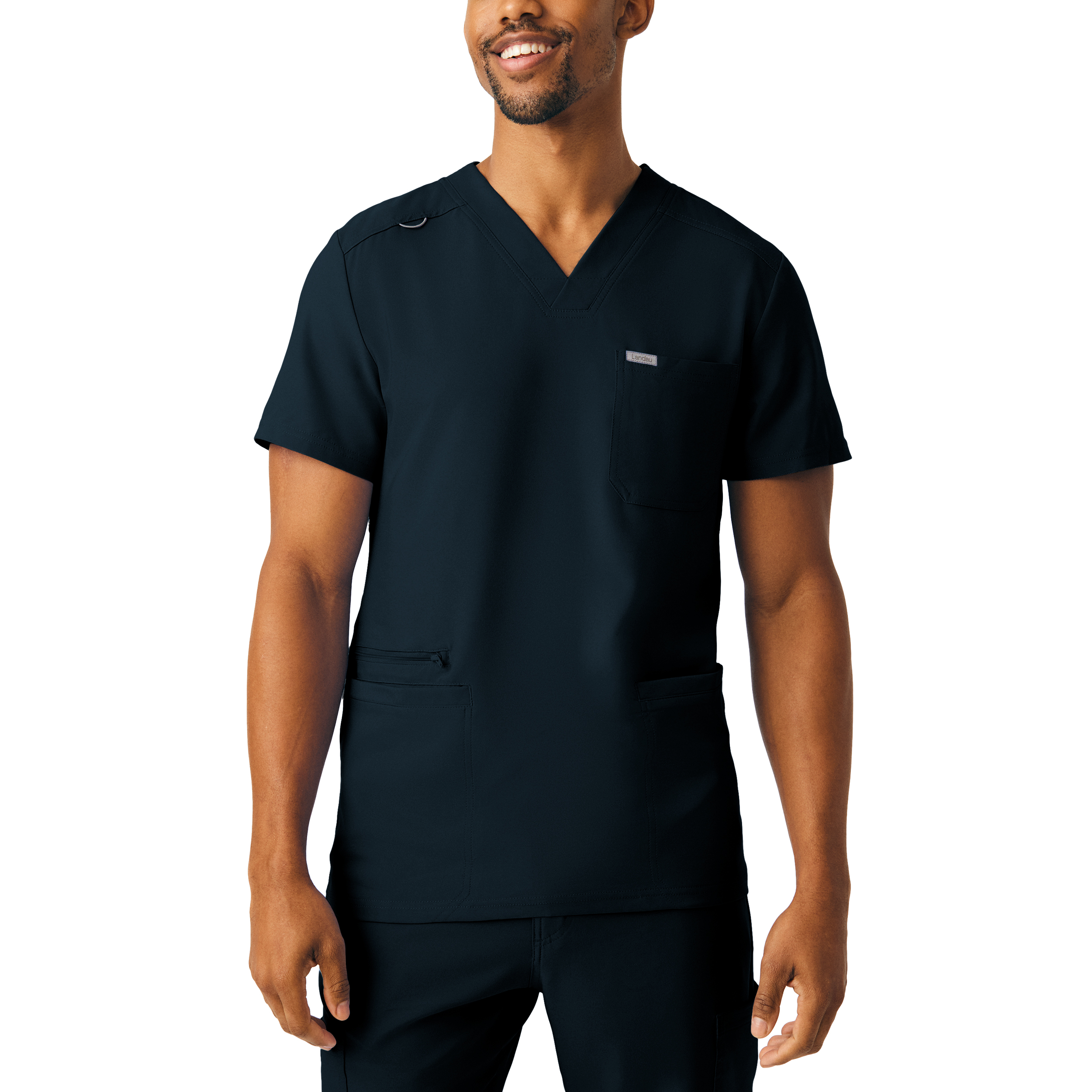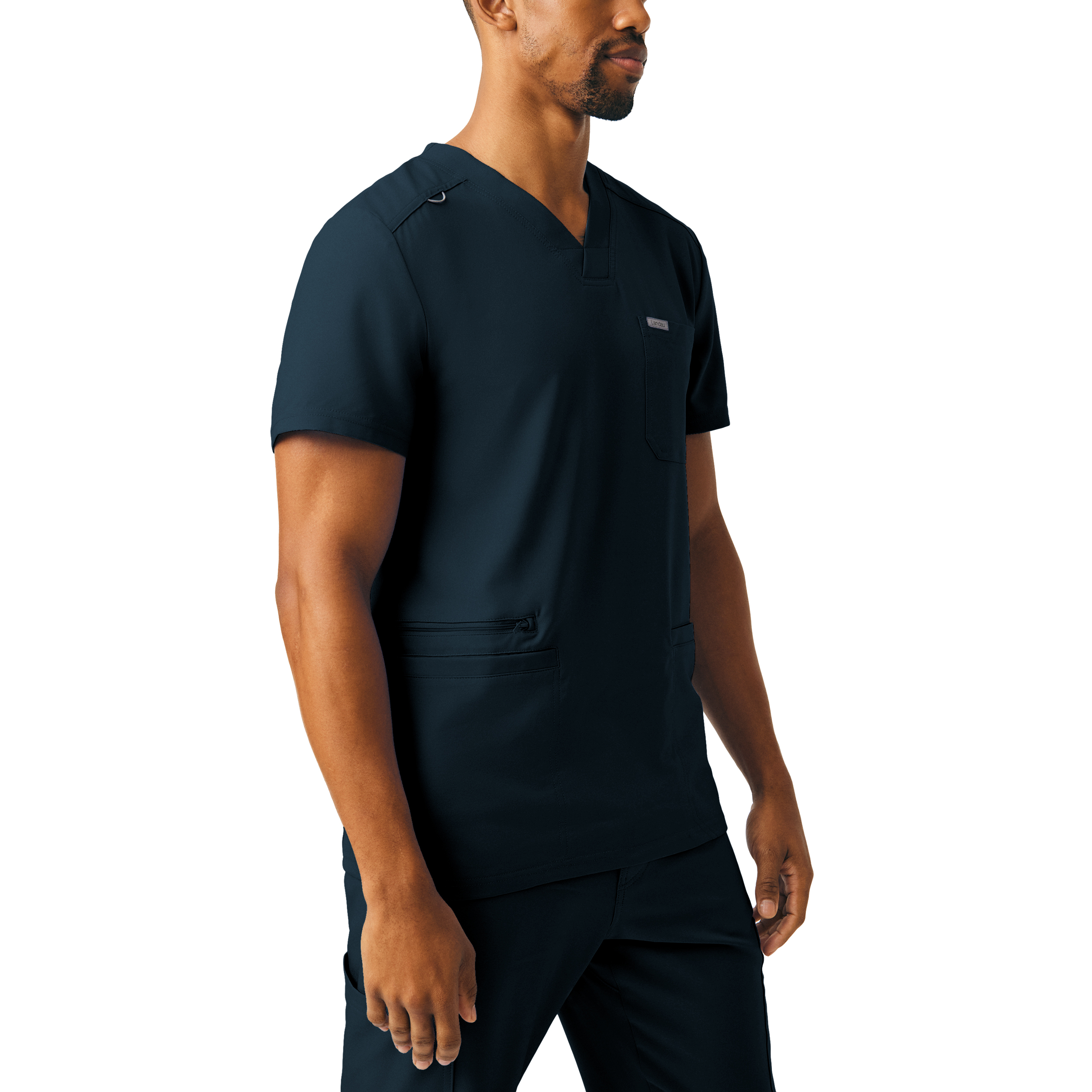 Available Sizes XS-5XL; Fashion Colors: XS-3XL Fit Feature Modern Fit - Tapered to flatter your shape without limiting movement Pocket Description 4 Pockets: 1 chest pocket, 2 patch pockets, 1 zipper accessory pocket Top/Pant Detail Rib-knit neckline and side panels for extra mobility Product Features Shoulder bungee loop Special Features Back yoke for a flattering shape Long Description Men's Fit, V-Neck top with awesome details such as back rib panels and back neck band to provide a sporty edge, comfort and sleek fit. With 2 pockets, 1 Chest pocket, an ID badge loop and a bonus zip pocket for extra storage. Average Length 28 Average Sleeve Length 8.5 Material Feature Landau Forward is a range of performance-driven scrubs. Premium fabrics and activewear-inspired design deliver style, comfort, and adaptability. Garments made with CiCLO sustainable textile technology are kinder to our planet, helping to reduce the accumulation of plastic waste in landfills and plastic pollution in our oceans. Fabric Content 92% CiCLO Polyester/8% Spandex Twill STRETCH TYPE 4-Way Stretch WICKING Moisture Wicking Wrinkle Resistant Wrinkle Resistant Fade Resistant Fade Resistant Shape Retention Shape Retention Care Instructions Wash before wearing. Machine wash in cold water on gentle cycle. Do not bleach. Tumble dry low heat. Iron low heat.