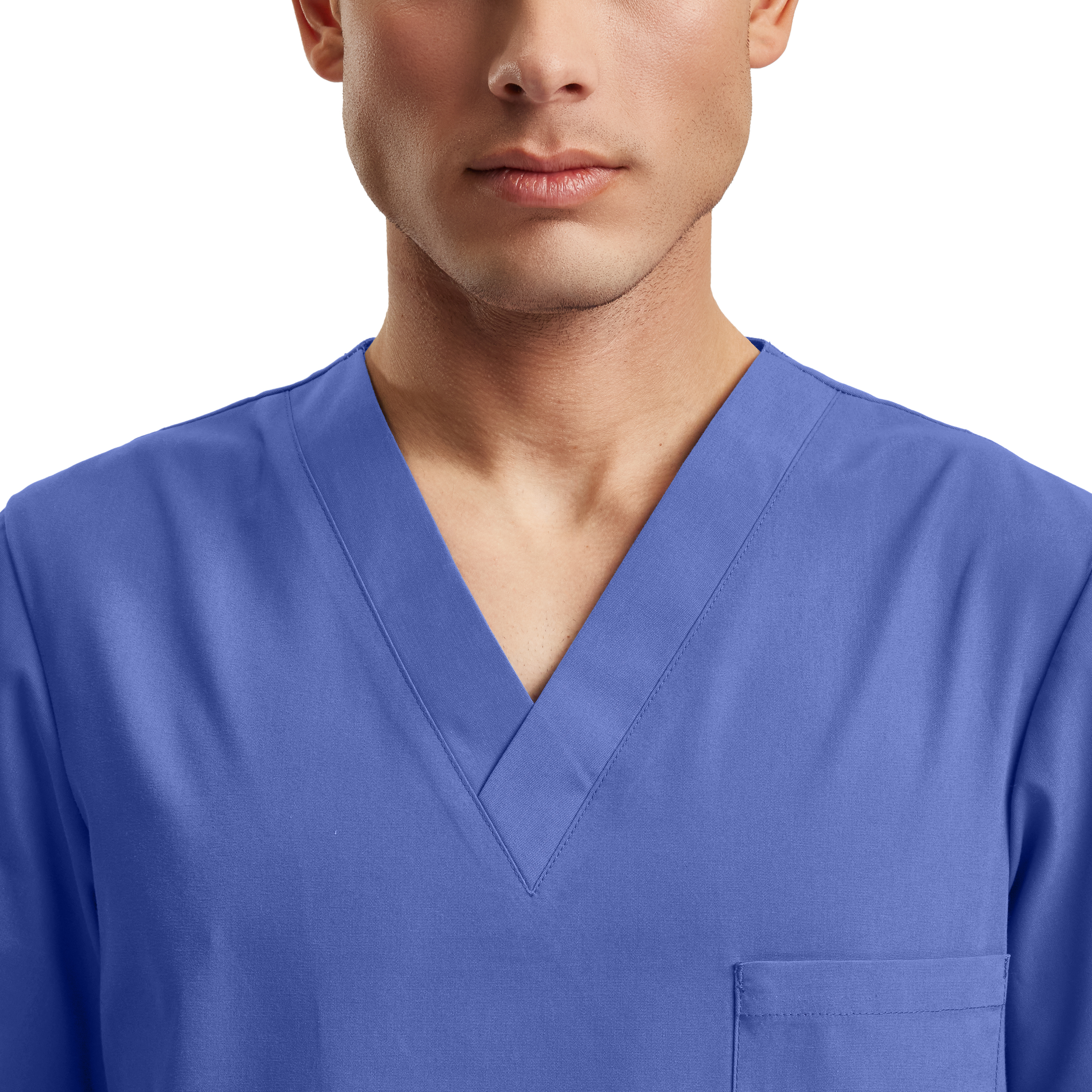 Available Sizes XS-5XL Fit Feature Classic Fit - Generously cut to provide optimal comfort and ease of movement; women may want to order one size smaller in this unisex piece Pocket Description 3 Pockets: 1 chest pocket, 2 patch pockets Top/Pant Detail Side vents for extra ease of movement Product Features Women may want to order one size smaller Long Description This unisex v-neck top features one chest pocket and two lower patch pockets, ensuring your items are easily accessible and securely stored. Side vents are incorporated for enhanced mobility and comfort. Average Length 28 Average Sleeve Length 8.5 Material Feature A collection of classic scrubs that will never go out of style. Practical, durable, and with a timeless design that will work in any context, these garments are designed to deliver endless versatility, with sturdy construction and fade-resistant fabrics that help wearers look sharp and professional through even the longest of shifts. Fabric Content 65% Polyester/35% Cotton Fade Resistant Fade Resistant Care Instructions Machine wash cold with similar colors. Do not bleach. Tumble dry low. Cool iron if needed. Highly durable, industrial laundry approved.