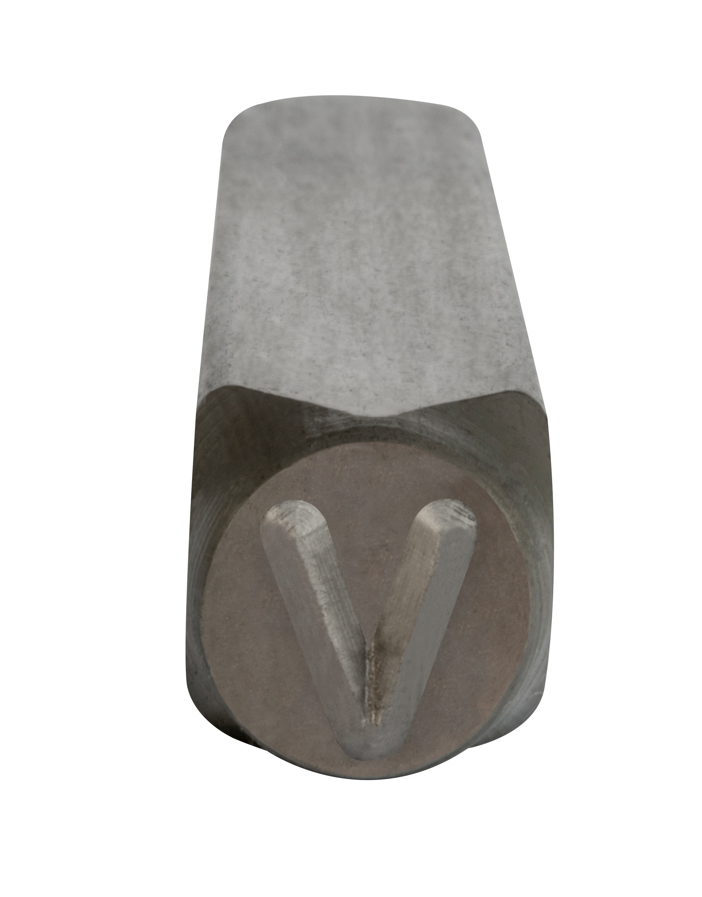 Product ID 20350V Product Name Stamp Sort-3/8" Standard V Product Copy CH Hanson offers a set of Standard Letter stamps, crafted for hand-held, hammer-struck marking. The standard grade stamps are recommended for medium to light duty marking. Each shank is tempered for an extra dose of safety. Product Features Single Stamp for occasional use, hand held marking. Works on wood, leather, aluminum, brass, sheet metal, cold roll steel. Crowned striking surface ensures full force to the center of the stamp & textured shank provides firm easy grip. Make precise and refined imprints. Achieve optimal performance and durability. Proudly made in the USA. Country of Origin United States of America Brand C.H. Hanson Stock UOM Each