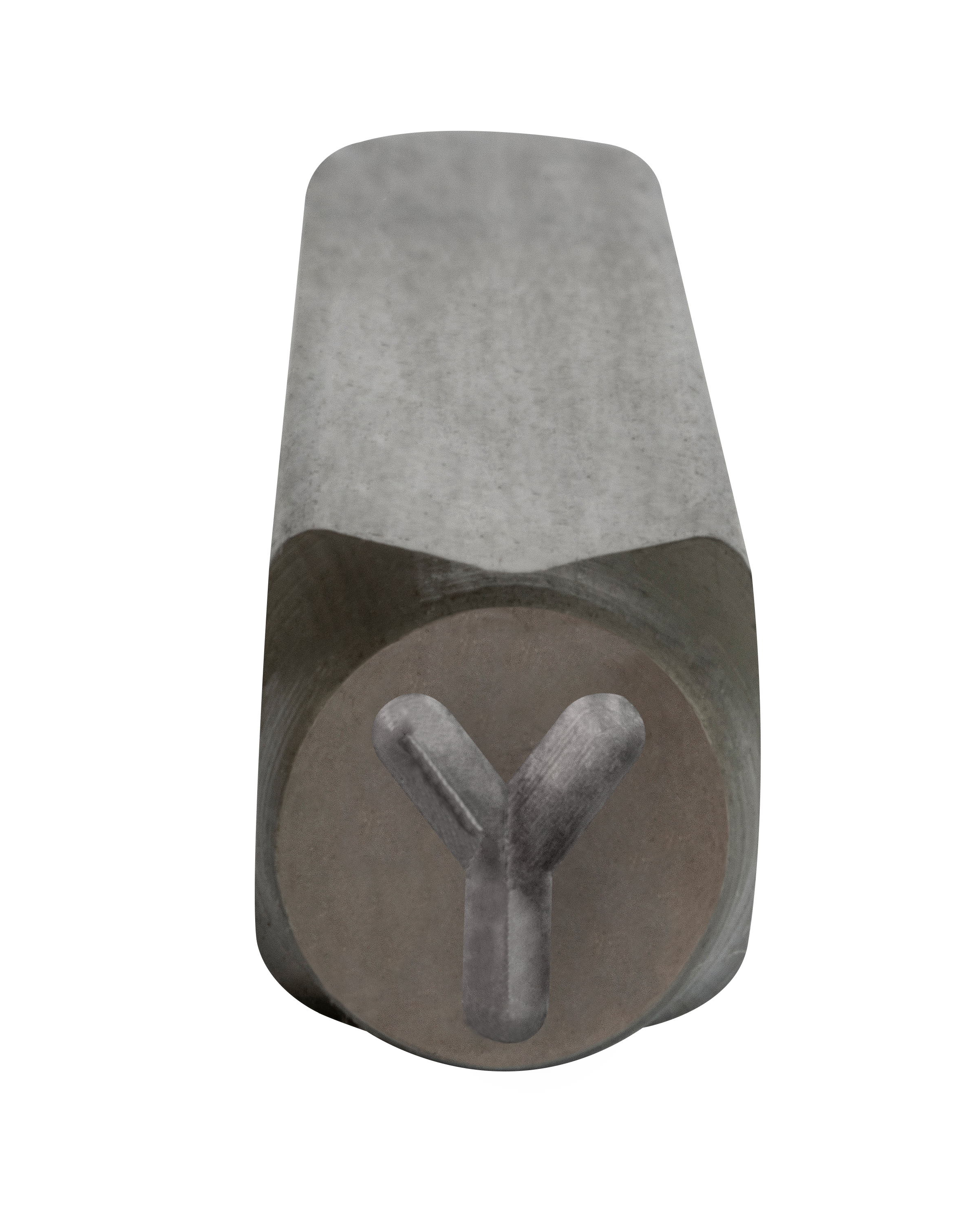 Product ID 20851Y Product Name Stamp Sort-1/8" Heavy Duty Y Product Copy CH Hanson offers a set of Heavy Duty Letter stamps, crafted for hand-held, hammer-struck marking. The "Heavy Duty" stamps are recommended for moderate industrial applications. The crowned striking surface ensures full force to the center. Each shank is tempered for an extra dose of safety, and the oversized shank delivers more consistent stamp control. This set consists of 27 pieces, with letters A through Z and an ampersand (&). Product Features Single stamps for moderate industrial use). 1/8 in characters.Tempered shanks for extra safety.Crowned striking surface ensures full force to the center of the stamp & textured shank provides firm easy grip.Proudly made in the USA. Country of Origin United States of America Brand C.H. Hanson Stock UOM Each