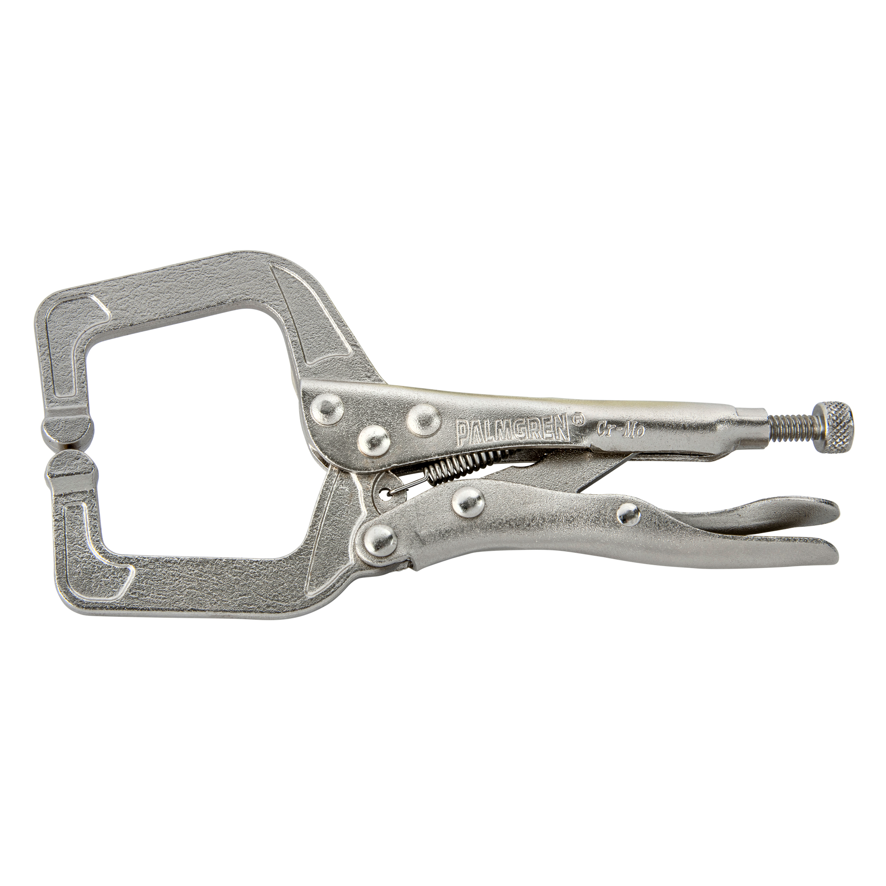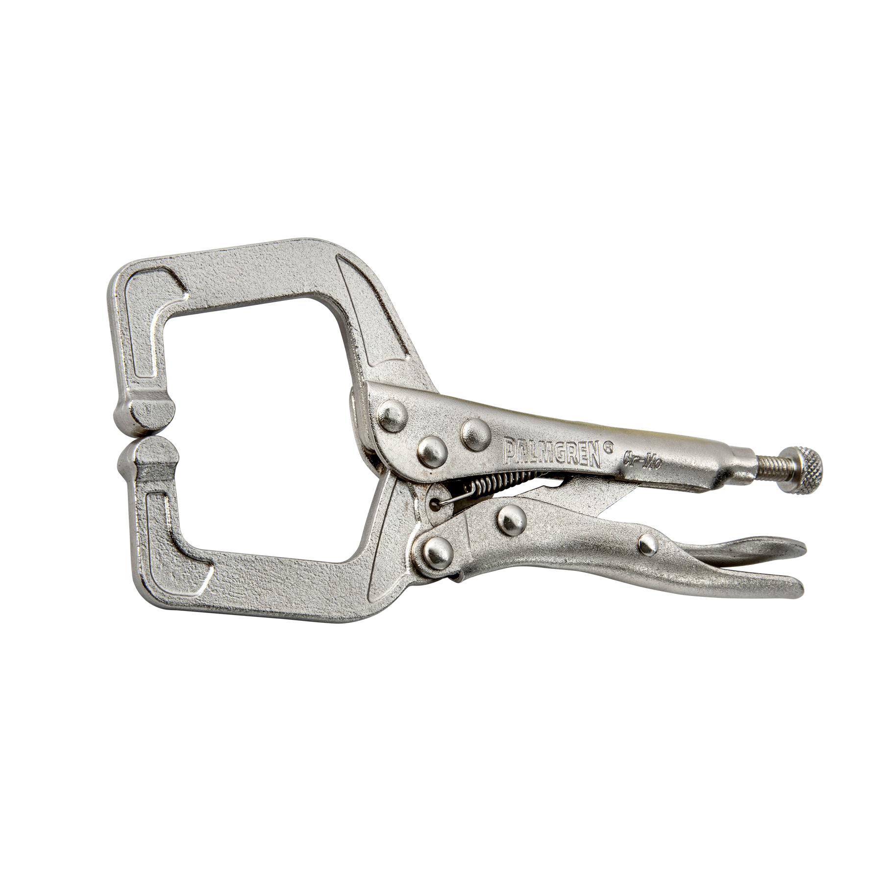 Product ID 70600 Product Name Locking C-Clamp-6" UPC 726896706009 GTIN 10726896706006 Product Copy Palmgren’s locking pliers are designed for faster tool setup and more locking force. They help leave hands free when clamping, helping to eliminate repetitive squeezing action and general hand fatigue when manipulating. The convenient geometry of the handles allows for easier use and more hand force for increased clamping power. Product Features Drop forged and hardened jaws. Rugged teeth profile for durability and toughness. Spring loaded release lever – releases easily even when tools are firmly locked. Large diameter rivets provide secure joints delivering durability & robust pliers. Durable nickel plate finish. Locking nut holds adjustment during repetitive jobs. Adjustable lead screws comes with 1/4" hex key drive - This allows for easy pressure adjustment, draws materials together and provides a more controlled release. Lifetime warranty Category Workhold-Clamps & Vises Sub Category Manual Locking Pliers and Clamps Country of Origin Taiwan Stock UOM Each Product Height (inches) 8.5 Product Length (inches) 0.8 Product Width (inches) 4.6 Product Weight (lbs) 0.595 Master Pack Height (inches) 6 Master Pack Length (inches) 26.75 Master Pack Width (inches) 9.75 Master Pack Weight (lbs) 20.326 Inner Pack Height (inches) 5.000 Inner Pack Length (inches) 9.125 Inner Pack Width (inches) 5.250 Inner Pack Weight (lbs) 3.798 Inner Pack Qty. 10 Application Clamp to hold two things together, such as wood during carpentry work Jaw Opening 2" Jaw Width 2-3/8" C-Clamp Material Extruded Steel Clamps Type Locking Pliers Max Open Capacity (in.) 6" Warranty Limited lifetime warranty