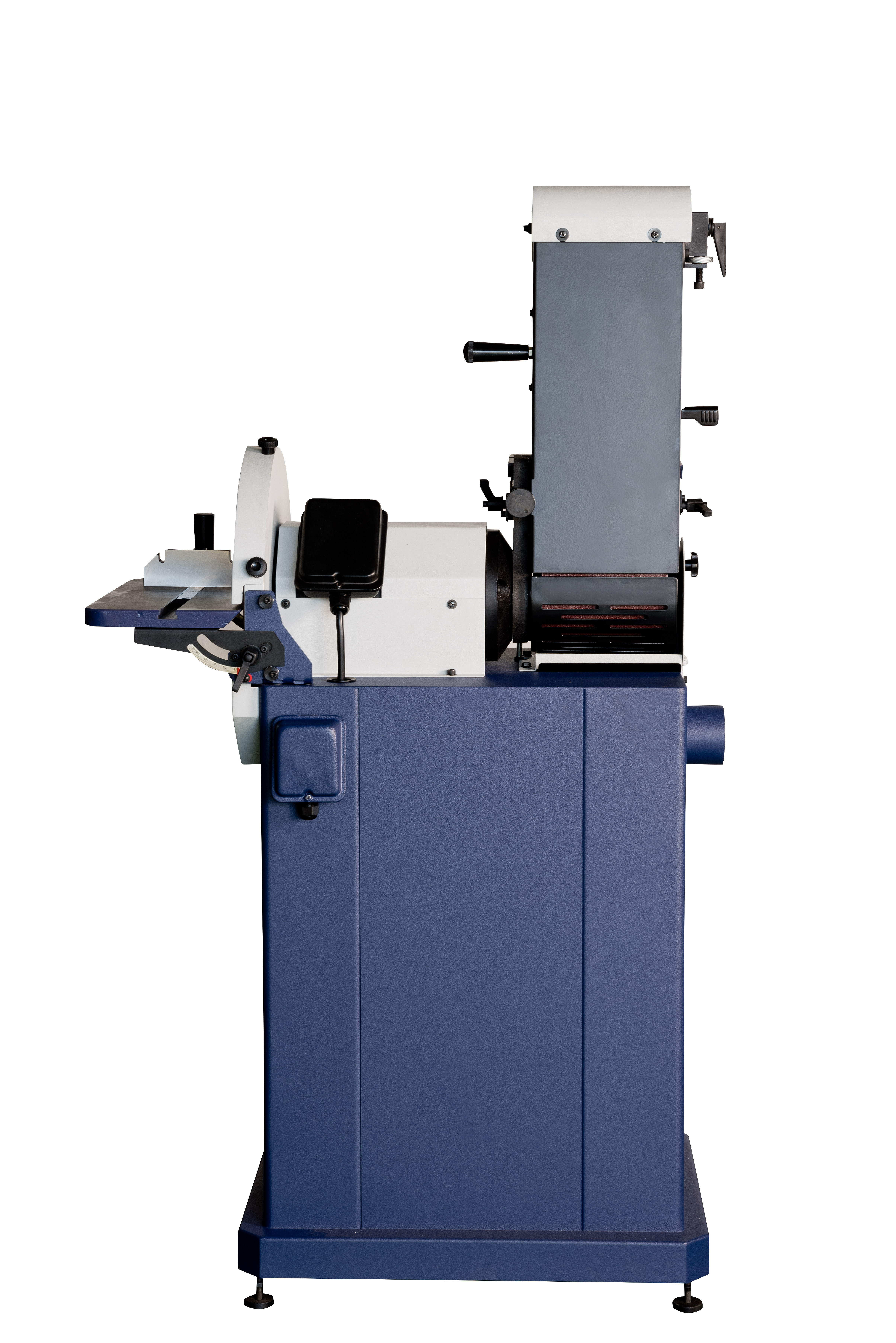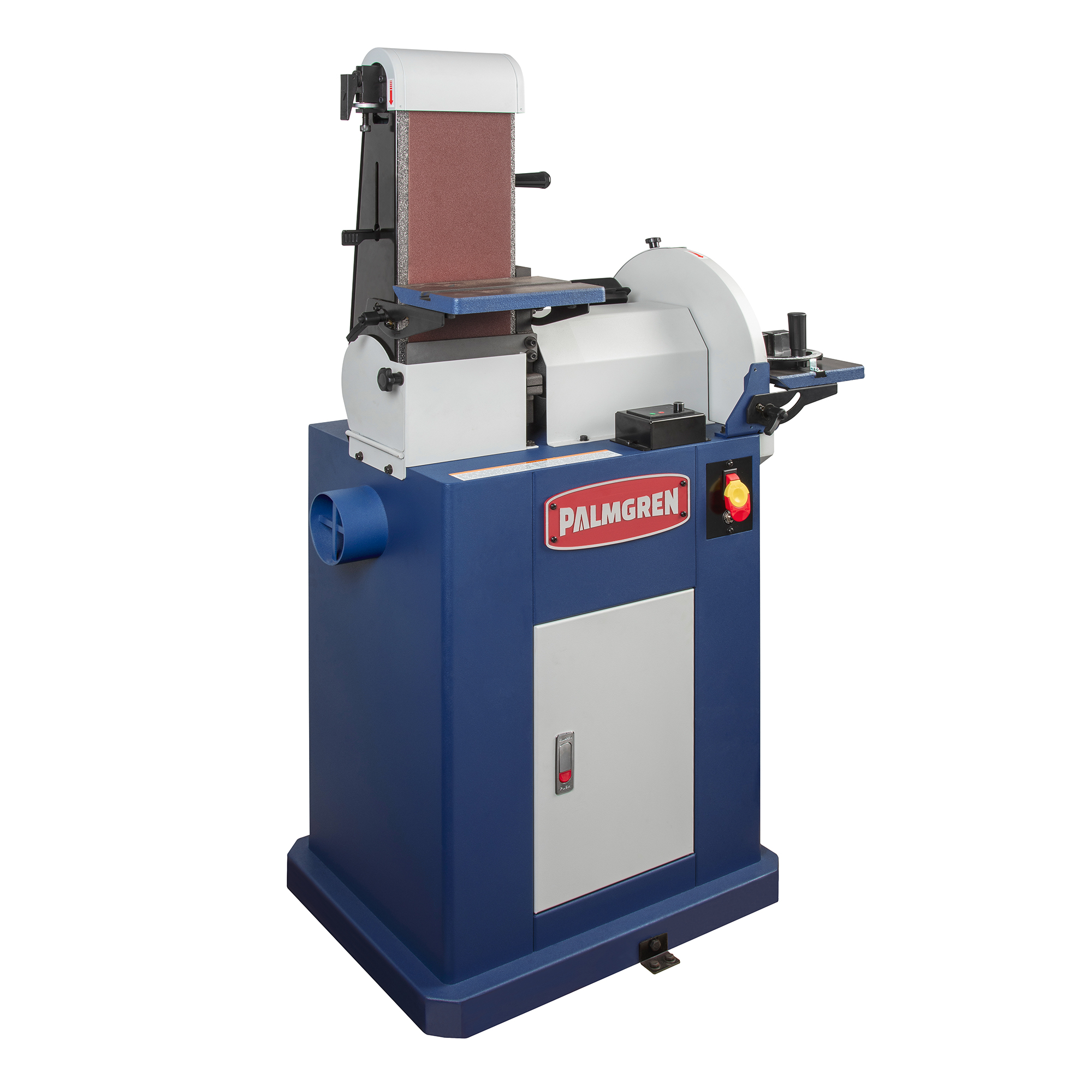Product ID 9681108 Product Name 6"x48" Belt 14" Disc Floor Finishing Machine UPC 726896811086 Product Copy Simplify all your finishing needs! Palmgren 6" x 48" Belt, 14" Disc Finishing Machine offers a combination of exceptional versatility and high efficiency. Designed around actual end user input; this differentiates our machine with meaningful features built around what the machine must do when it is in use to maximize user performance and safety. This 2 in 1 machine can handle a multitude of jobs: contour part finishing, flat stock finishing, polishing, grinding and deburring, handling virtually any finishing operation. Product Features Powerful direct drive power train. Adjustable guarding for both the belt and disc sections. Single dust collection port for both sections for easy connection and cleaning. Cast iron tilting worktables with a slot for miter gauge and easy to read trunnions. Deluxe miter gauge ideal for plain and compound angles. Heavy duty, fully enclosed steel stand with storage. Safety lock out on/off switch. BELT SECTION: Belt arm adjusts vertically, horizontally and any position in-between, Upper idler drum supported on both sides with bearings, Steel platen with replaceable graphite pad, Advanced easy belt tracking, Quick, easy belt changes, Belt section mounted directly to the motor shaft. DISC SECTION: Fully machined and balanced steel disc, Disc mounted directly to the motor shaft Category Machine-Sanders Country of Origin Taiwan Stock UOM Each Product Height (inches) 57 Product Length (inches) 31 Product Width (inches) 22 Product Weight (lbs) 250 Shipping Height 56 Shipping Length 31.5 Shipping Width 22 Shipping Weight 230 Abrasive Finishing Type Belt and Disc Grinders AMPS 12.5 Belt SFPM 1280-2250 Belt Size 6" x 48" Belt Table Size 8-5/8" x 6" Belt Table Tilit Angle (Deg.) 45 Degrees to 90 Degress Belt Width 6" Motor HP 2 Phase Single Platen Size (In.) 6-1/4 x 16-3/4 Table Material Aluminum Voltage 115 Warranty 3 years