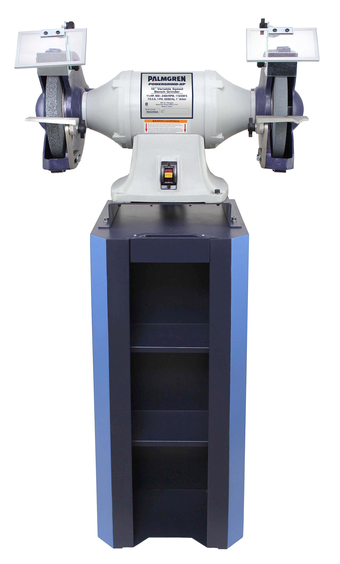 Product ID 9682114 Product Name 10" VS Bench Grinder & Dust Collector Stand Combo UPC 726896821146 Product Copy Powergrind-XPTM Finishing Combos with Dust Collection has industrial grade capacitor motors and dynamically balanced rotors and sealed bearings to minimize vibration and ensure smooth running. With extended wheel-to-wheel clearance which allows longer items to be ground and finished easily and large adjustable tool rests easily adjusted with hurricane bolts for safe, accurate grinding this should be your choice for a finishing combo. Unit comes with three tool rests – (2) standard flat top and (1) V-grooved top for sharpening drill bits with 118° drill point angle and 6” and 8” bench grinders include a wheel dresser with exclusive single port dust collection system with coated steel hose Product Features Industrial grade capacitor motors. Dynamically balanced rotors and sealed bearings to minimize vibration and ensure smooth running. Extended wheel-to-wheel clearance which allows longer items to be ground and finished easily. Large adjustable tool rests easily adjusted with hurricane bolts for safe, accurate grinding. Comes with three tool rests – (2) standard flat top and (1) V-grooved top for sharpening drill bits with 118° drill point angle and 6” and 8” bench grinders include a wheel dresser. Exclusive single port dust collection system with coated steel hose Category Machine-Abbrasive Finishing Sub Category Bench Grinders Country of Origin Taiwan Stock UOM Each Product Height (inches) 48 Product Length (inches) 24 Product Width (inches) 21-1/2 Product Weight (lbs) 234 Shipping Height 22 Shipping Length 48" Skid Shipping Width 40" Skid Shipping Weight 271 includes skid Abrasive Finishing Type Bench Grinders and Buffers Bench Grinder and Buffer Drive Single Speed Phase Single Spindle Bore 1" Spindle Taper MT 4 Swing Over Bed 10" Tailstock Taper MT 2 Tailstock Travel 2-1/2" Thread Range (In.) 8 to 56 Thread Range (mm) 0.2 to 4.0 Voltage 115 Warranty 3 years