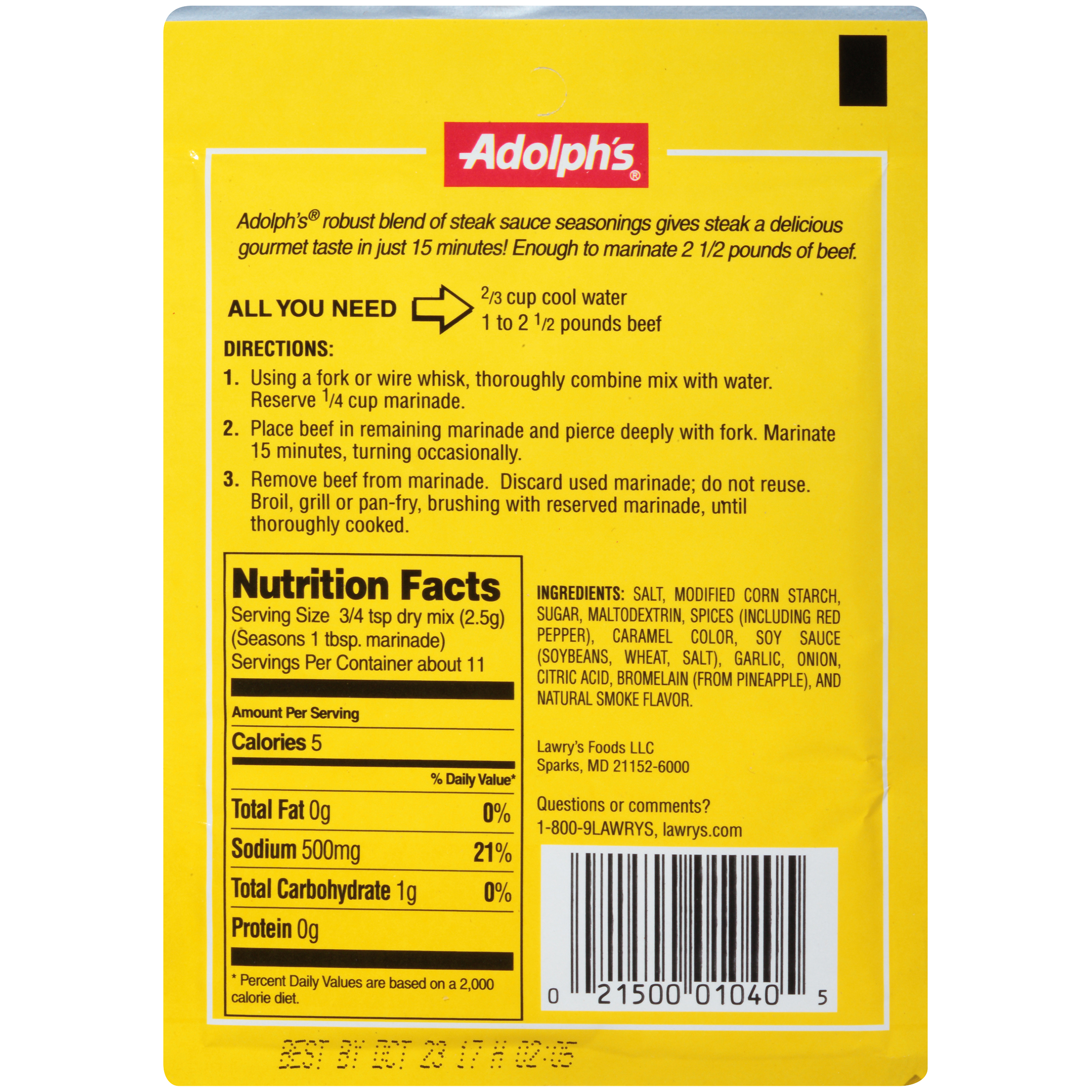 Main ImageAdolph's®Marinade In Minutes Steak Meat MarinadeDiscontinued Date2021-01-01Uniform Product Code021500010405