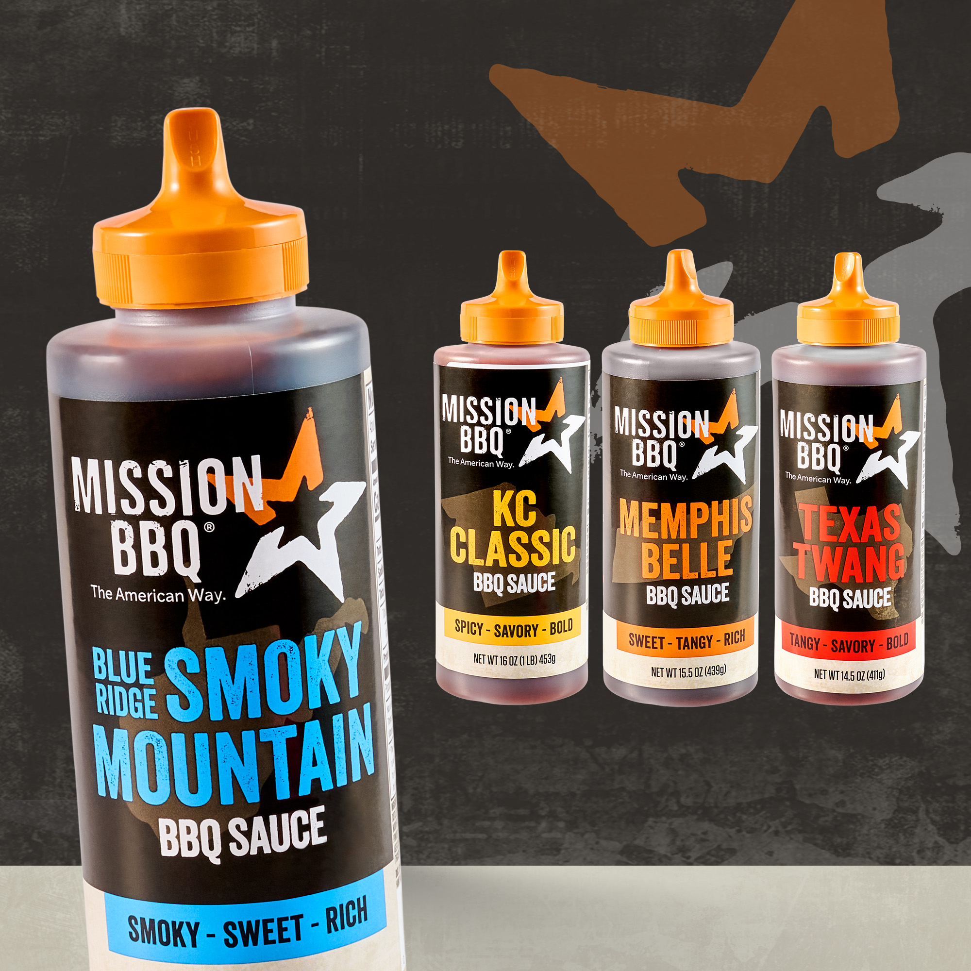 - Take a trip down south and slow down with the bold, smoky flavors of MISSION BBQ® Blue Ridge Smoky Mountain BBQ Sauce. Thick molasses, tangy vinegar, and sweet brown sugar deliver a classic southern richness to pulled pork, chicken, and seafood.