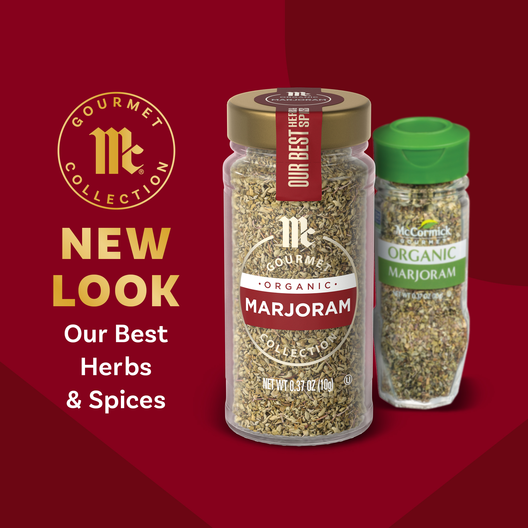 - Discover our finest flavors with the McCormick Gourmet™ Collection of our best herbs and spices — including McCormick Gourmet Collection Organic Marjoram. Marjoram brings exceptional taste to your table with its warm, sweet flavor with hints of mint.
