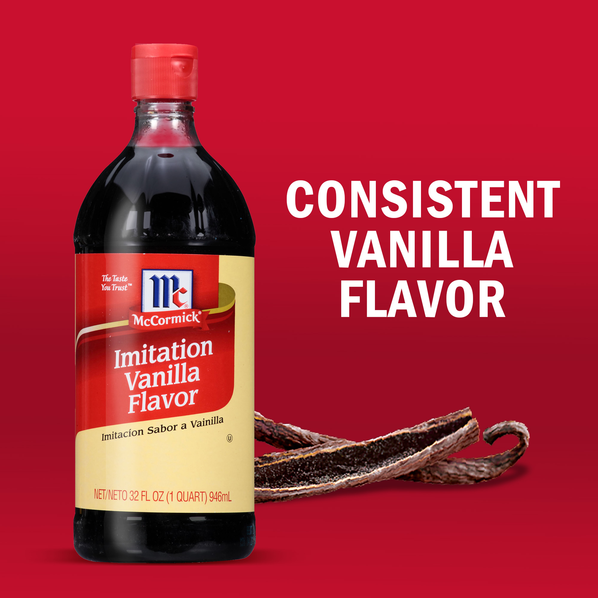 - McCormick® Imitation Vanilla Flavor delivers bold, sweet, and well-balanced vanilla taste that holds up beautifully in everything from cookies and cakes to pancakes and ice cream. It’s a flavor-packed alternative to pure vanilla extract — perfect for high-heat baking or big-batch recipes.