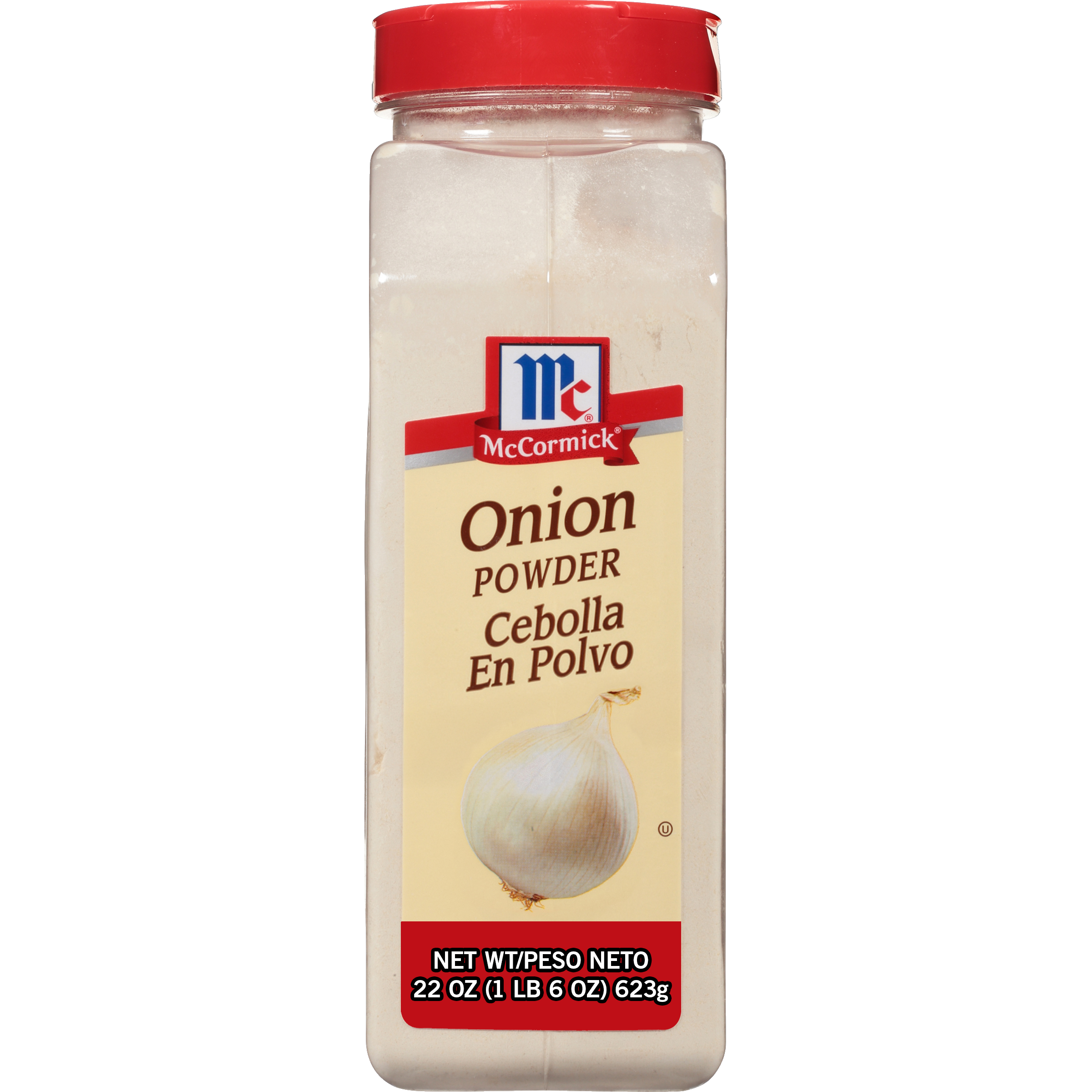 Extra Long Description McCormick Onion Powder is great for adding savory, toasty flavor to favorite dishes like chili, stews, meatloaf, and easy skillet or sheet pan dinners. Add to dry rubs for grilling or roasting meats and vegetables for an instant flavor boost. Skip the hassle (and tears!) of peeling and chopping onions – with McCormick Onion Powder, it's easy to bring savory onion flavor to almost any cuisine, including Italian, Greek, and Mexican. Dishes from eggs and avocado toast to steak, roasted chicken, and seafood are great candidates for powdered onion as well. Use 1 tbsp onion powder in place of ½ cup chopped fresh onions. Did you know? Powdered onion disperses completely and evenly throughout dishes for a more consistent flavor, making it perfect for onion soup, onion dip, sauces, salad dressings, and marinades. Feature 1 KITCHEN STAPLE: A convenient seasoning, onion powder is a must for both cooking and flavoring food tableside. Feature 2 CONSISTENT FLAVOR: Powdered onion disperses completely and evenly throughout dishes for consistent savoriness in every bite. Feature 3 CONSISTENT FLAVOR: Powdered onion disperses completely and evenly throughout dishes for consistent savoriness in every bite. Feature 4 ENDLESS USES: Powdered garlic is essential to many cuisines from around the world. Let it inspire your cooking from eggs to tacos, pasta, soup, burgers, meatloaf, and more. Feature 5 MORE ONION FLAVOR: Check out other dehydrated onion varieties made with the quality, trusted flavor of McCormick, including Onion Salt & Minced Onions. Preparation Instructions No preparation necessary. McCormick Onion Powder is ready to use and can be added to vegetables, meats, dips, and more for consistent onion flavor. Storage Instructions Store McCormick Onion Powder in a cool, dry place to protect against flavor loss and moisture. Avoid exposure to heat, humidity, direct sunlight, and fluorescent light to maintain flavor and color. Always use dry measuring spoons and cups to ensure optimal product integrity. Shelf life: 900 days. Benefits - Kosher