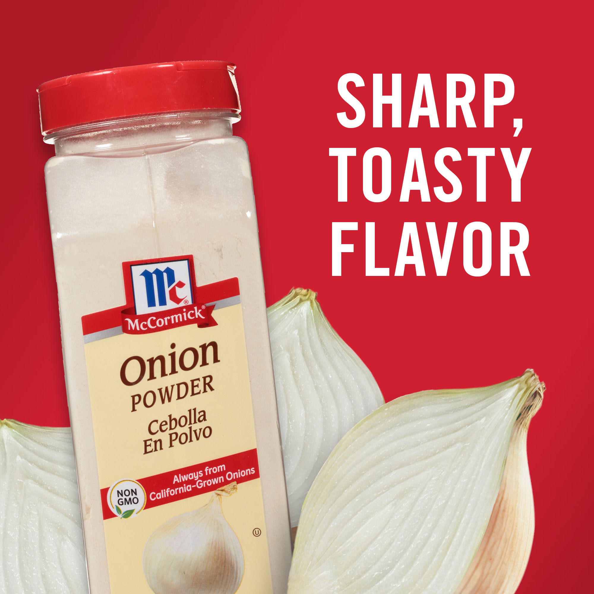 - McCormick Onion Powder is great for adding savory, toasty flavor to favorite dishes like chili, stews, meatloaf, and easy skillet or sheet pan dinners. Add to dry rubs for grilling or roasting meats and vegetables for an instant flavor boost.