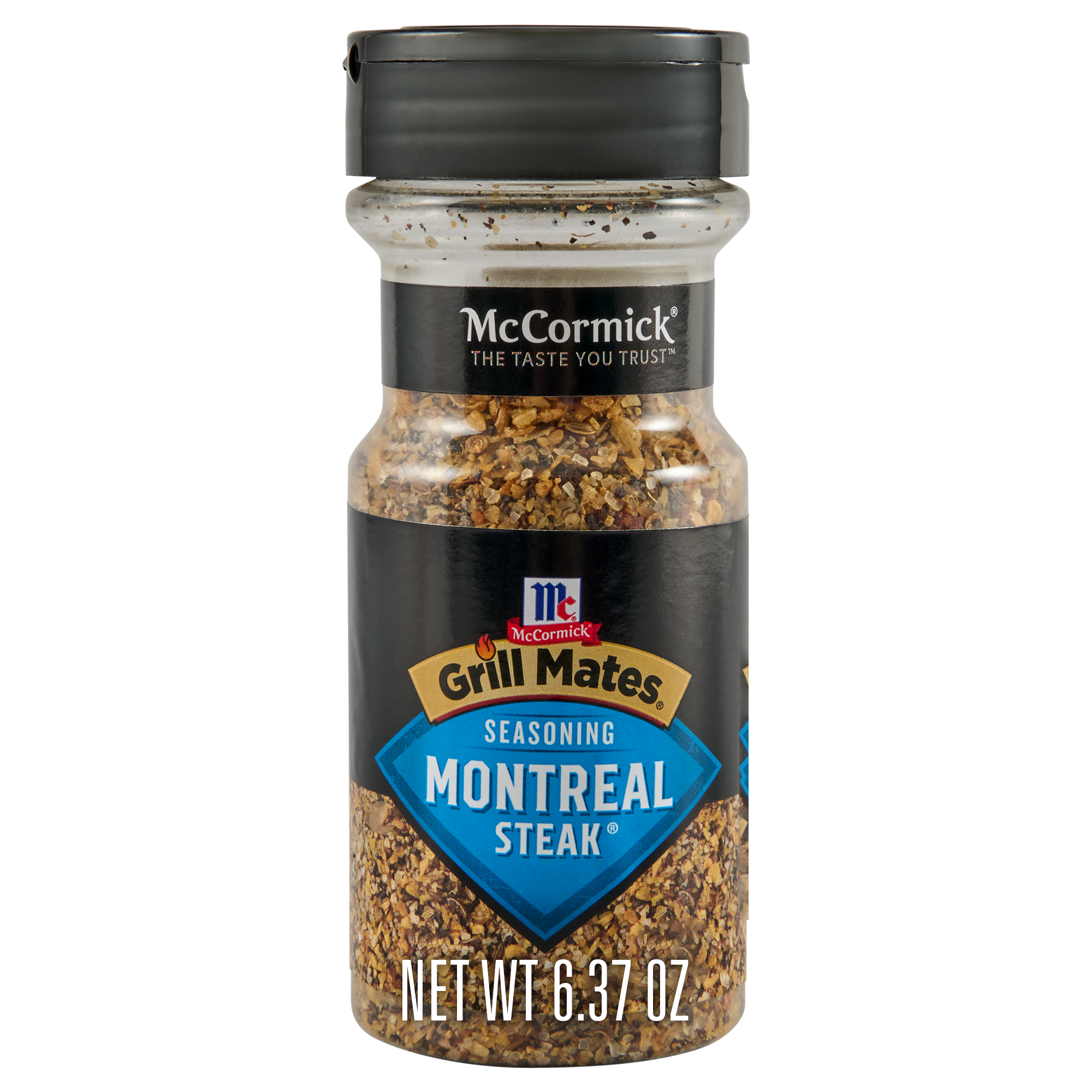 - Knock dinner out of the park with a shake of McCormick Grill Mates Montreal Steak Seasoning. Made with McCormick Spices, including garlic, paprika and coarsely ground pepper, Montreal Steak Seasoning adds bold flavor to steaks, burgers and pork that'll have your guests asking for more, Grill Master.