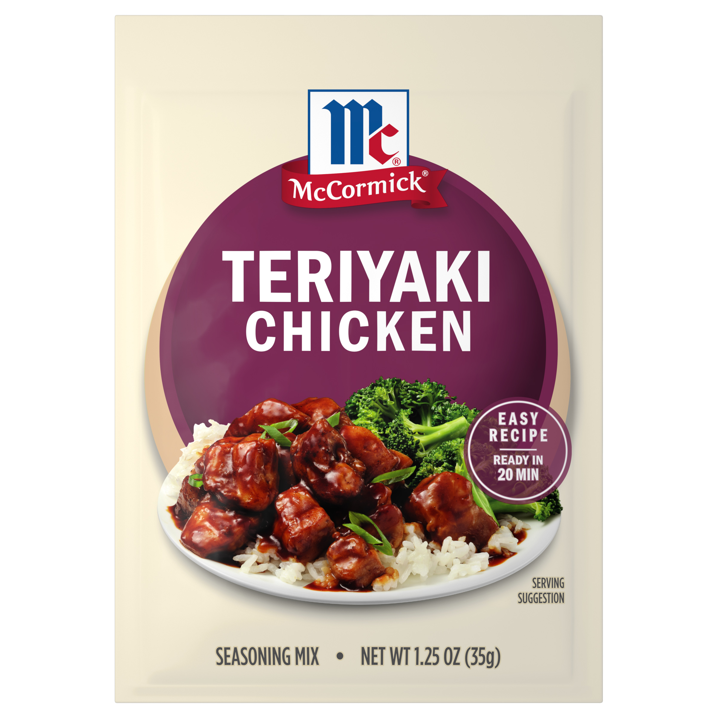 - Create restaurant-style Teriyaki Chicken at home with the delicious convenience of McCormick® Teriyaki Chicken Seasoning Mix. Just add chicken, green onions, and pantry ingredients like soy sauce, for a savory-sweet chicken dish in just 20 minutes.
