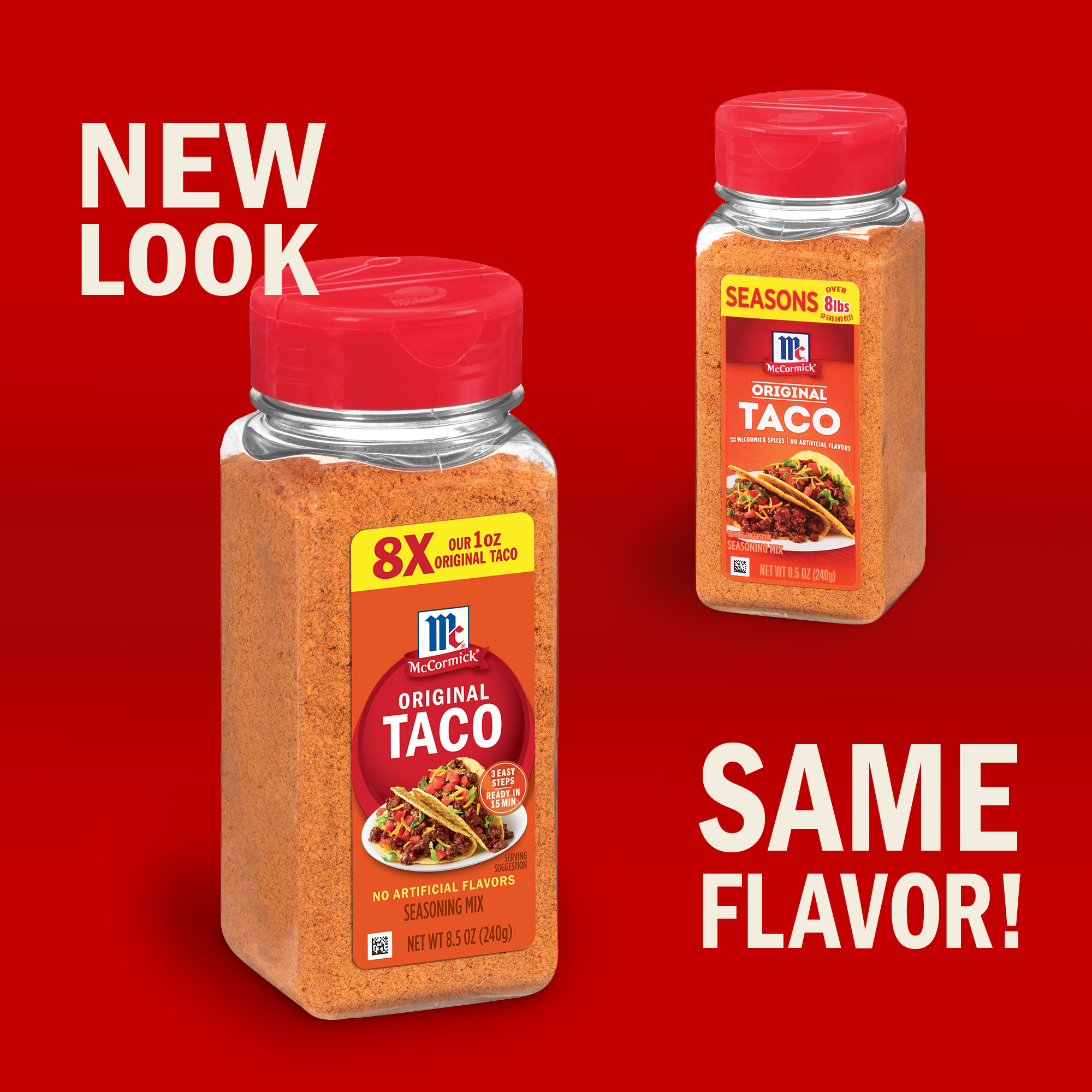 Extra Long Description With McCormick® Original Taco Seasoning Mix, the whole family will wish taco night could be every night! Our signature blend features a simple and clean ingredient statement, adding vibrant flavor to everything from tacos to nachos, taco casserole, chicken wings, and more. Made with McCormick spices and seasonings, including paprika, chili pepper, cumin, onion, and garlic, taco seasoning is the perfect addition to your pantry. Our larger 8.5 oz bottle contains enough seasoning for 8 pounds of ground beef or turkey for delicious tacos that are ready to serve in just 15 minutes! Chicken tacos, beef tacos, shrimp tacos, vegetarian tacos — that’s just the beginning. Boost the flavor of fries, dips, beans, corn, or even boxed mac and cheese with taco seasoning, too. Made with no artificial flavors and our signature spice blend, it’s an easy way to upgrade any protein, any night of the week. Feature 1 ONE-SKILLET WONDER: Turn any protein into a flavor-packed, one-skillet dinner in just 15 minutes. Feature 2 MILD & FAMILY-FRIENDLY: Enjoy classic flavor without too much spice — made with paprika, chili pepper, cumin, onion, and garlic. Feature 3 VERSATILE SEASONING: Original Taco Seasoning Mix is perfect for everything from ground beef and turkey to shrimp, chicken, and beans. Feature 4 FEEL-GOOD FLAVOR: There are no artificial flavors and no added MSG, except those naturally occurring glutamates. Feature 5 PANTRY STAPLE: Keep it on hand in your pantry as a smart seasoning shortcut. Feature 6 EASY MEAL UPGRADE: Adds bold flavor to macaroni and cheese, dips, veggies, fries, and more. Preparation Instructions Prep time for tacos with McCormick Original Taco Seasoning Mix: 5 minutes. Cook time: 10 minutes. Makes 6 (2 taco) servings. You will need: 3 tbsp McCormick Seasoning Mix, 1 lb lean ground beef or turkey, 3/4 cup water, 12 taco shells or flour tortillas (6-inch). Assorted toppings: Shredded lettuce, chopped tomatoes, shredded cheese, salsa, or sour cream. 1. Brown meat in a large skillet on medium-high heat. Drain fat. 2. Stir in Seasoning Mix and water. 3. Bring to boil. Reduce heat and simmer 5 minutes, stirring occasionally. Spoon into warm taco shells. Serve with desired toppings. Storage Instructions To maintain the freshest flavor and color, McCormick Original Taco Seasoning Mix should be stored in a cool, dry place away from exposure to heat, humidity, moisture, direct sunlight, and fluorescent light. Unopened pouches are shelf stable for up to 720 days. Benefits - Vegan