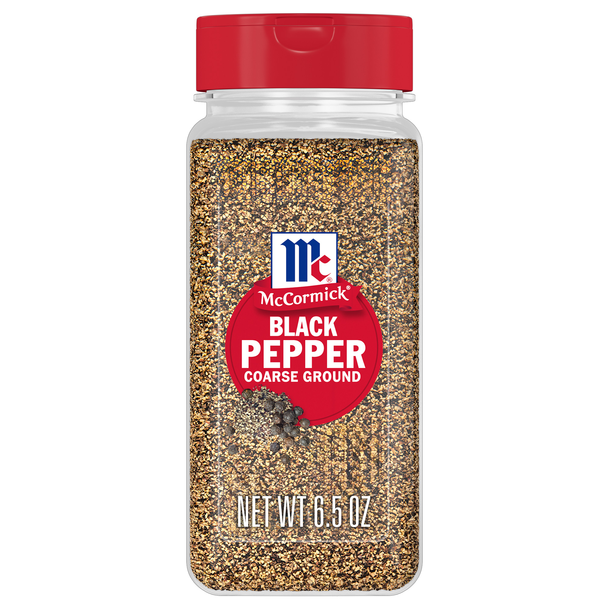 - McCormick Coarse Ground Black Pepper is an essential spice that is beloved around the world. A shake, spoon, or pour of this essential pantry staple delivers a sharp aroma and kick of earthy heat to an endless array of meals and recipes.